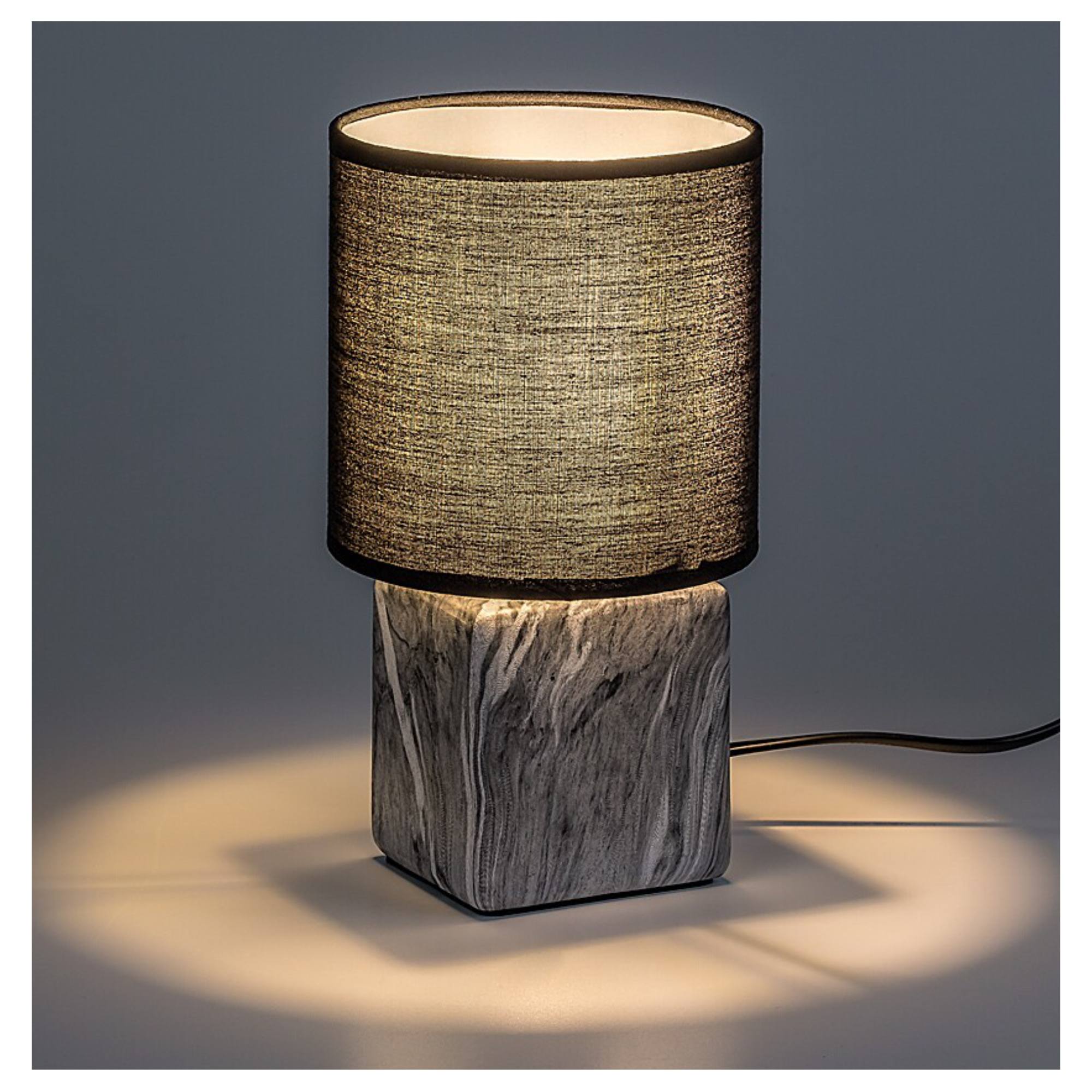 Zaujme na první pohled keramickým tělem ve tvaru krychle s mramorovým dekorem. Ten dodává lampě nadčasový a sofistikovaný vzhled. Klasické textilní stínidlo rovnoměrně rozptyluje světlo a vytváří příjemnou atmosféru v místnosti. Skvěle poslouží v obývacím pokoji či ložnici. Je doplněna vypínačem na přívodním kabelu o délce 120 cm pro snadné a pohodlné ovládání.