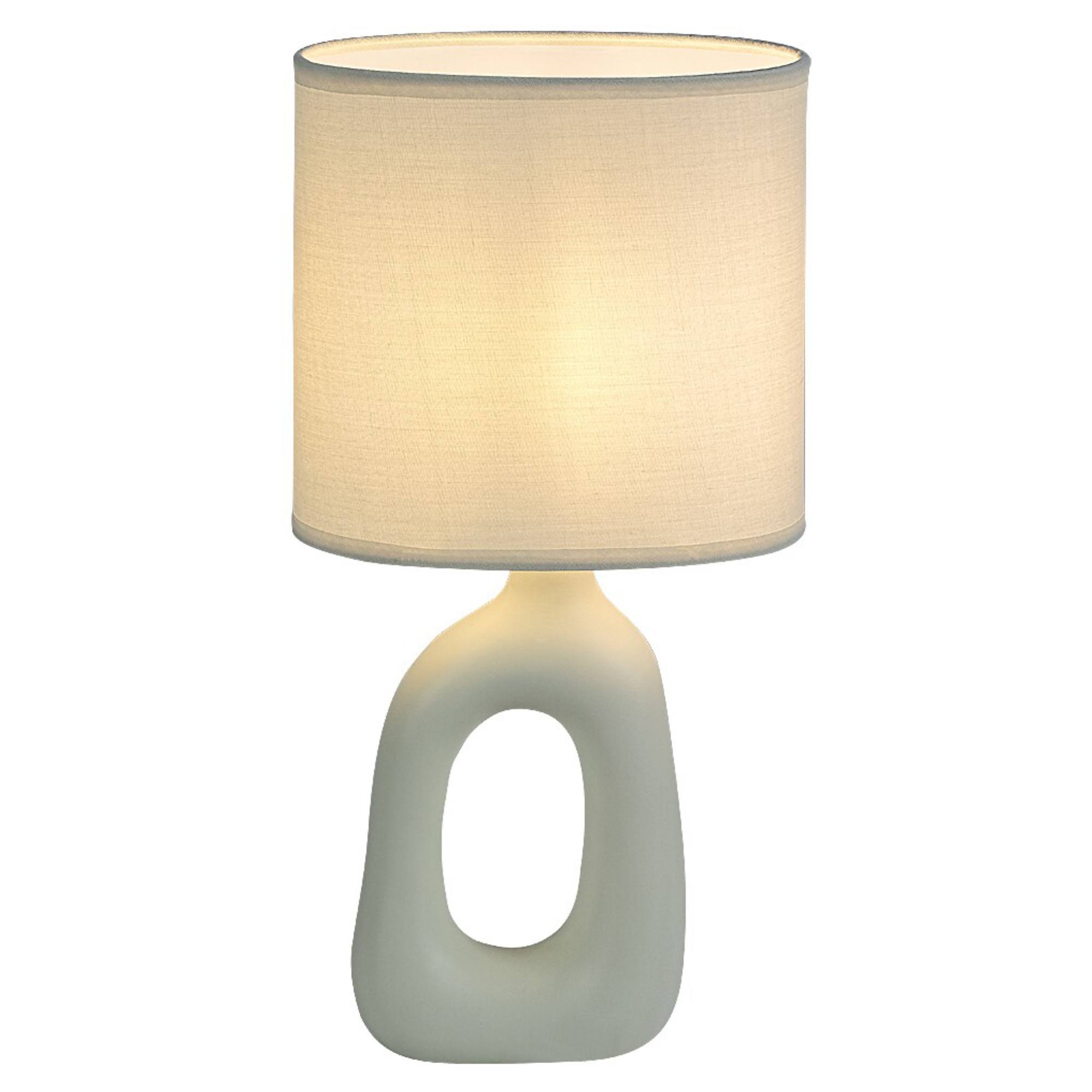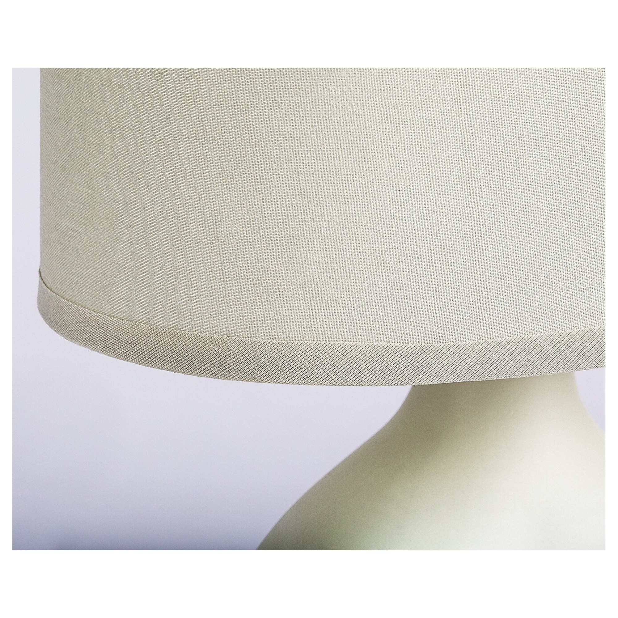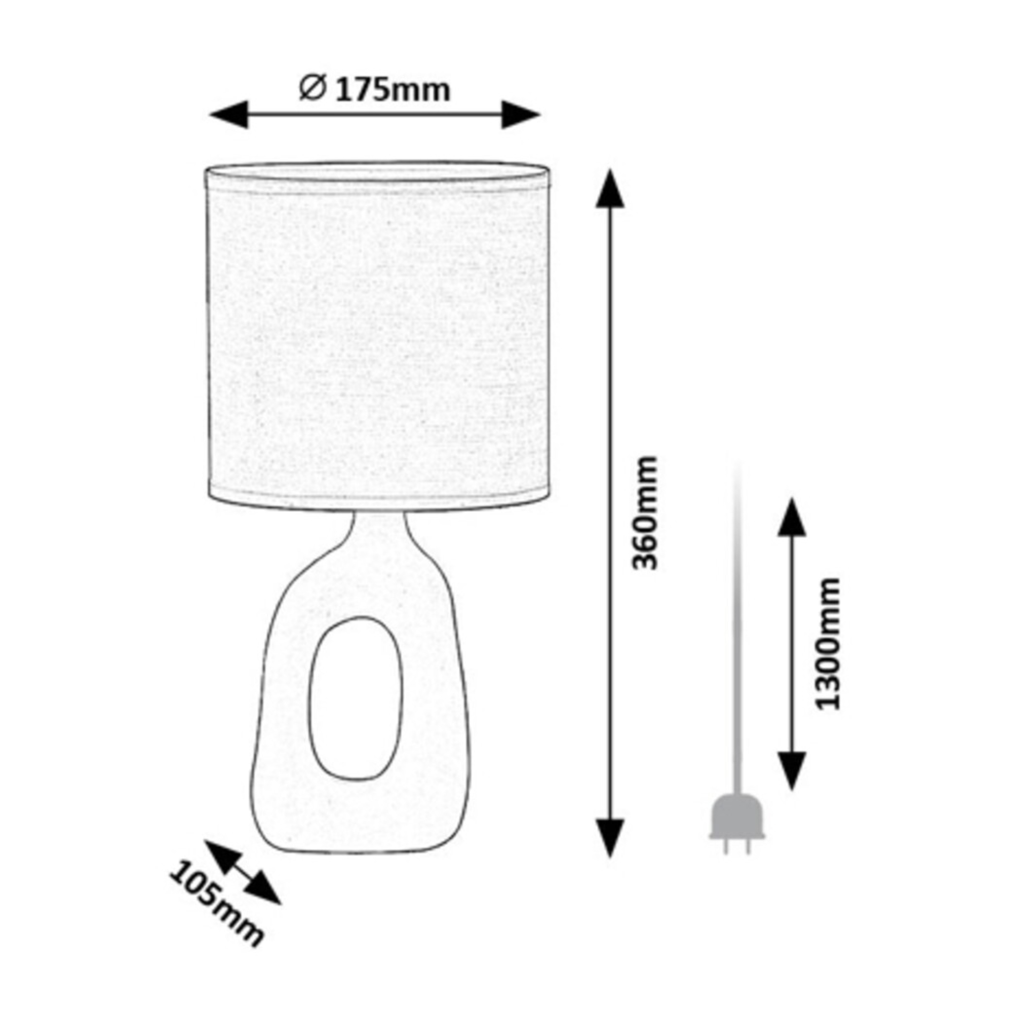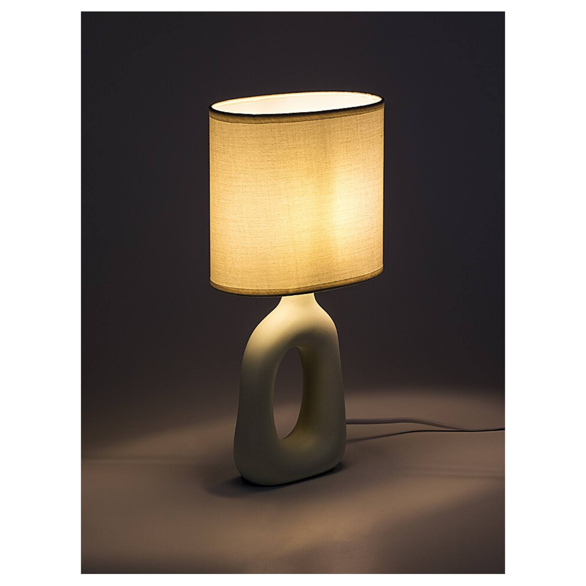 Tělo lampy je vyrobeno z keramiky v netradičním tvaru, který z ní dělá originální doplněk. Oválné textilní stínidlo rovnoměrně rozptyluje světlo a vytváří příjemnou atmosféru v místnosti. Skvěle poslouží v obývacím pokoji či ložnici. Je doplněna vypínačem na přívodním kabelu o délce 130 cm pro snadné a pohodlné ovládání.
