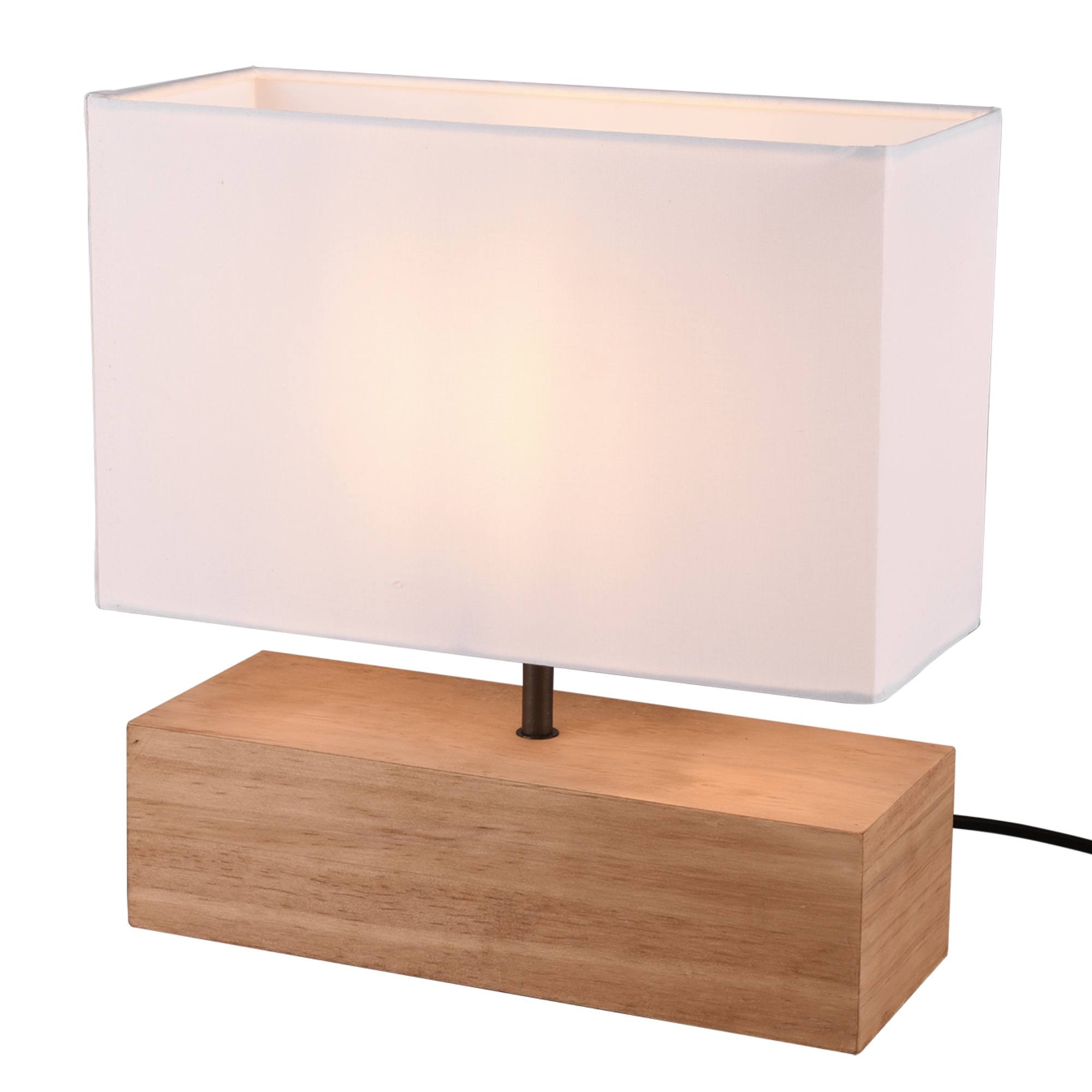 Kombinace přírodní dřevěné základny a textilního stínidla dodává lampě moderní, díky čemuž se snadno začlení do jakéhokoliv prostoru. Její kompaktní rozměry umožňují snadnou manipulaci a umístění na noční stolek, psací stůl nebo jakoukoliv jinou odkládací plochu ve vaší domácnosti. Ovládání lampy je jednoduché a pohodlné díky spínači umístěnému na přívodním kabelu.