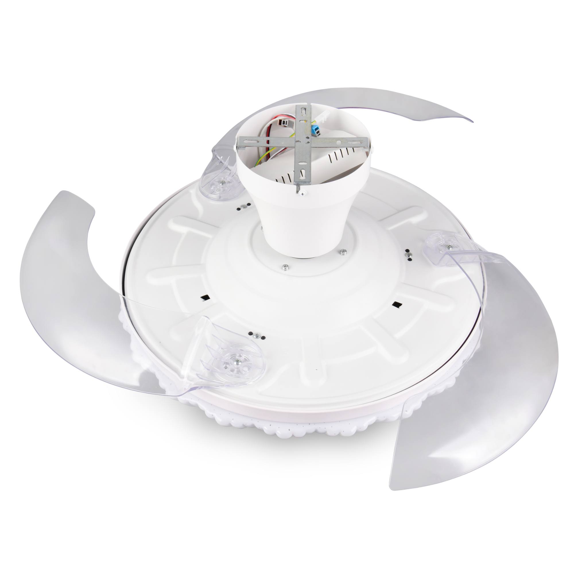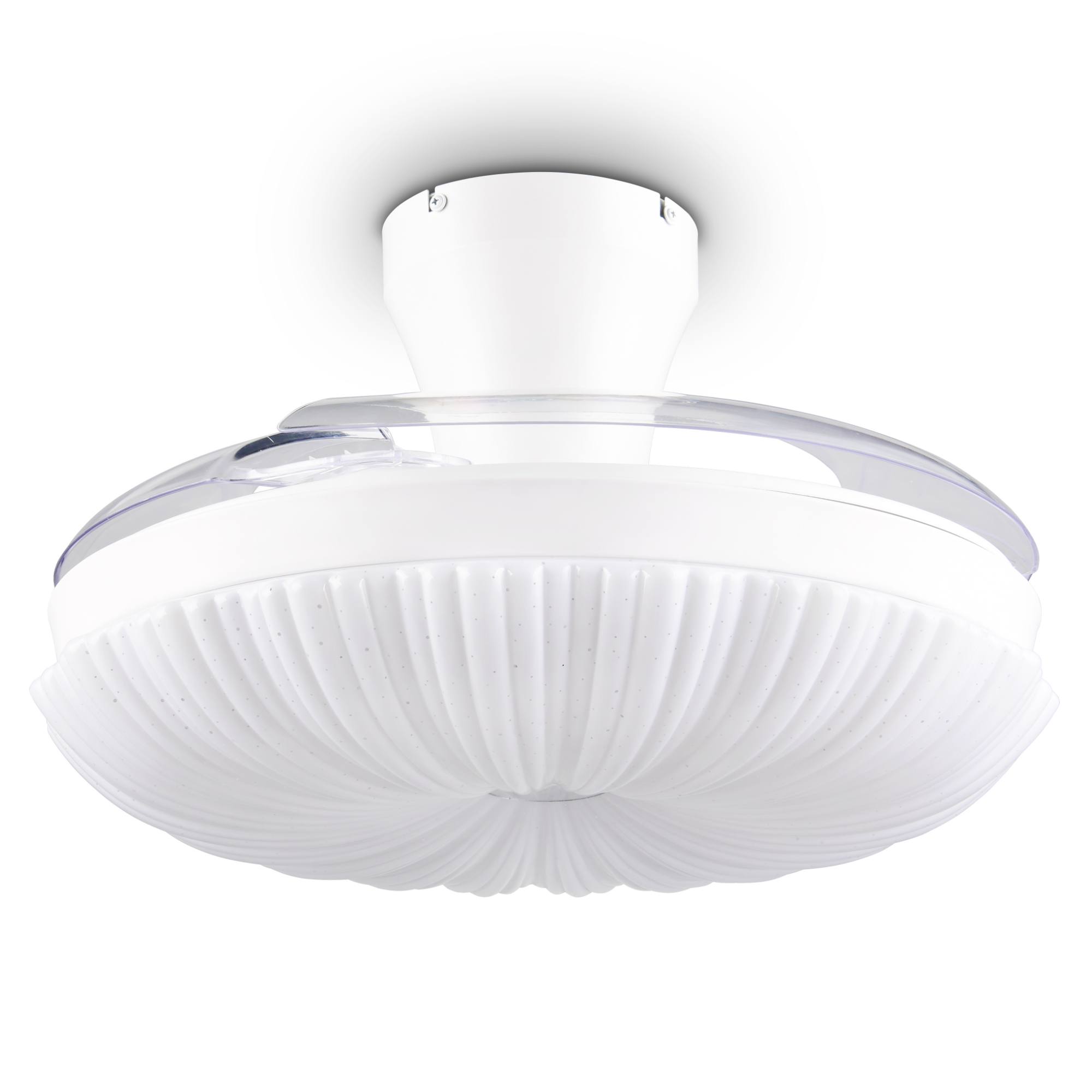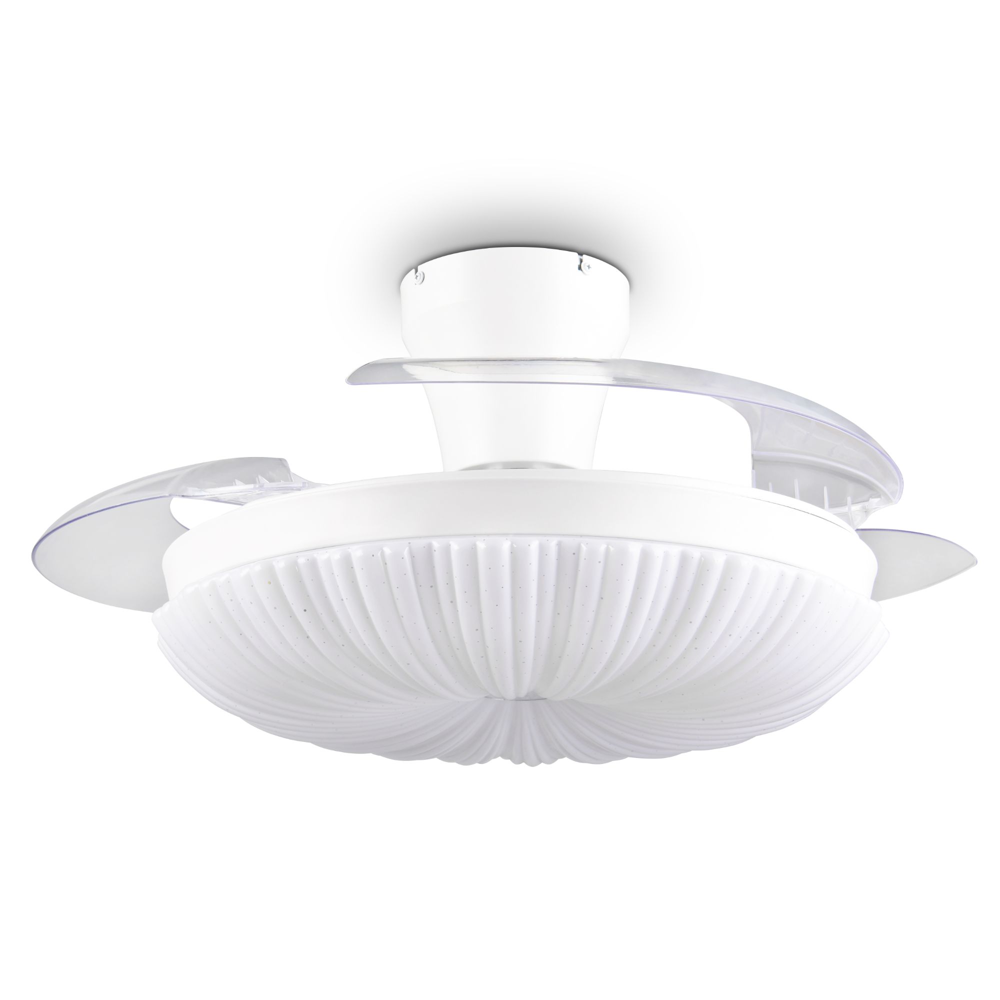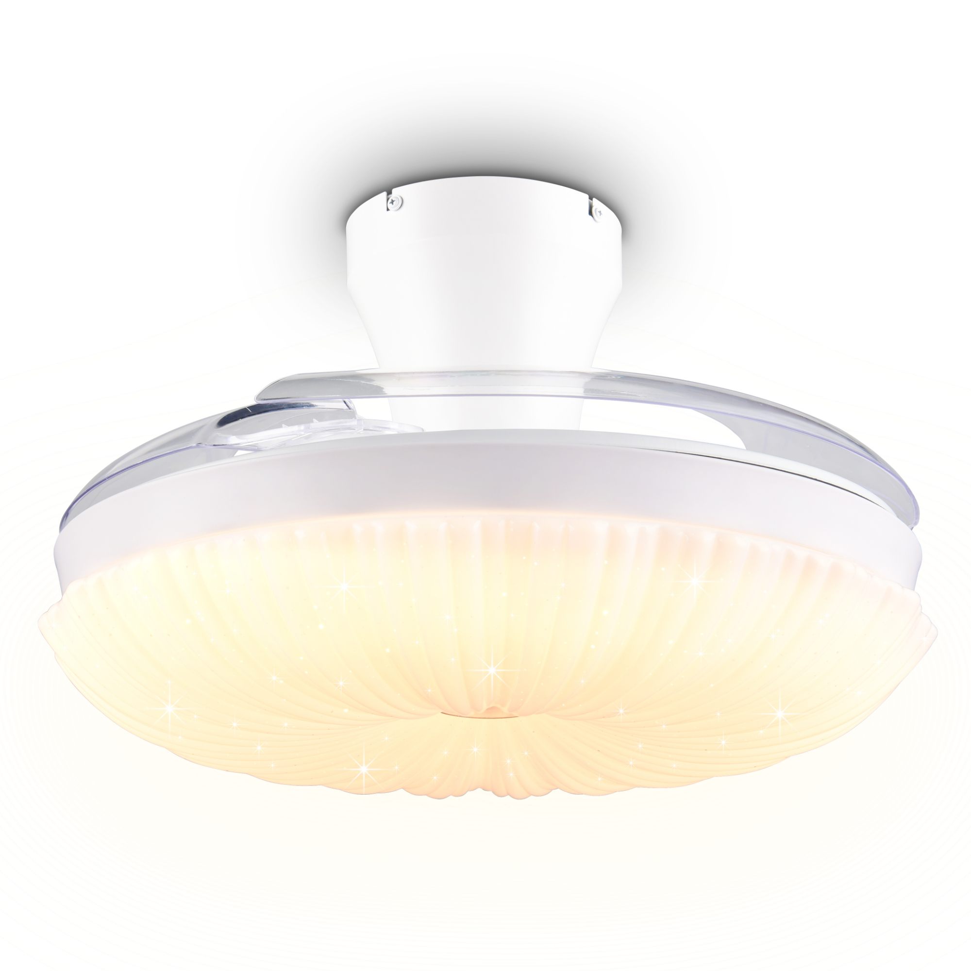 Zaujme svým promyšleným designem, díky kterému lze větrákové lopatky pomocí jejich otočnému mechanismu ukrýt za stínidlo, což oceníte zejména mimo letní sezónu. Dekorativní stínidlo je doplněno Starlight efektem, který vytvoří doslova hvězdnou atmosféru pomocí malých průhledných bodů.