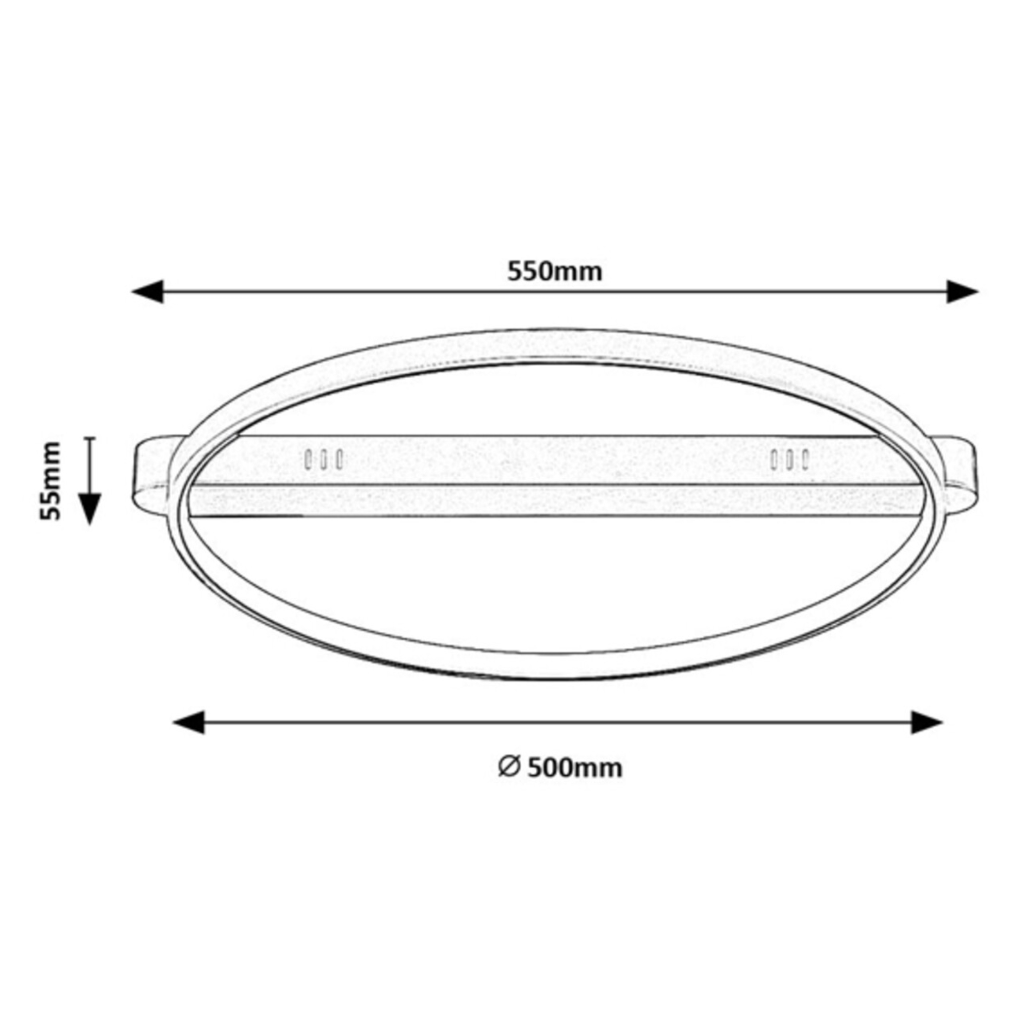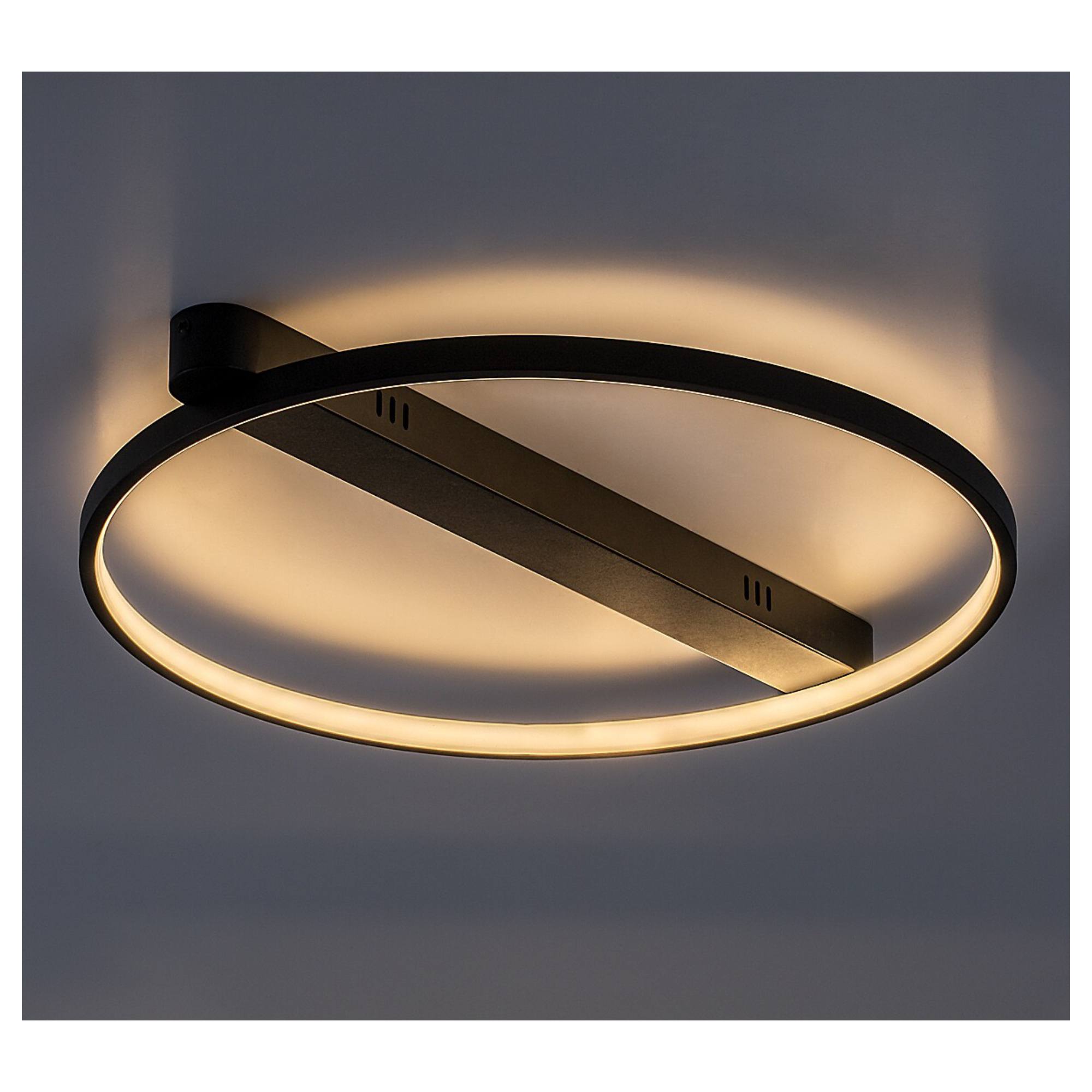 Zaujme svou konstrukcí v podobě kruhu o průměru 50 cm, který ze svítidla vytváří jedinečný designový prvek každé místnosti. Kruh je připevněn k jednoduché kovové základně o šířce 55 cm. Díky svému minimalistickému provedení zapadne do řady interiérů.