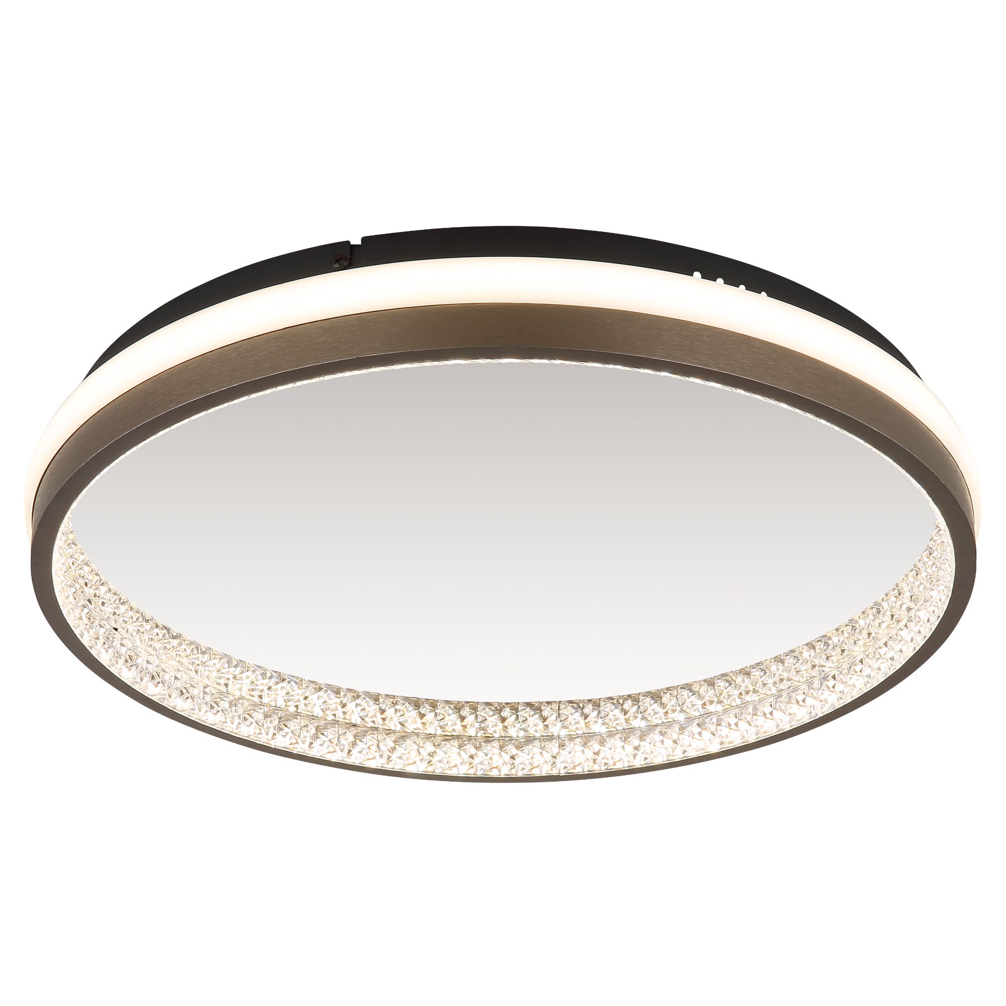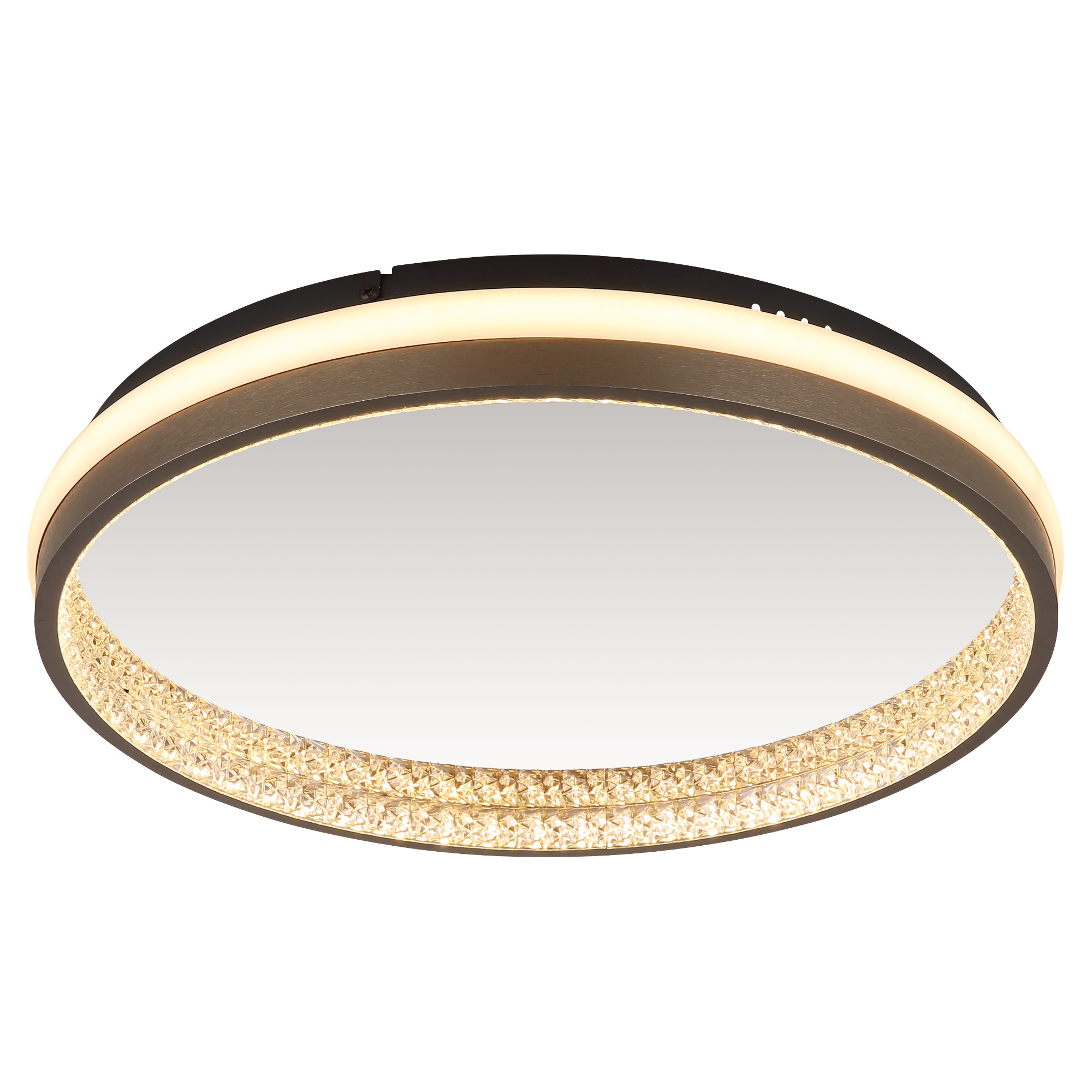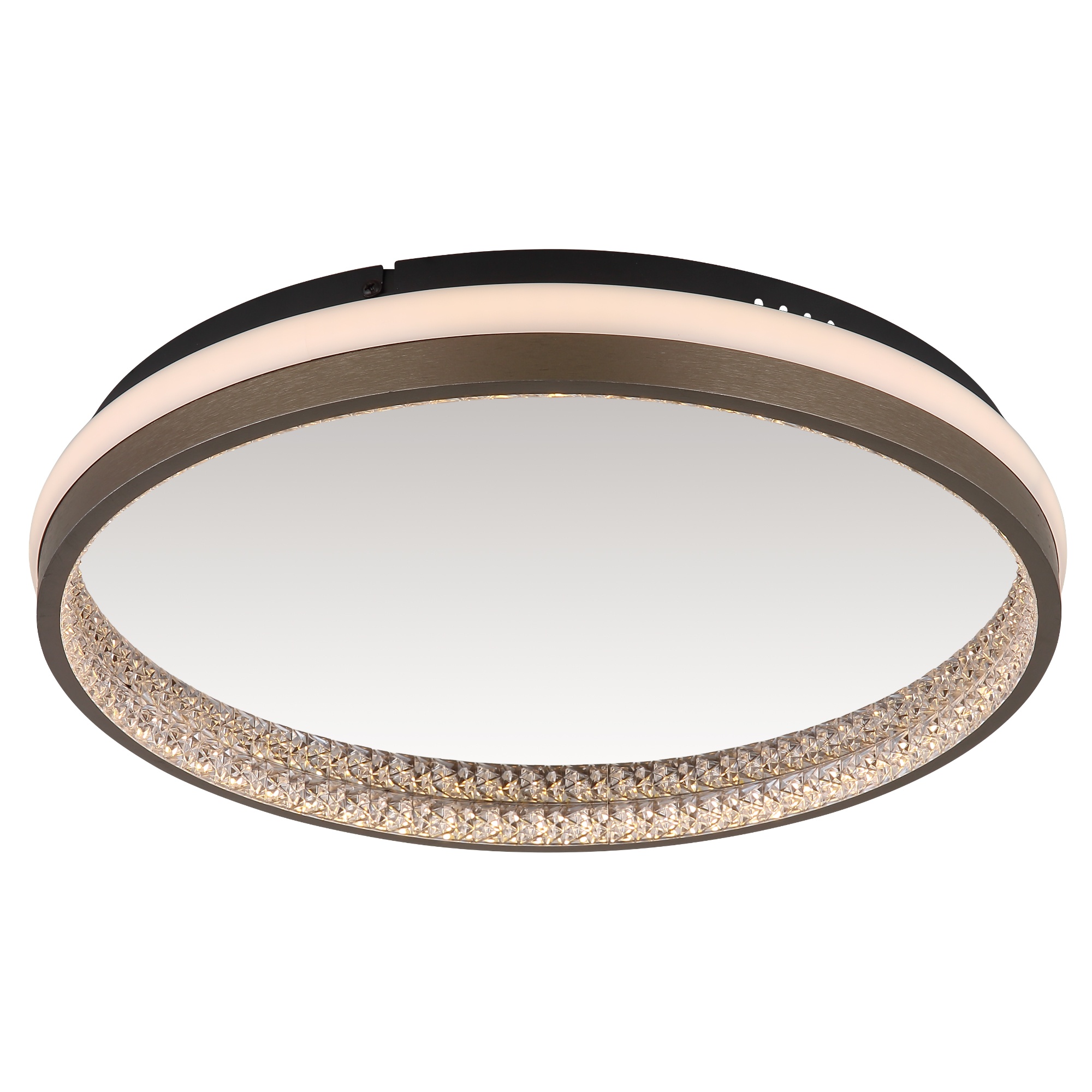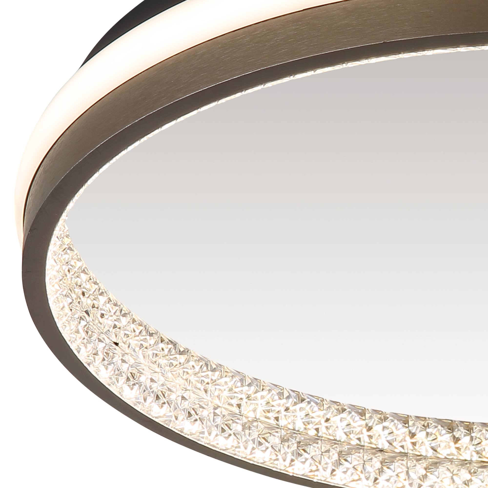 Má kovovou konstrukci v černé barvě, na které je umístěno stínidlo z hliníku v tmavě šedé barvě a bílého plastu. Unikátním doplňkem jsou plastové krystaly. Ty vytvářejí zajímavý světelný efekt pomocí integrovaného LED světelného zdroje s maximálním příkonem 40W. Zdroj má světelný tok 1790 lumenů s volitelnou teplotou světla 3000, 4000 a 6000 Kelvinů. Svítidlo je také vybaveno nastavením noční světlo s nízkou intenzitou pro poklidný večer. Tyto funkce jednoduše ovládáte pomocí vašeho nástěnného vypínače.