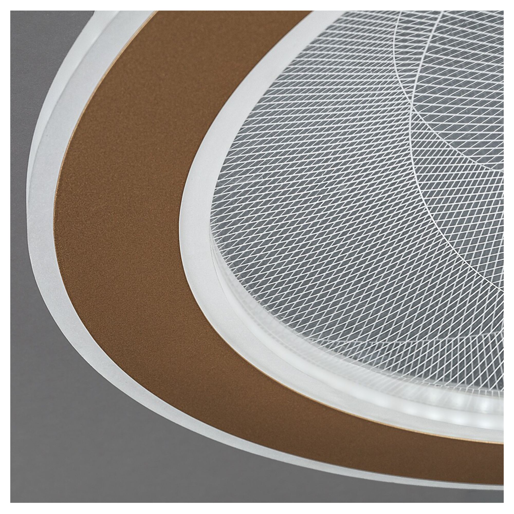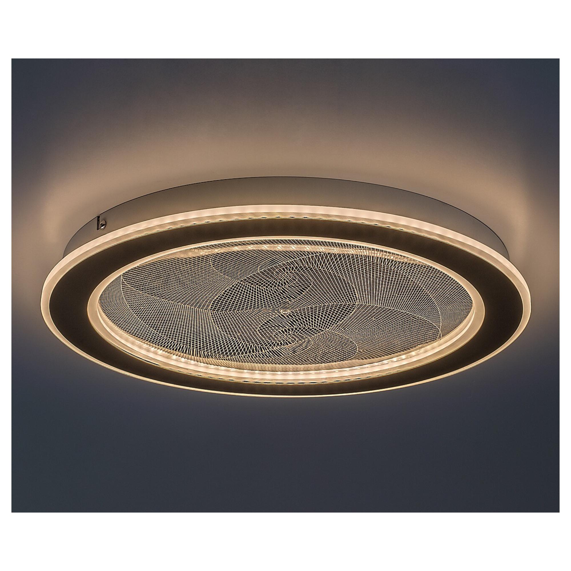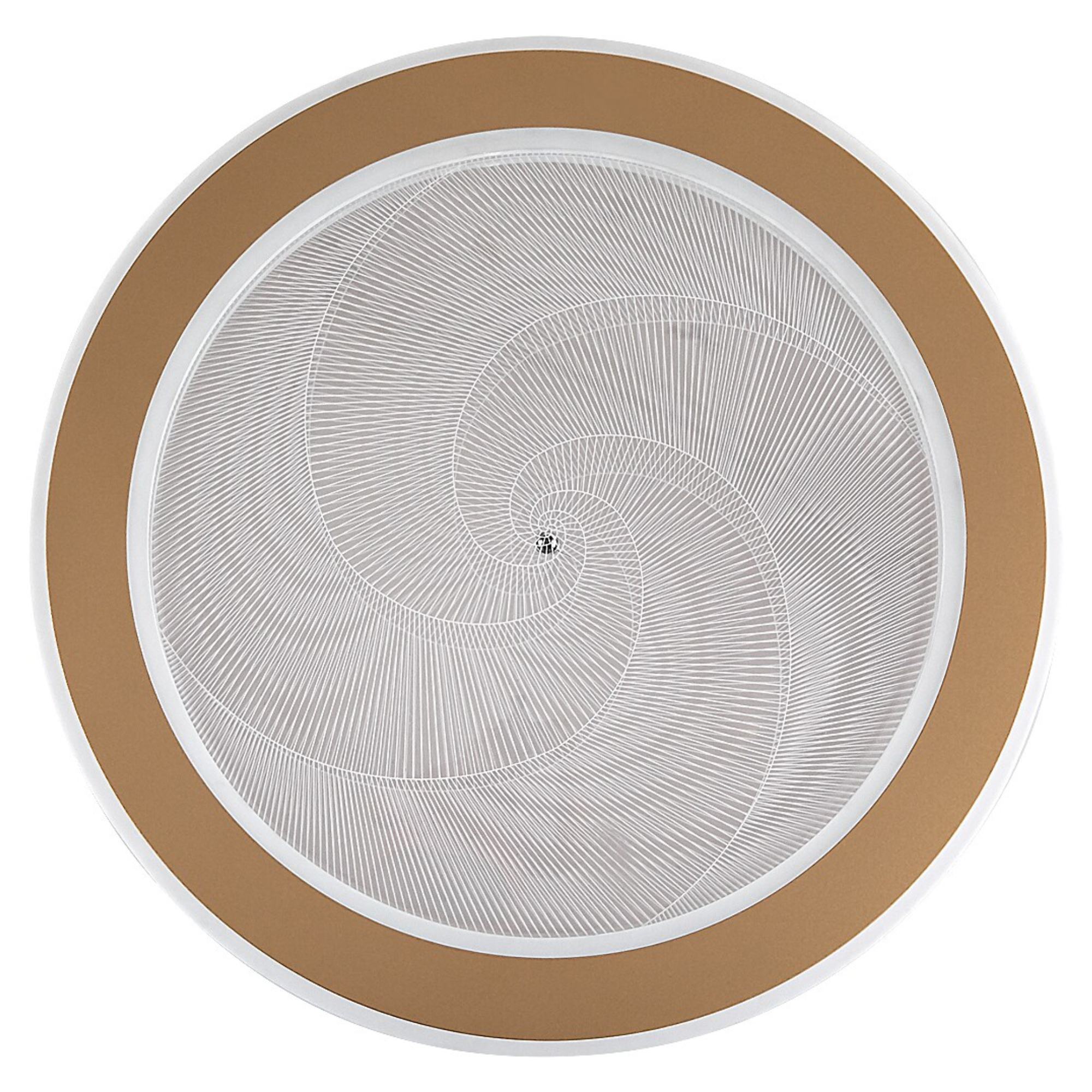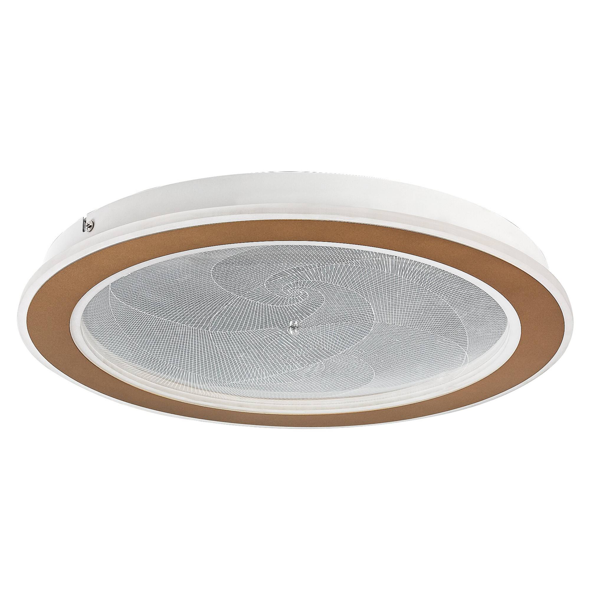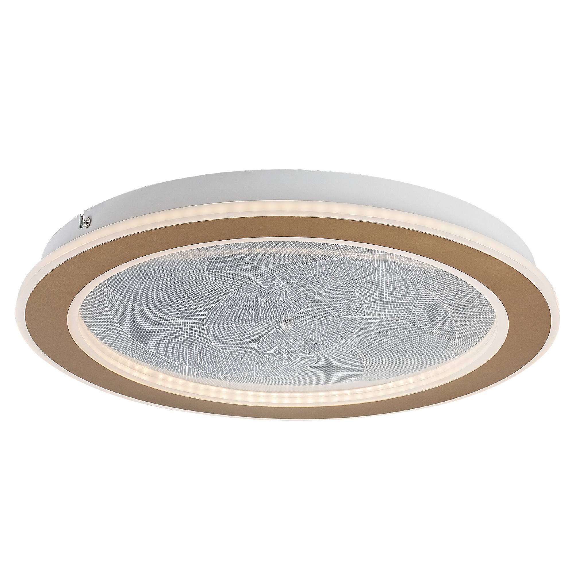 Zaujme na první pohled svým stínidlem, které je vyrobeno z průhledného akrylu v kruhovém tvaru o průměru 40 cm. Akryl je navíc doplněn jemným vzorem, jež vytváří příjemné atmosférické osvětlení. Elegantním doplňkem je zlatý kovový kruh na okraji svítidla.