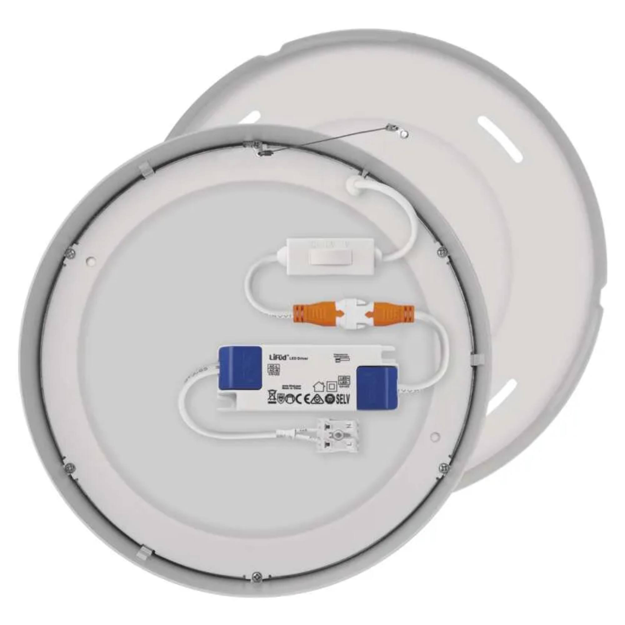 Má bílou kovovou konstrukci v klasickém kruhovém tvaru o průměru 22,5 cm. Za plastovým stínidlem se ukrývá integrovaný LED světelný zdroj s maximálním příkonem 21W. Zdroj má světelný tok 1900 lumenů s volitelnou teplotou světla 3000, 3500 a 4000 Kelvinů, kterou zvolíte při montáži svítidla. Výhodnou vlastností zdroje je dlouhá životnost, která poskytuje až 30 000 hodin osvětlení.