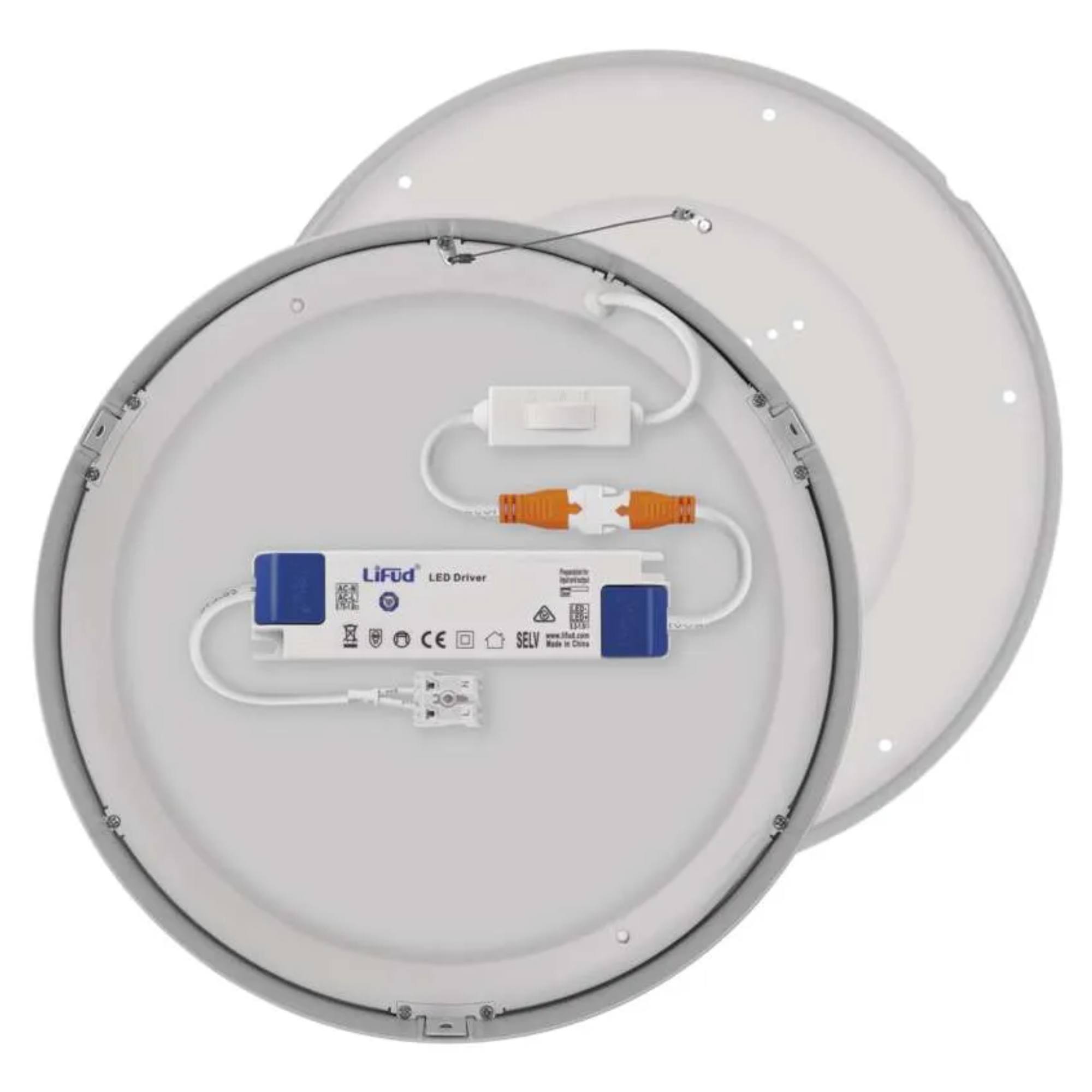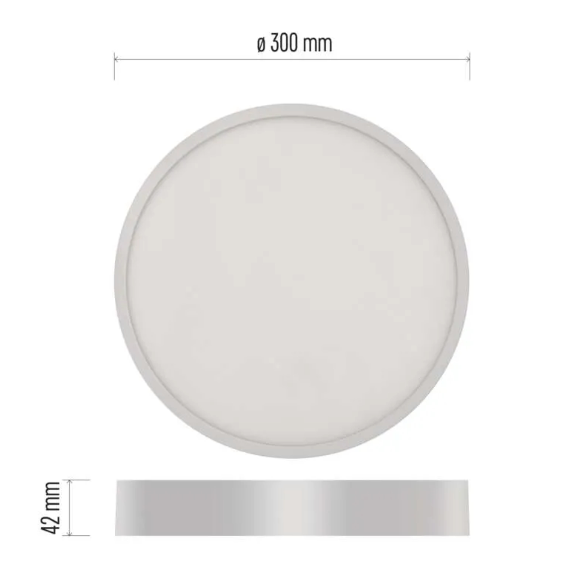 Má bílou kovovou konstrukci v klasickém kruhovém tvaru o průměru 30 cm. Za plastovým stínidlem se ukrývá integrovaný LED světelný zdroj s maximálním příkonem 28,5W. Zdroj má světelný tok 2700 lumenů s volitelnou teplotou světla 3000, 3500 a 4000 Kelvinů, kterou zvolíte při montáži svítidla. Výhodnou vlastností zdroje je dlouhá životnost, která poskytuje až 30 000 hodin osvětlení.