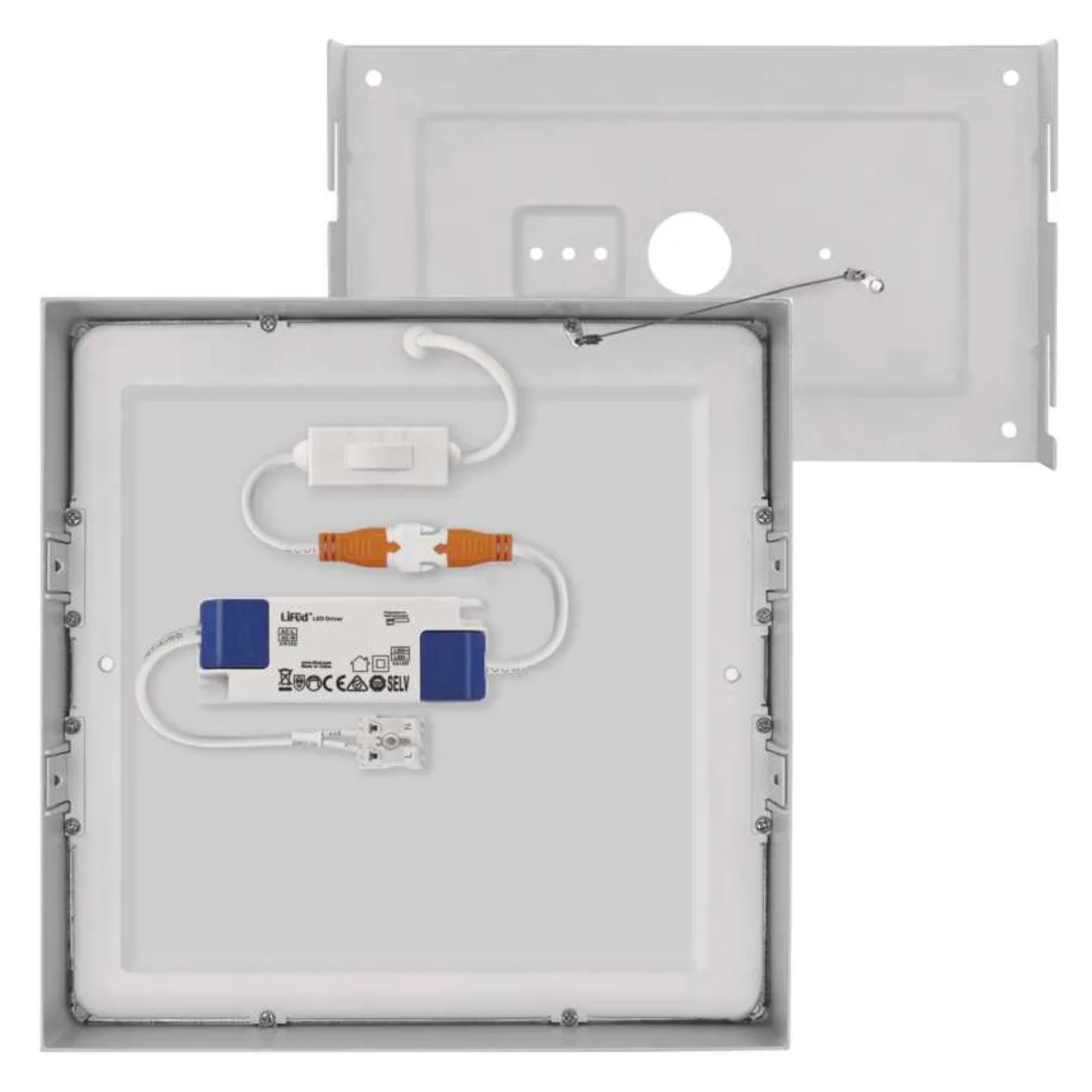 Má bílou kovovou konstrukci ve čtvercovém tvaru o šířce 22,5 cm. Za plastovým stínidlem se ukrývá integrovaný LED světelný zdroj s maximálním příkonem 21W. Zdroj má světelný tok 1900 lumenů s volitelnou teplotou světla 3000, 3500 a 4000 Kelvinů, kterou zvolíte při montáži svítidla. Výhodnou vlastností zdroje je dlouhá životnost, která poskytuje až 30 000 hodin osvětlení.