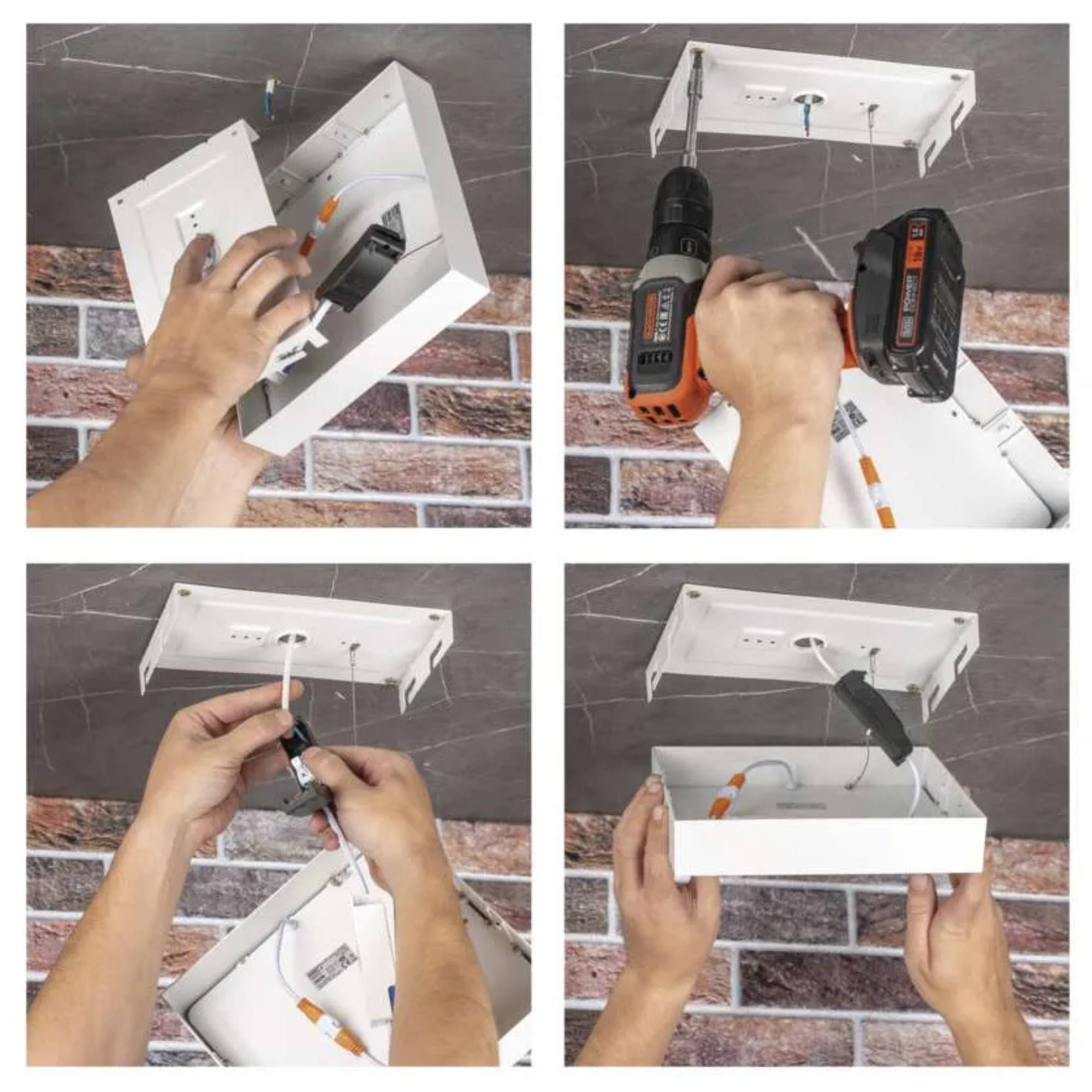 Má bílou kovovou konstrukci ve čtvercovém tvaru o šířce 30 cm. Za plastovým stínidlem se ukrývá integrovaný LED světelný zdroj s maximálním příkonem 28,5W. Zdroj má světelný tok 2700 lumenů s volitelnou teplotou světla 3000, 3500 a 4000 Kelvinů, kterou zvolíte při montáži svítidla. Výhodnou vlastností zdroje je dlouhá životnost, která poskytuje až 30 000 hodin osvětlení.