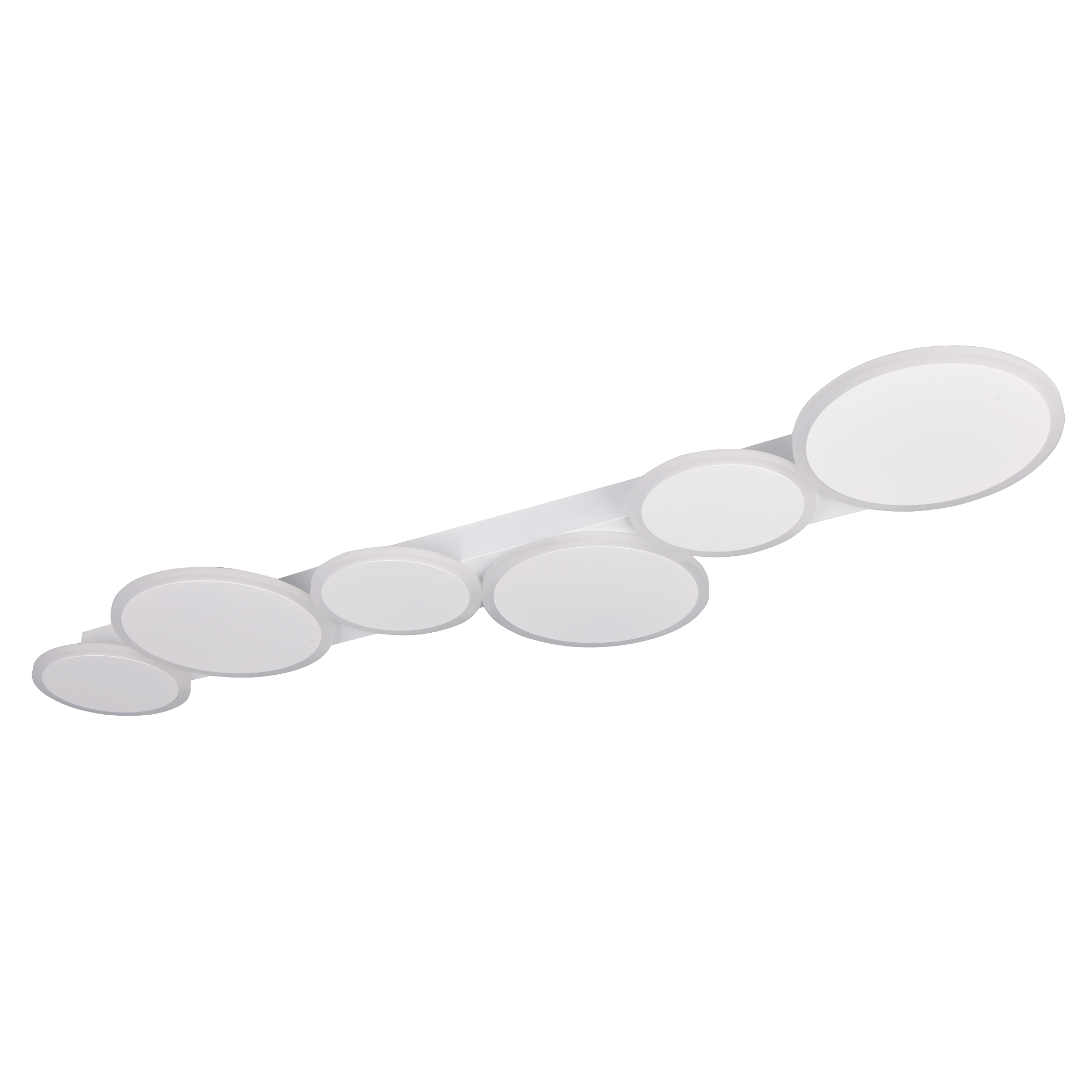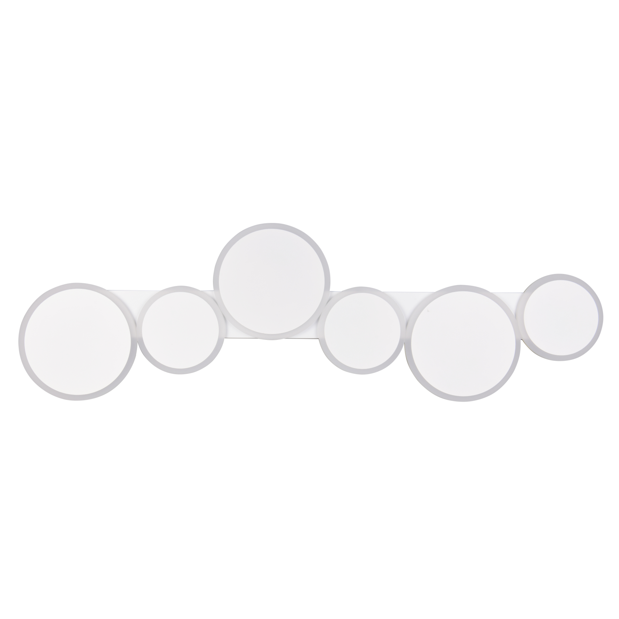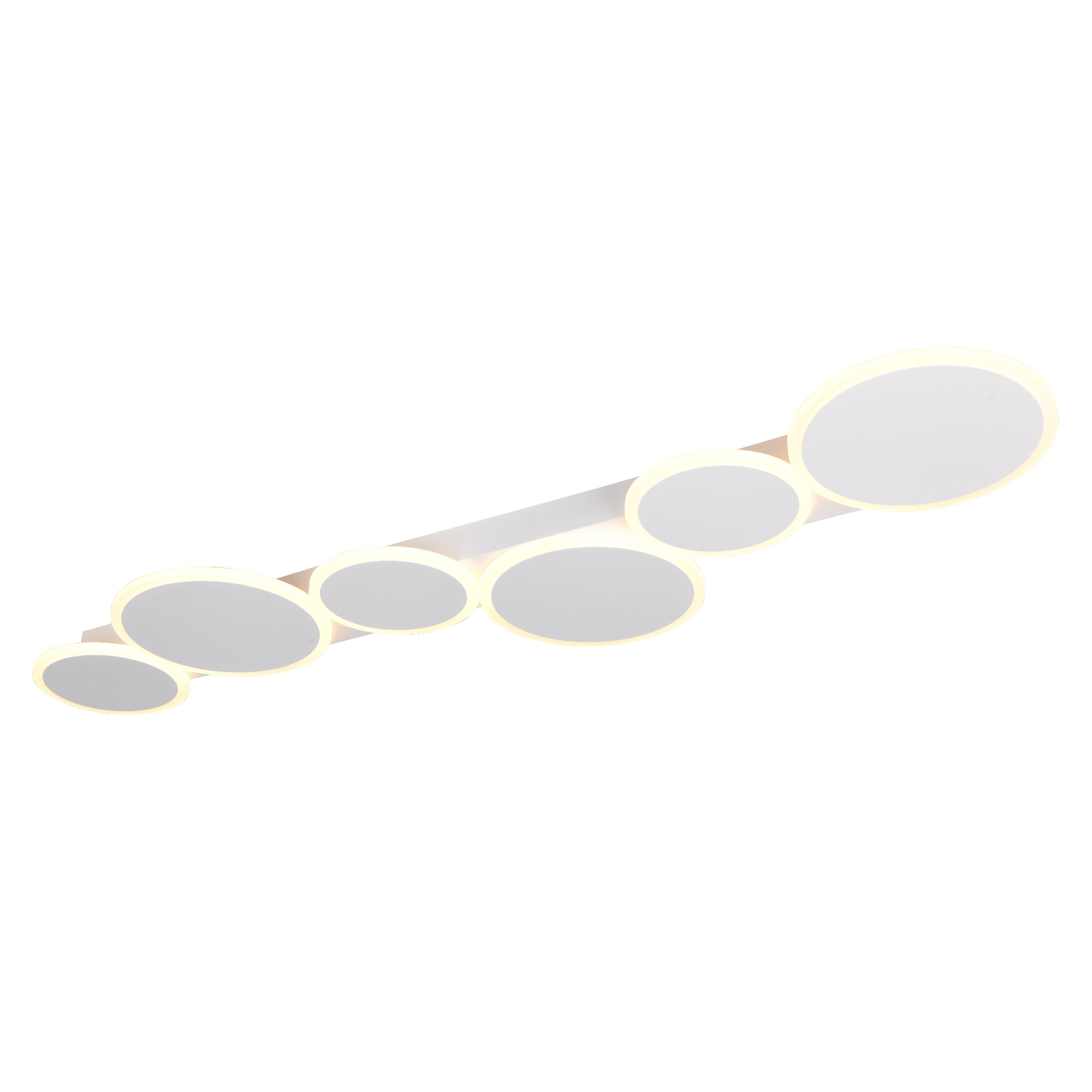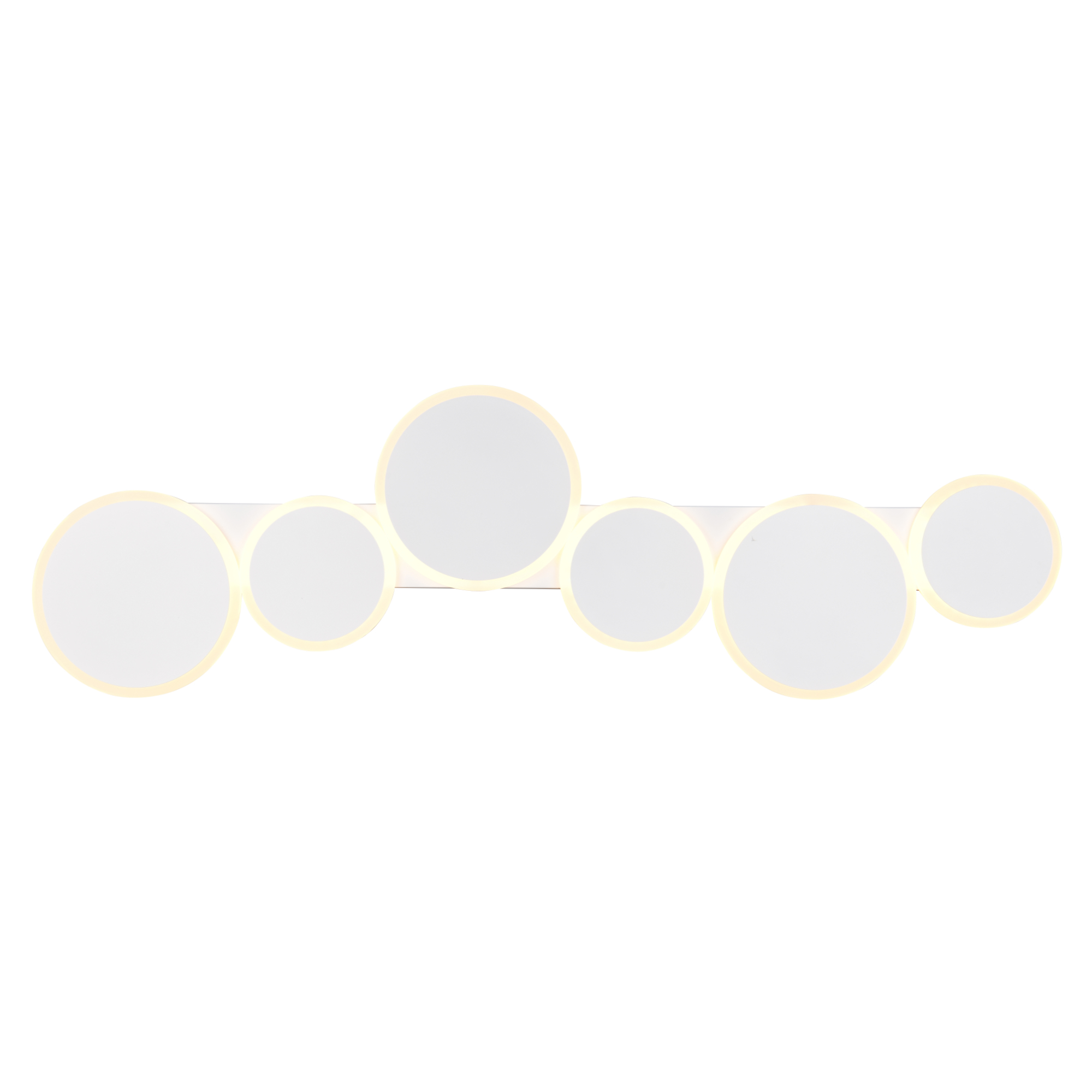 Má kovovou konstrukci s 6 kruhovými stínidly ve dvou velikostech. Ty vytvářejí zajímavý a zároveň minimalistický vzhled, který oživí váš obývací pokoj, jídelnu či ložnici. Má šířku 100 cm, díky čemuž bude středem pozornosti každé místnosti.