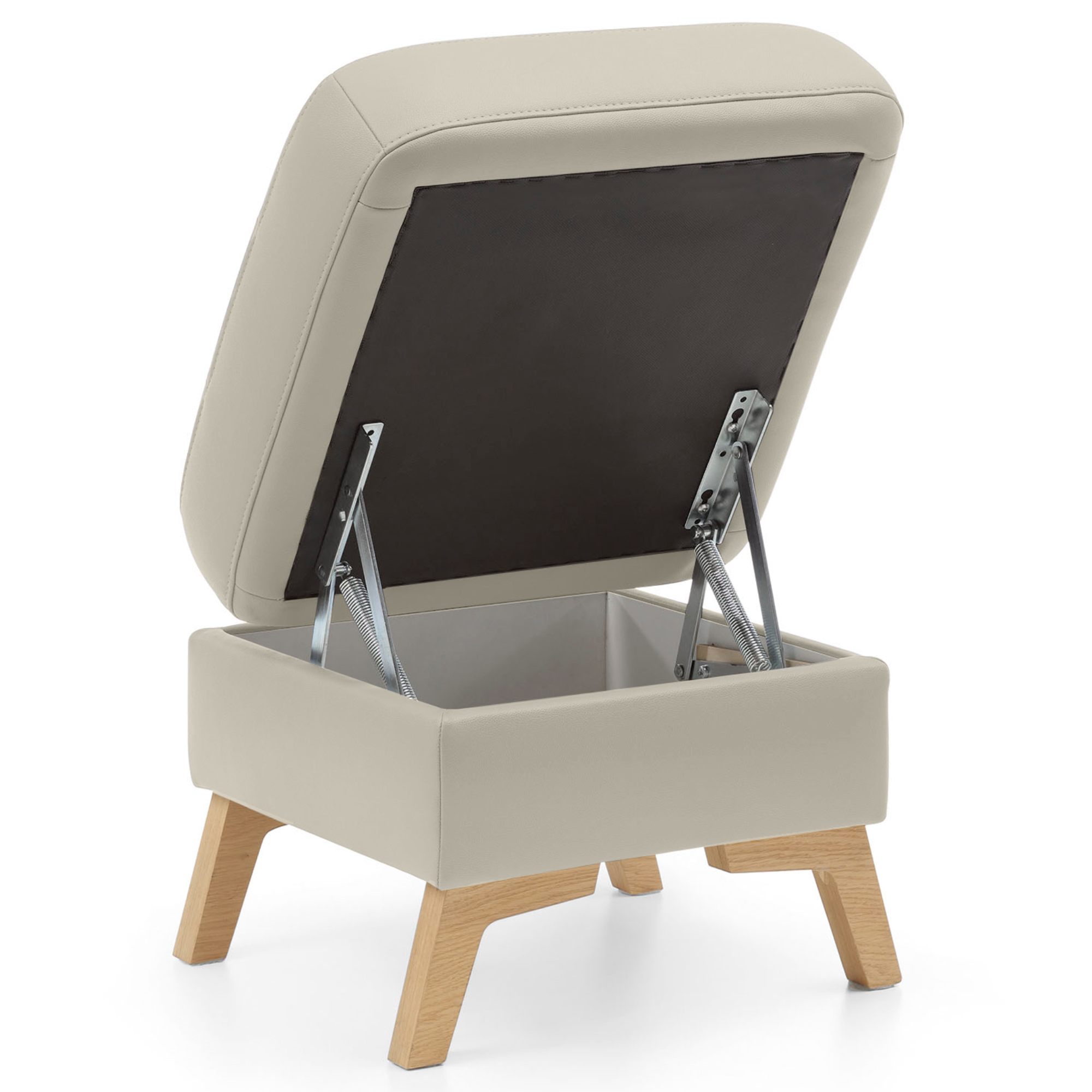 Sedák je potažen pravou kůží, což přidává na celkovém komfortu. Stabilitu pak zajišťuje čtveřice nohou z masivního dubového dřeva. Taburet využijete i jako praktickou podnožku ke stejnojmennému křeslu či pohovce. Navíc jej díky snadné manipulaci využijete kdekoli ve vaší domácnosti. V taburetu se také nachází praktický úložný prostor pro vše, co nemáte kam odložit.