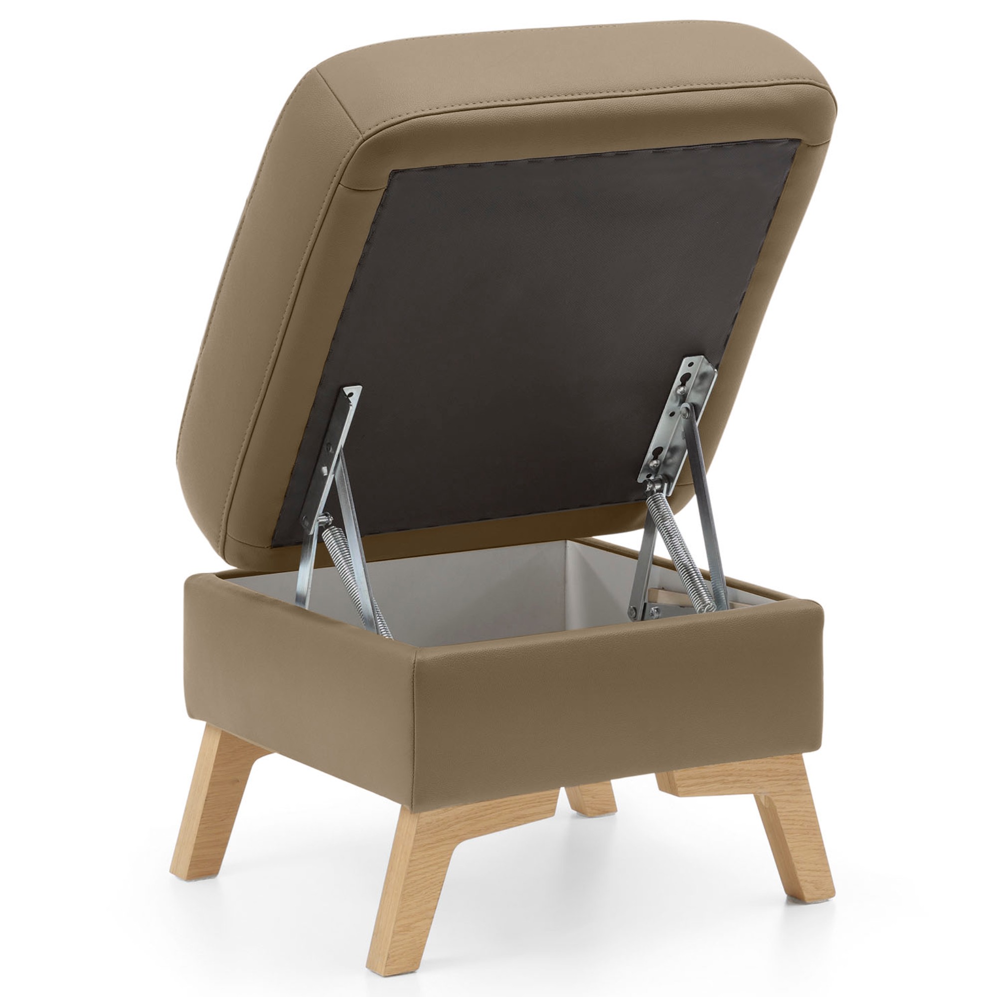 Sedák je potažen pravou kůží, což přidává na celkovém komfortu. Stabilitu pak zajišťuje čtveřice nohou z masivního dubového dřeva. Taburet využijete i jako praktickou podnožku ke stejnojmennému křeslu či pohovce. Navíc jej díky snadné manipulaci využijete kdekoli ve vaší domácnosti. V taburetu se také nachází praktický úložný prostor pro vše, co nemáte kam odložit.