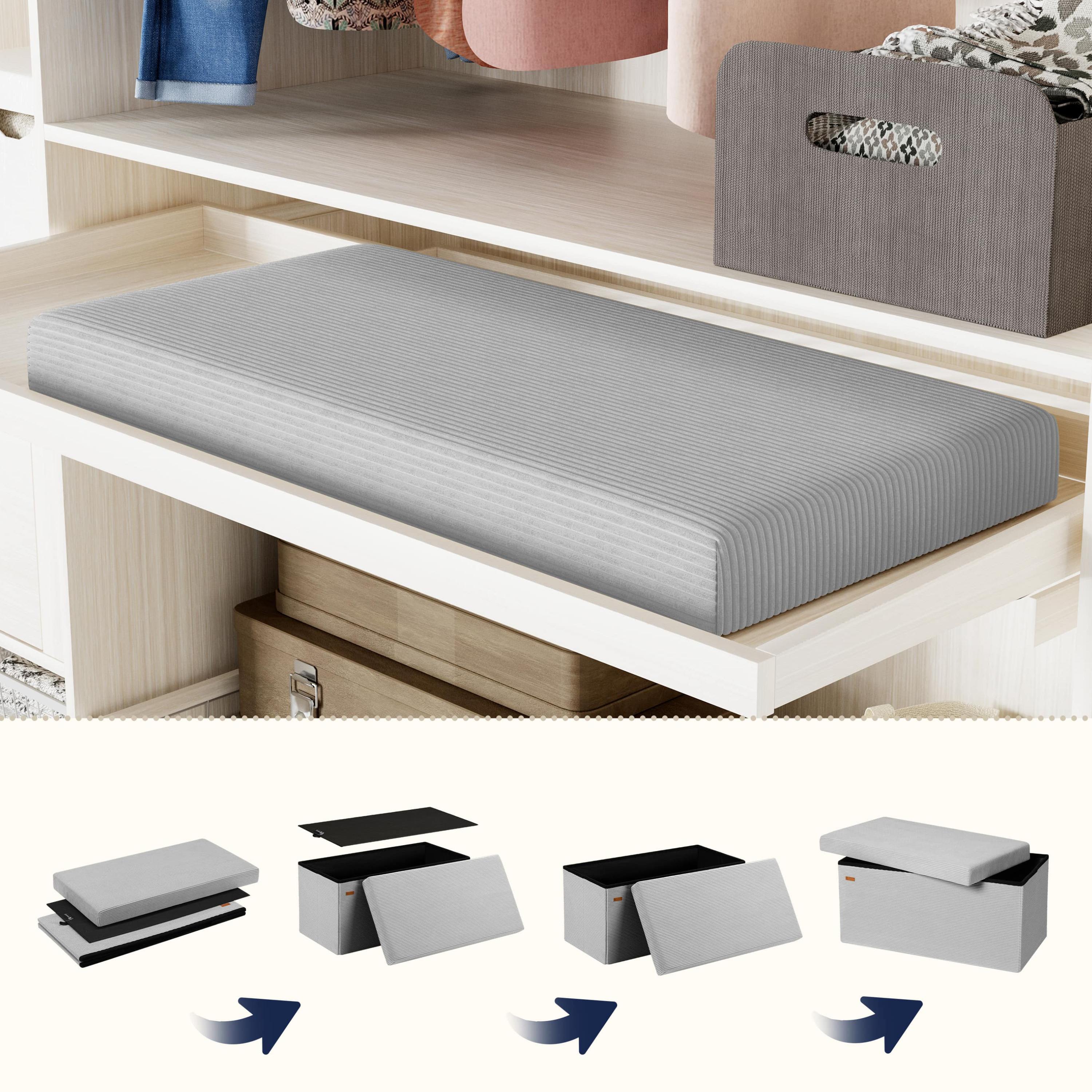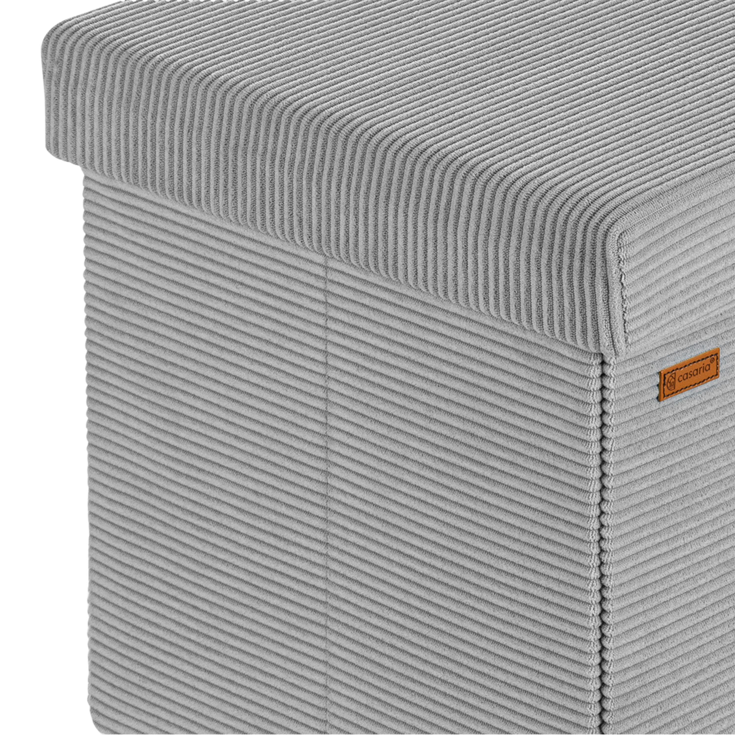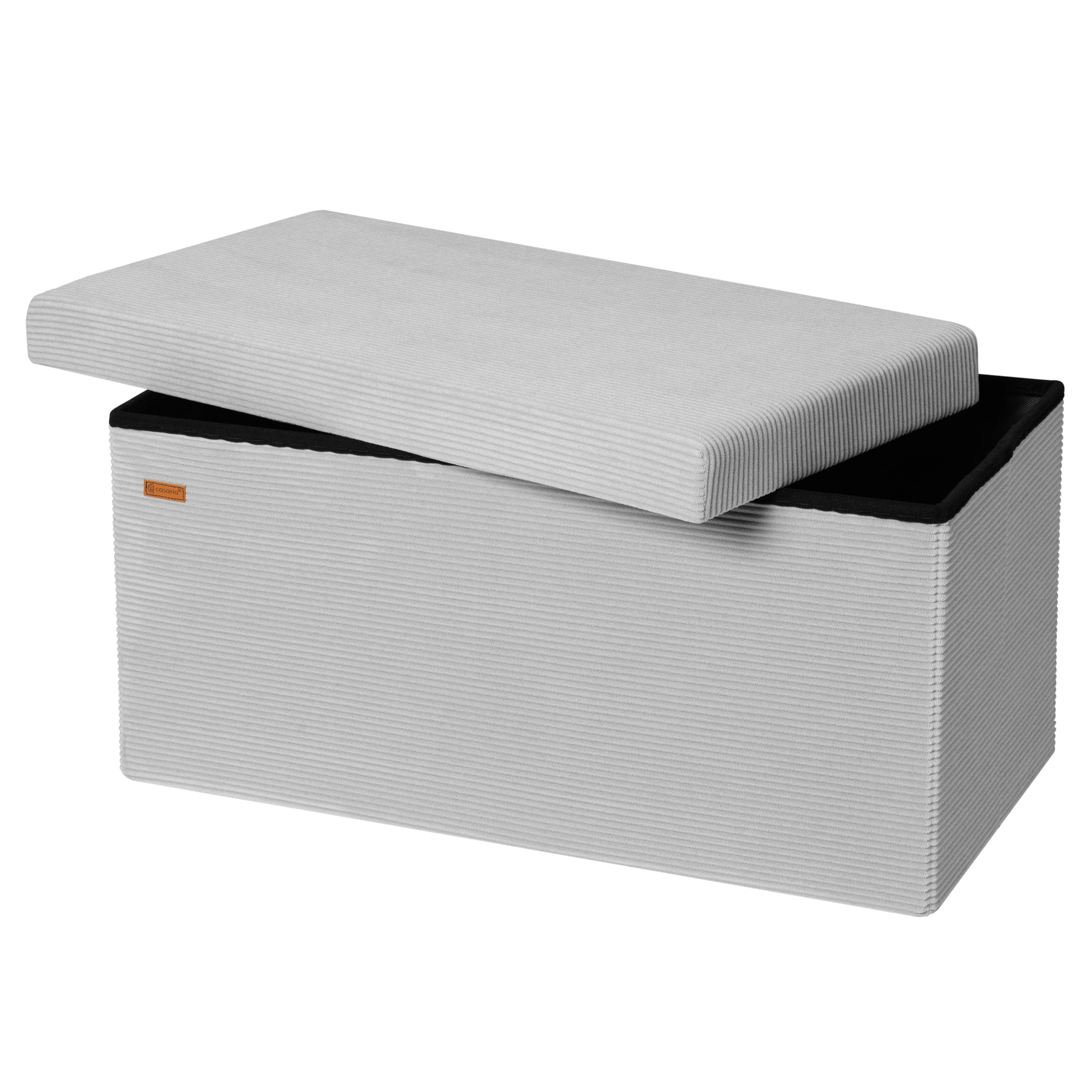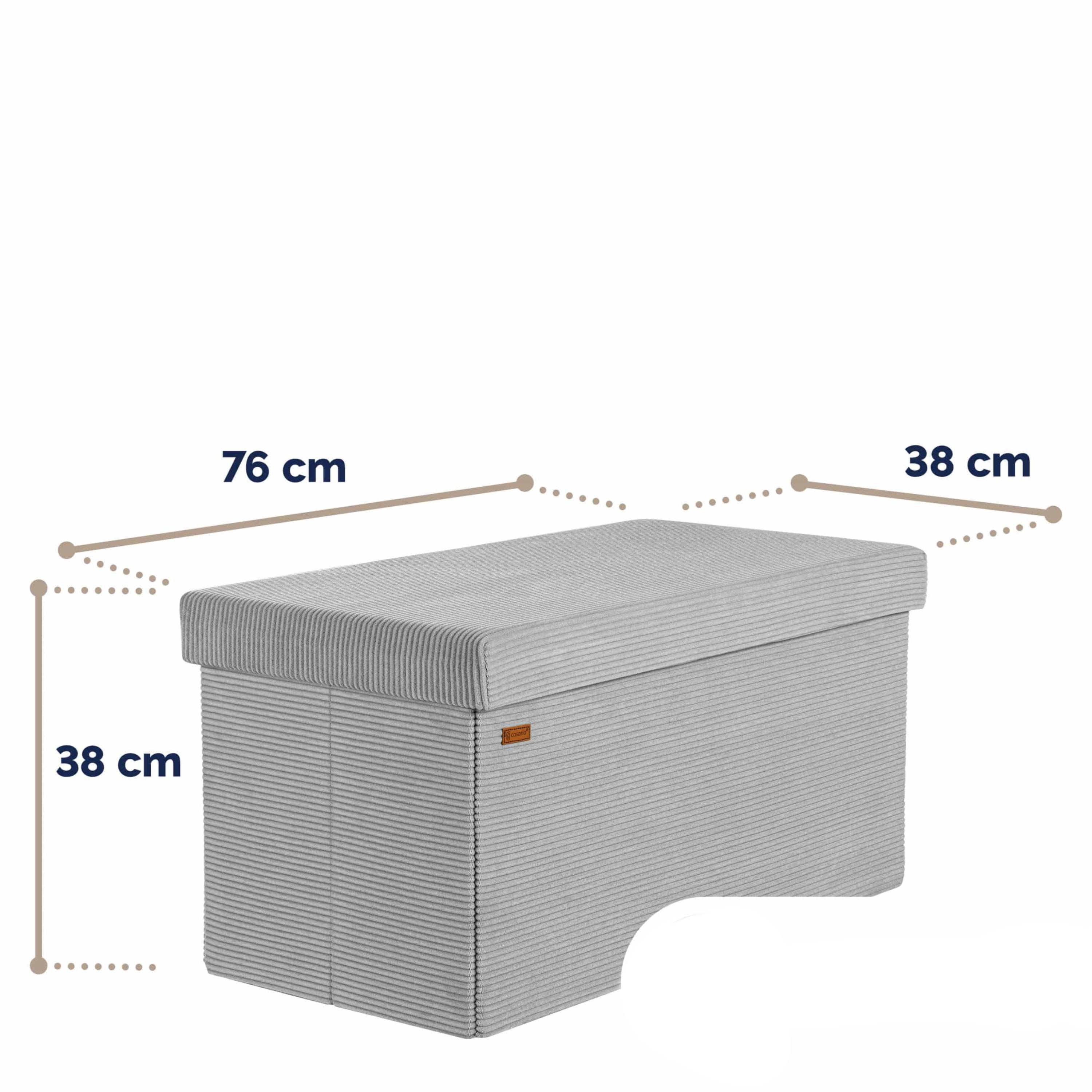 Silně polstrované víko s jádrem z polyuretanové pěny poskytuje pohodlné sezení a zároveň ukrývá praktický úložný prostor o objemu 100 litrů, který je ideální pro uložení dek, polštářů, hraček nebo dalších drobností. Taburet lze navíc velmi snadno rozložit a uskladnit, pokud jej právě nepotřebujete. Díky tomu je praktickým řešením i pro menší prostory.