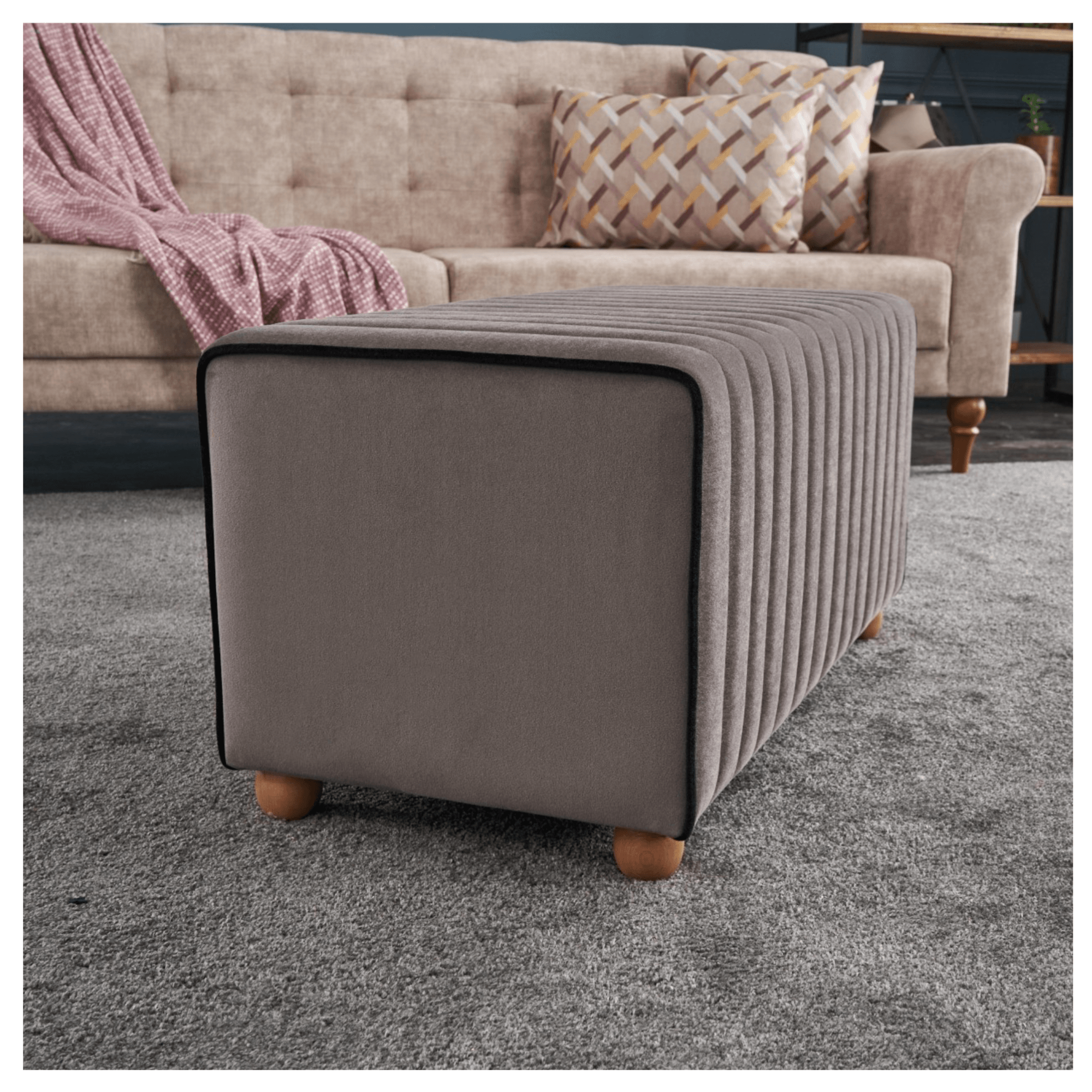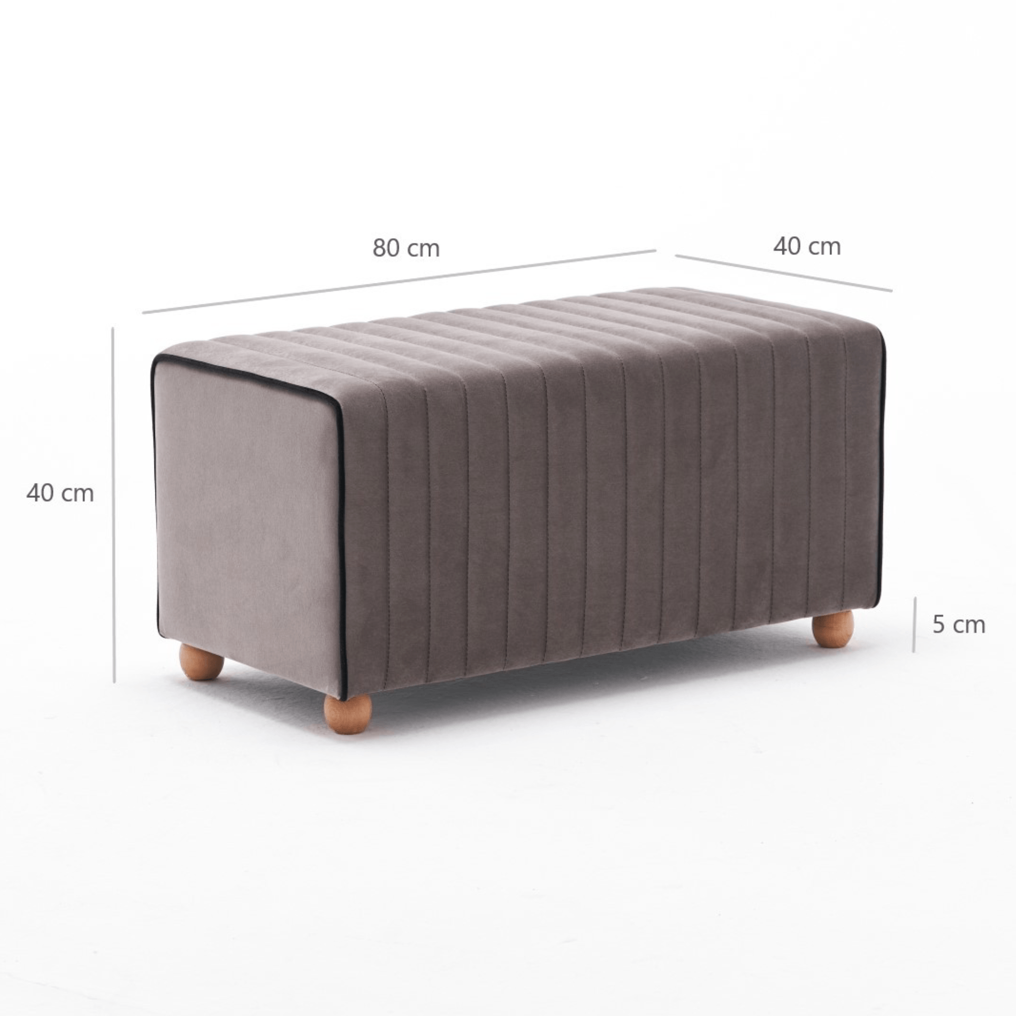 Komfortní sedák nabízí dostatek prostoru pro sezení, ale je i skvělým pomocníkem pro odložení unavených nohou. Využijete ho buď jako solitér nebo ním doplníte křeslo, pohovku či sedací soupravu. Potažen je hladkou tkaninou sametového vzhledu ze 100% polyesteru, která je na bocích zdobena dekorativním prošíváním. Dřevěné nožky podtrhují celkový vzhled taburetu a zároveň jsou velice důležité pro jeho stabilitu. Taburet MABEL si můžete vybrat hned z několika barevných provedení.