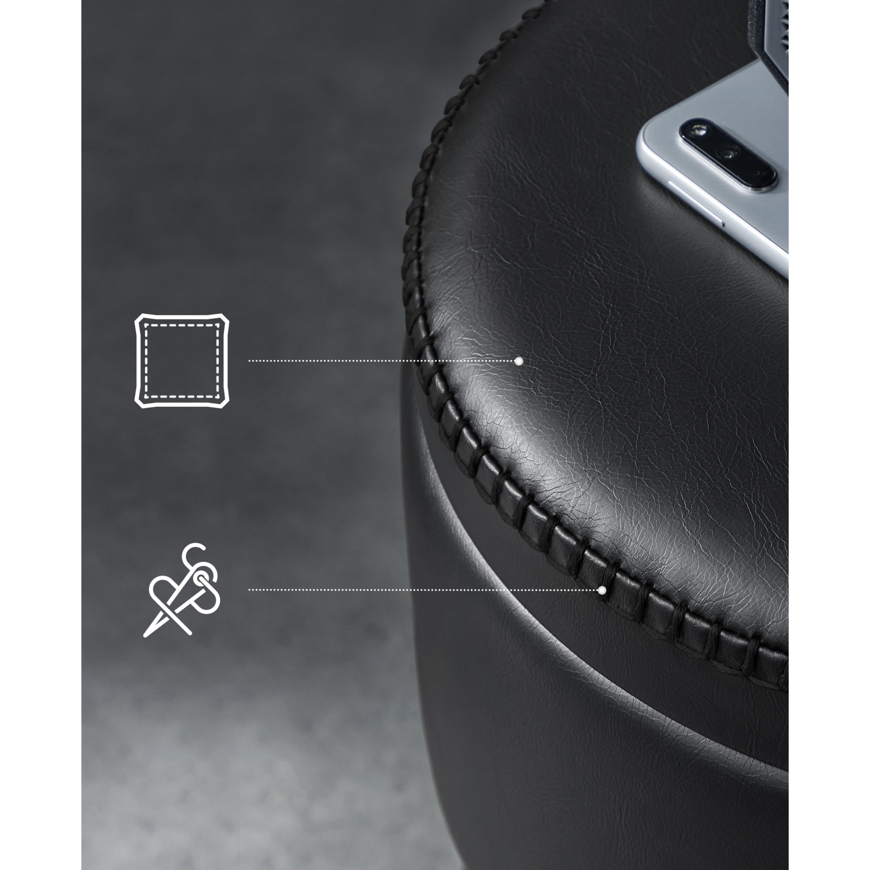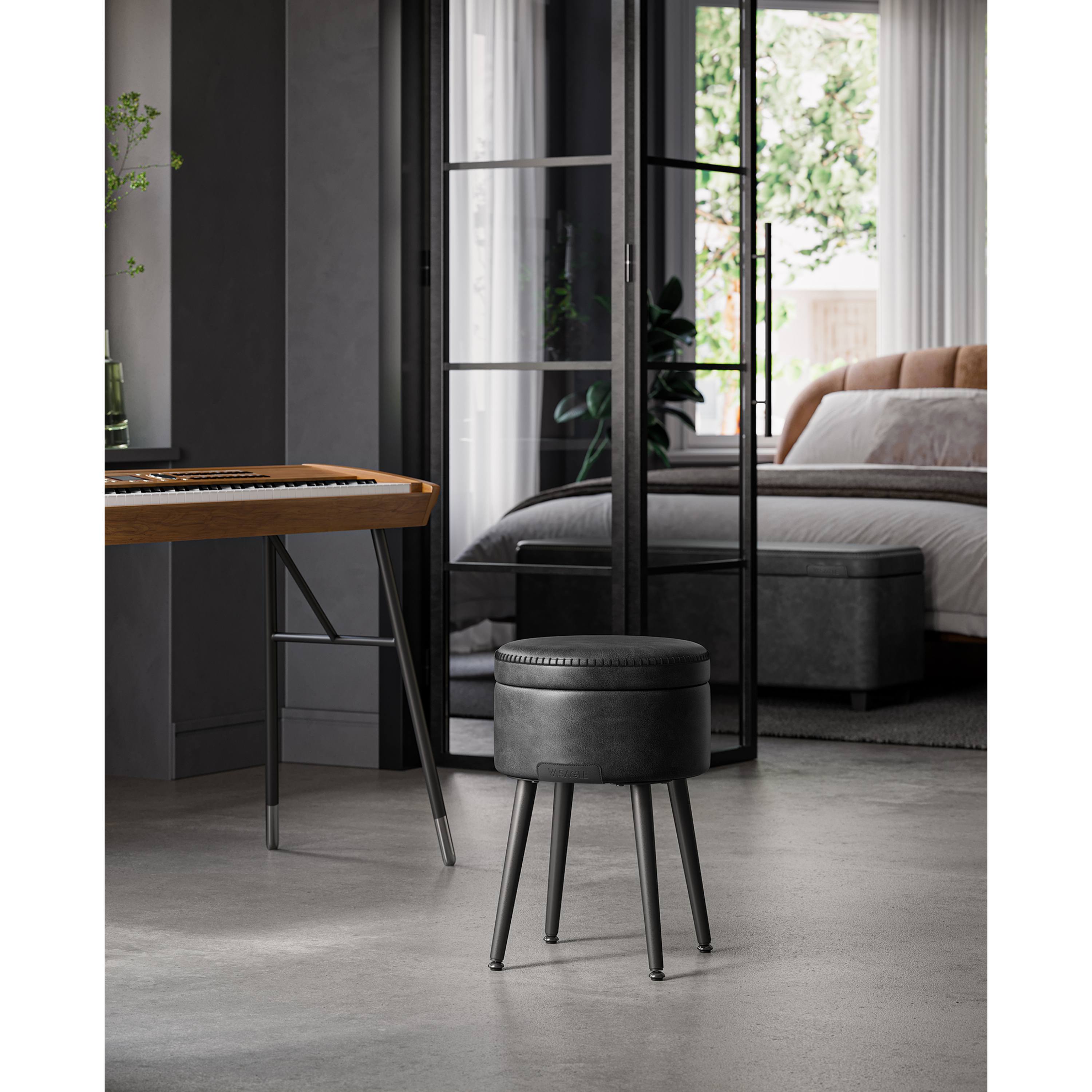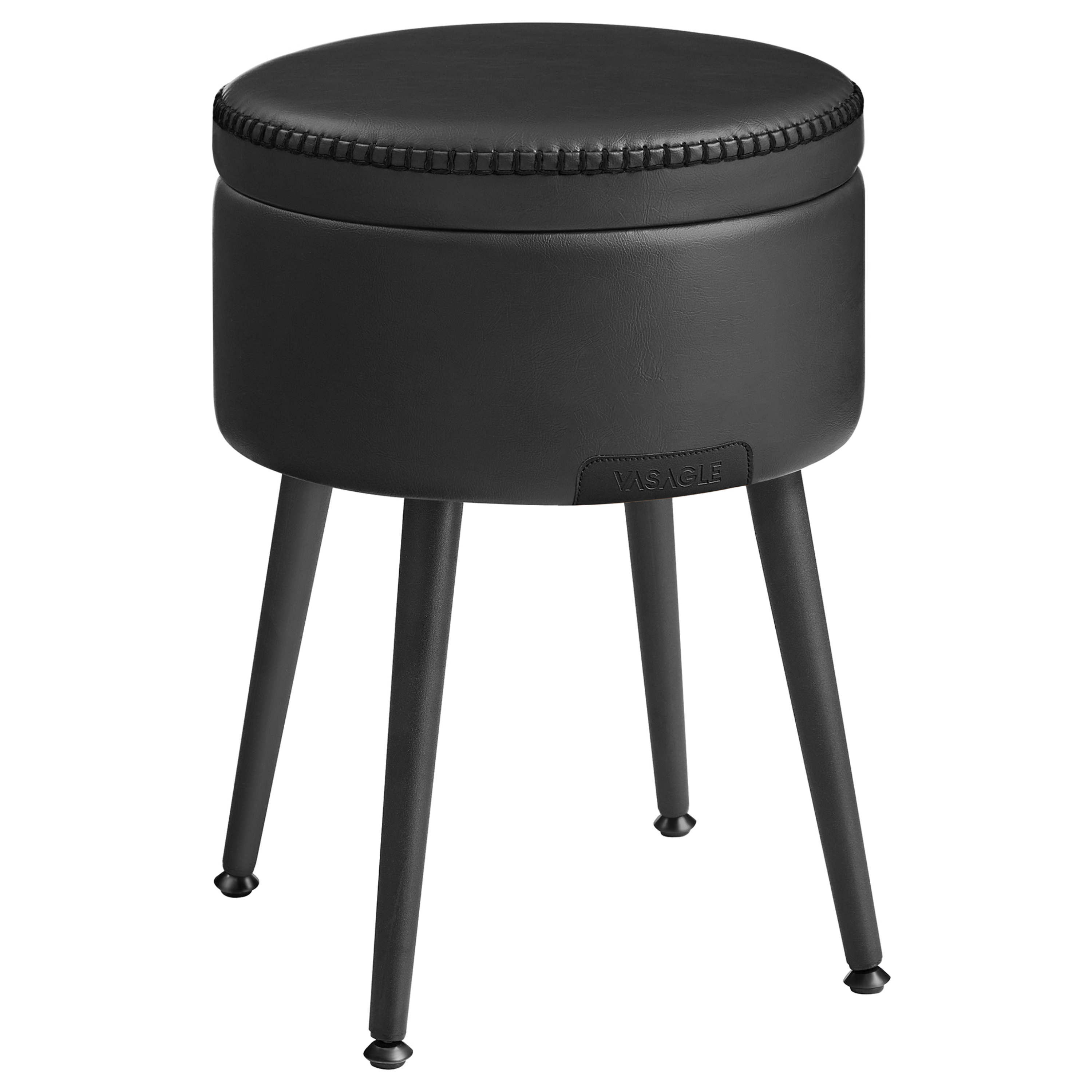 Kombinace syntetické kůže a stylového prošívání působí elegantním dojmem. Uvnitř taburetu navíc naleznete úložný prostor, kde uložíte vše potřebné. Celou konstrukci podepírají kovové nohy, které lze nastavit pro vyrovnání různých nerovností.