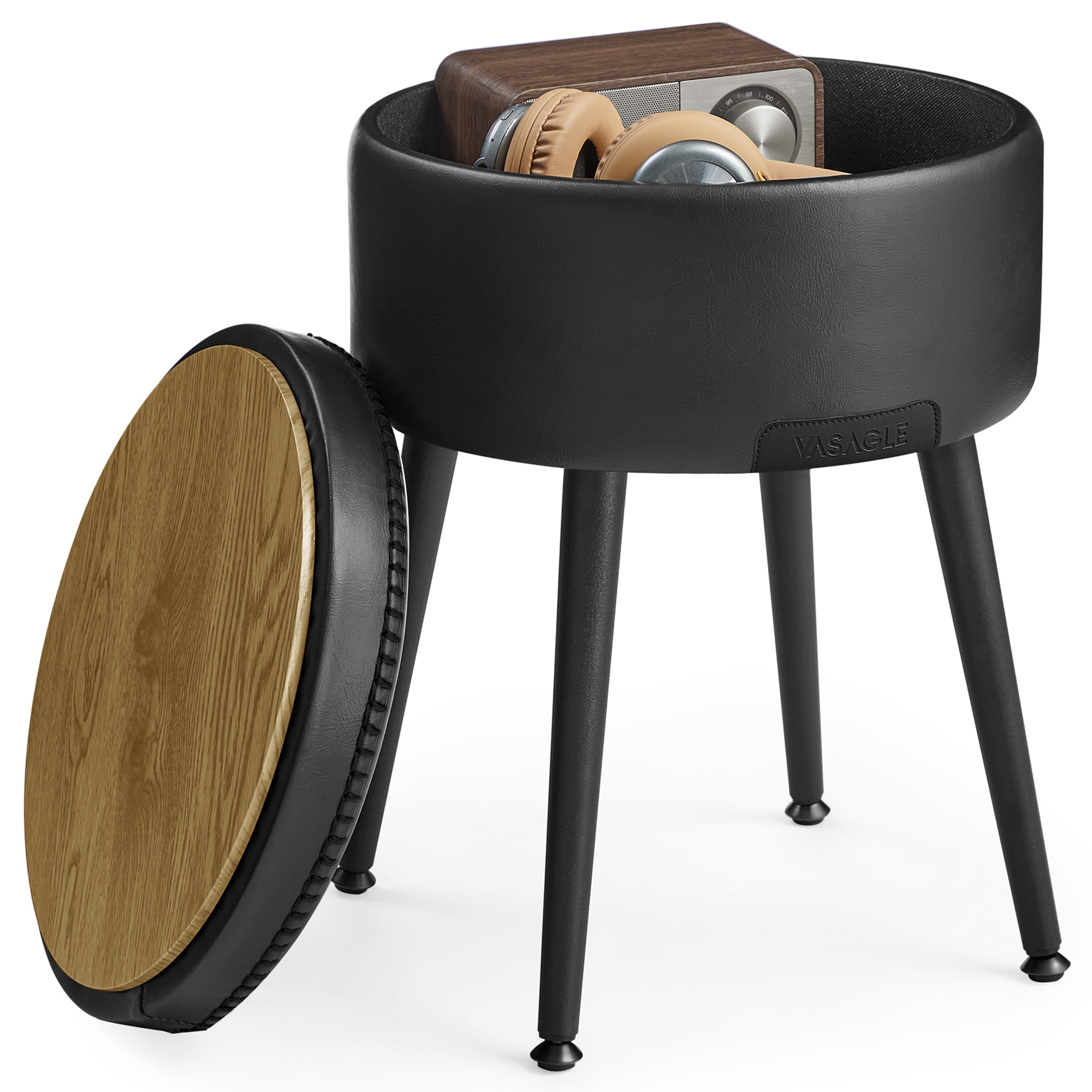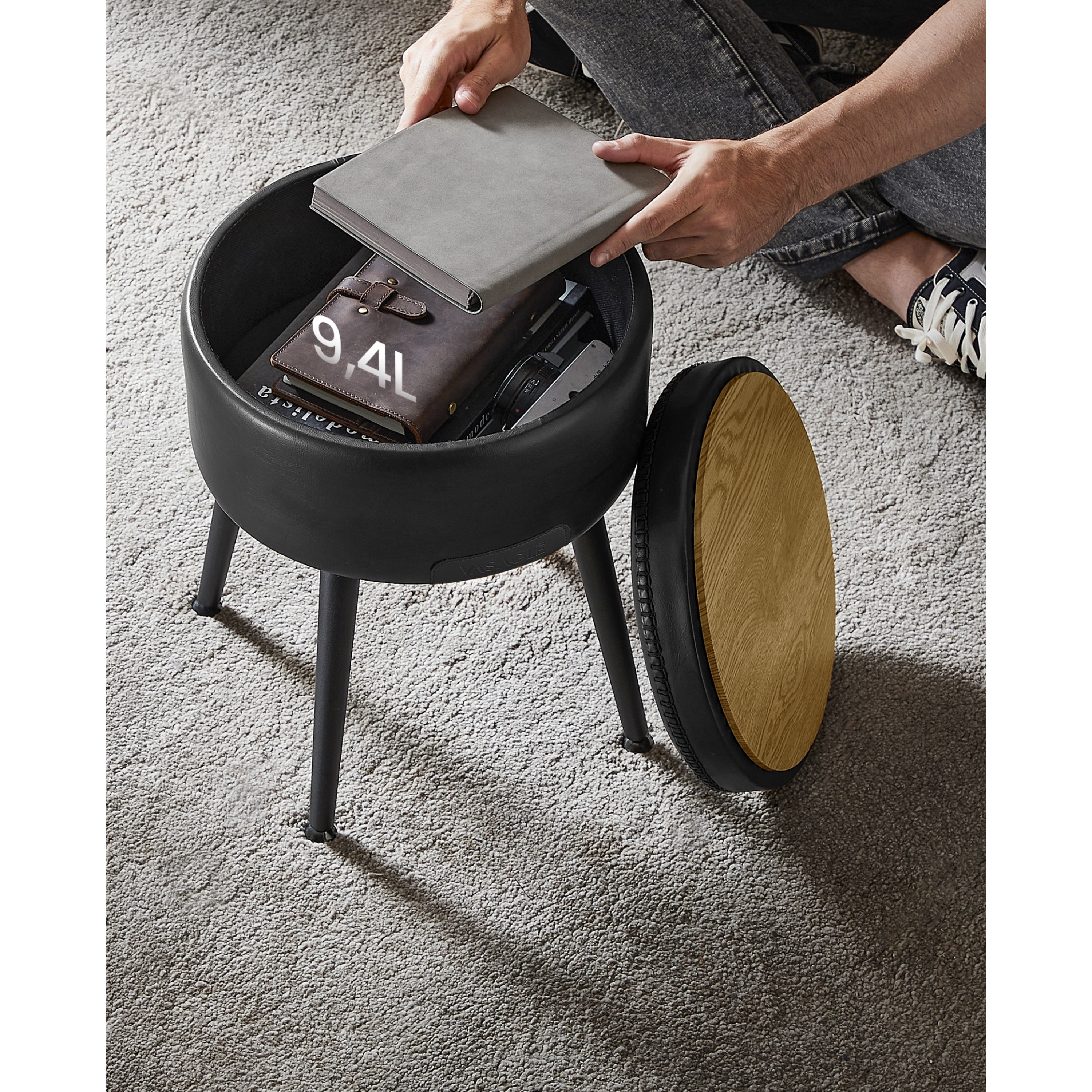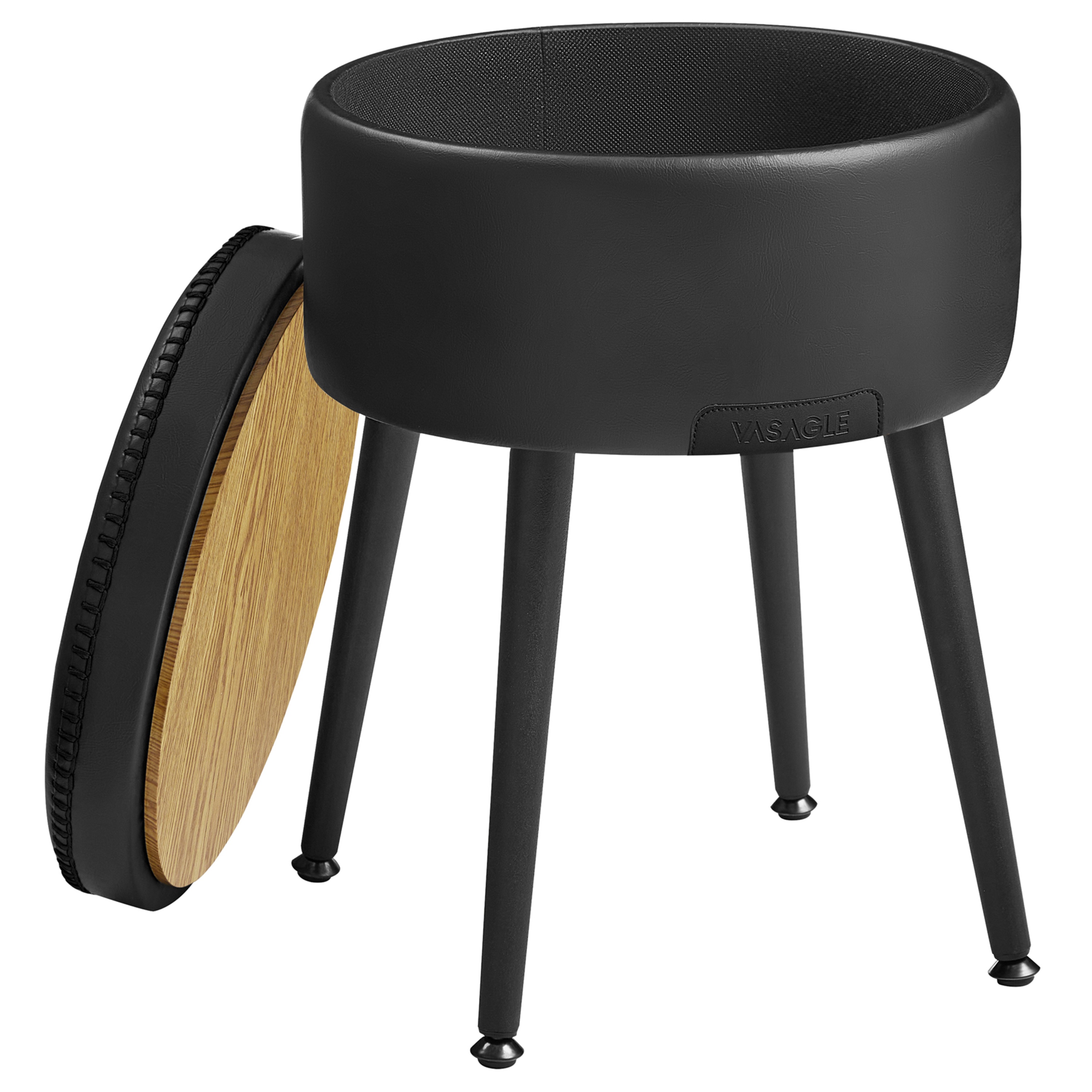 Kombinace syntetické kůže a stylového prošívání působí elegantním dojmem. Uvnitř taburetu navíc naleznete úložný prostor, kde uložíte vše potřebné. Celou konstrukci podepírají kovové nohy, které lze nastavit pro vyrovnání různých nerovností.