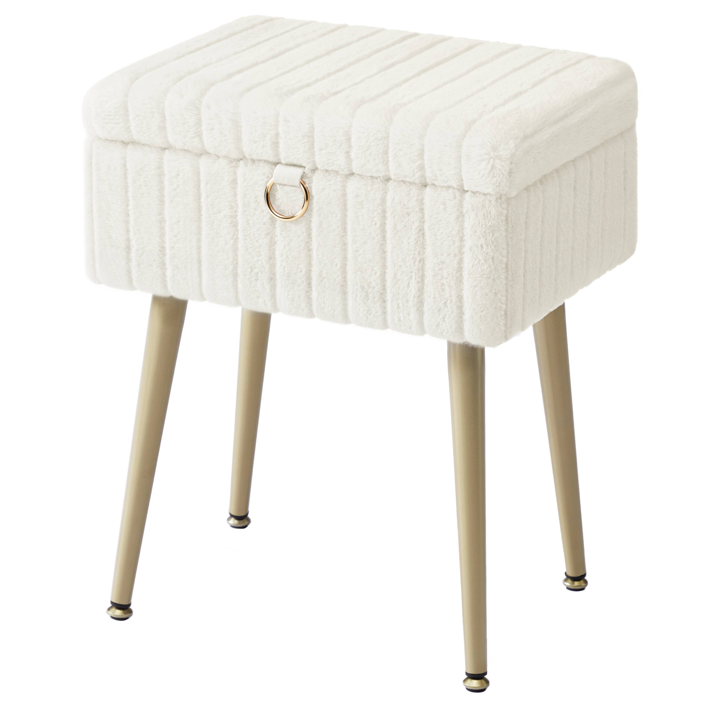 Kombinace příjemné tkaniny a stylového prošívání působí elegantním dojmem. Uvnitř taburetu navíc naleznete úložný prostor, kde uložíte primárně kosmetické doplňky. Celou konstrukci podepírají kovové nohy.