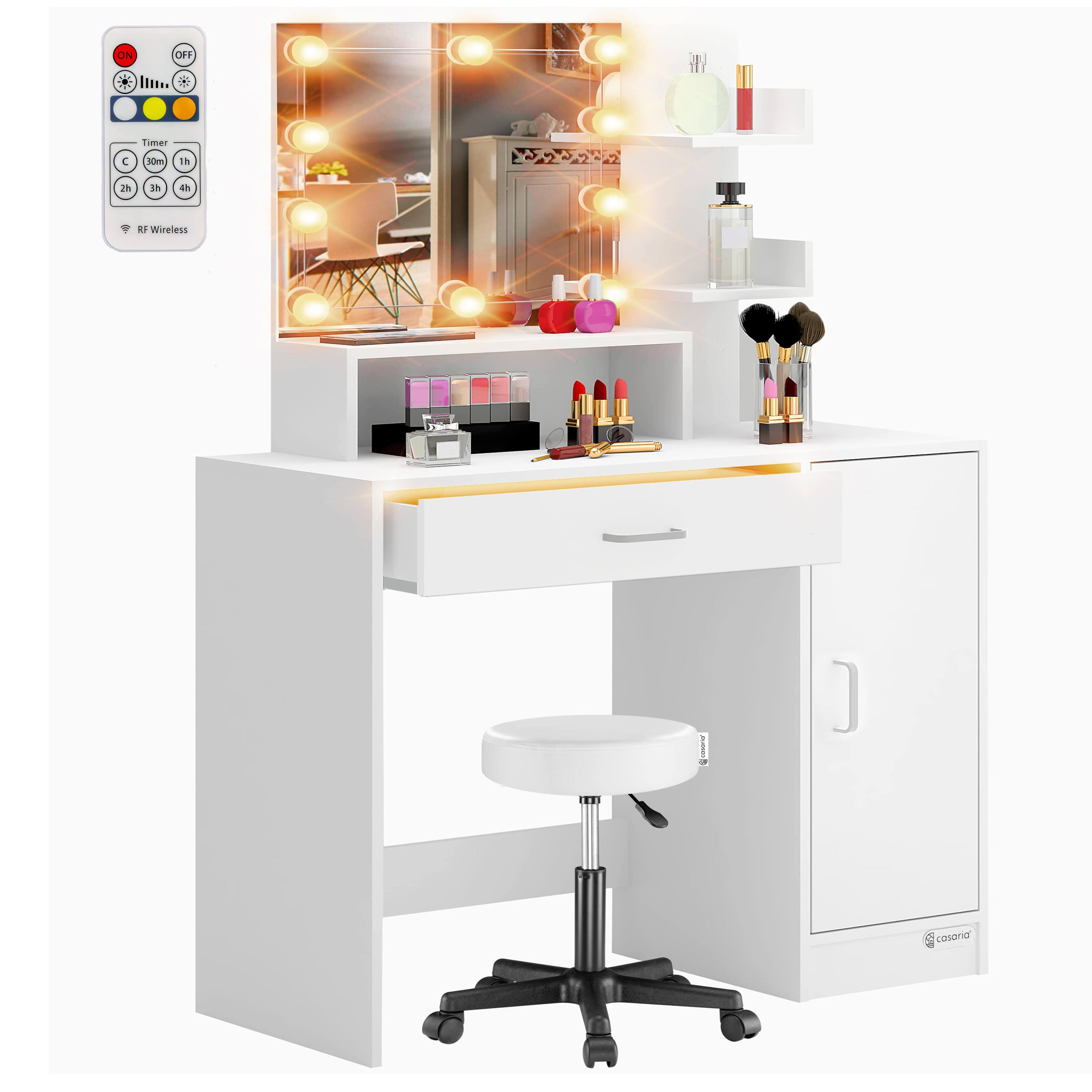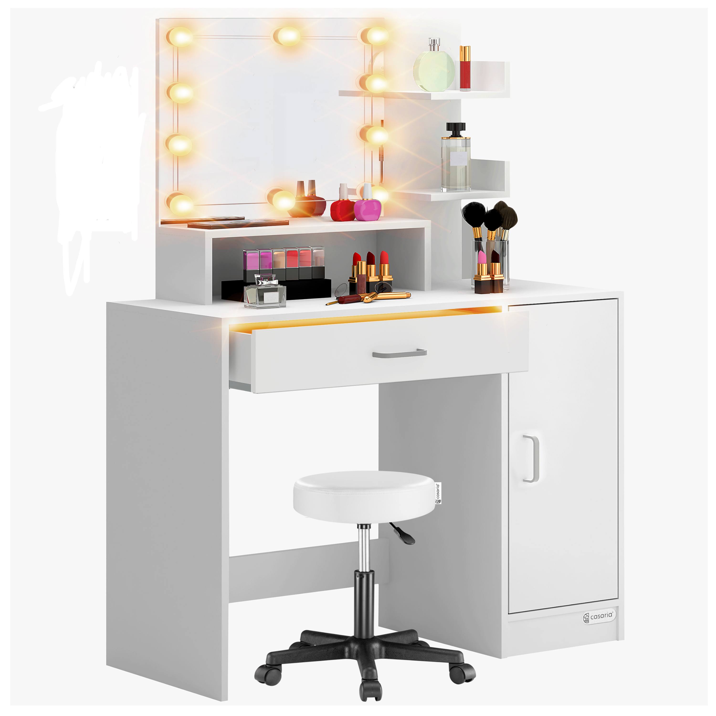 Obsahuje sofistikované osvětlení, které se zapíná a vypíná pomocí senzoru. Hladce se pohybující kovové kolejnice umožňují snadné otevírání zásuvky. Velké zrcadlo má 2 další police a 1 úložnou přihrádku pro vystavení stylingových produktů nebo parfémů.