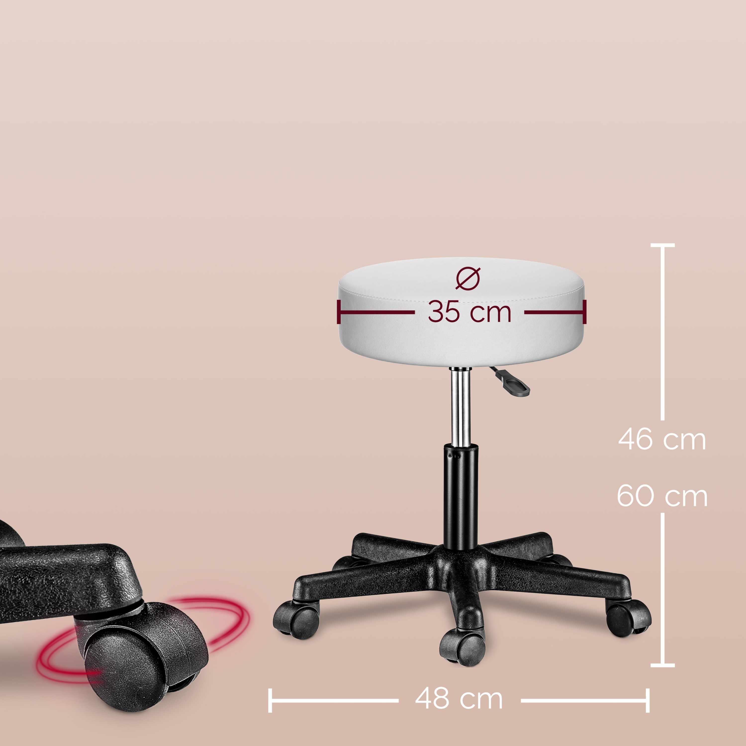 Vysoce kvalitní pojízdná stolička s extra širokou základnou, která je součástí balení, vám nabízí maximální flexibilitu. Výška sedáku je plynule nastavitelná od 46 do 60 cm a lze ji otáčet o 360°. Lehce se pohybující kolečka umožňují použití na parketách nebo kobercích.