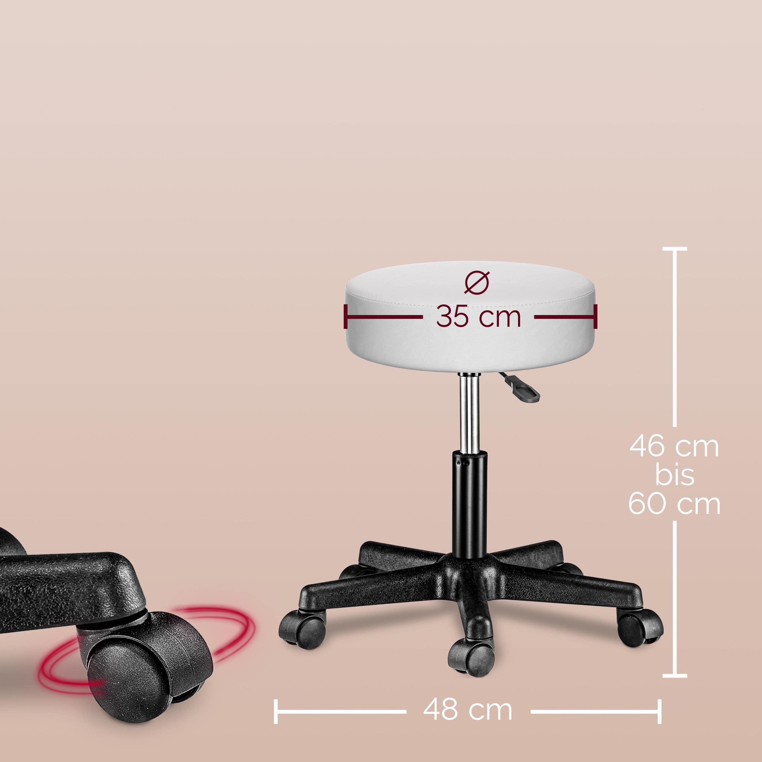 Stolek je dodáván včetně pohodlné stoličky na kolečkách s otočnou základnou pro snadnou manipulaci na různých typech podlah. Její výška je nastavitelná v rozmezí 46-60 cm a sedák je čalouněn potahem z polyuretanu.