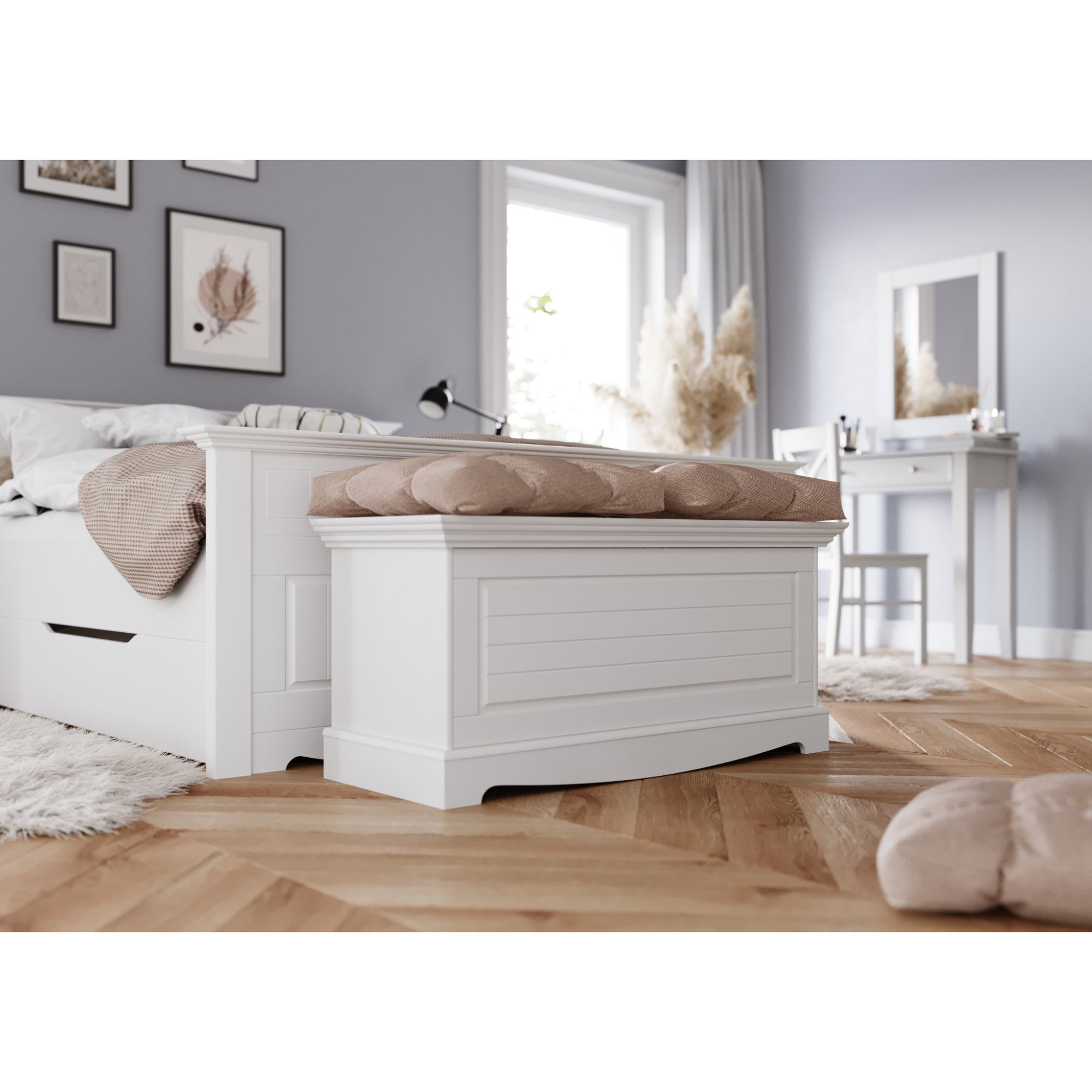 Truhla BELLU se vyznačuje ozdobnými prvky zdůrazňují charakter provensálského stylu. Použité dřevo finské borovice se vyznačuje vysokou plasticitou a měkkostí. Ekologické dřevo borovice je snadno zpracovatelné, a přitom odolné.