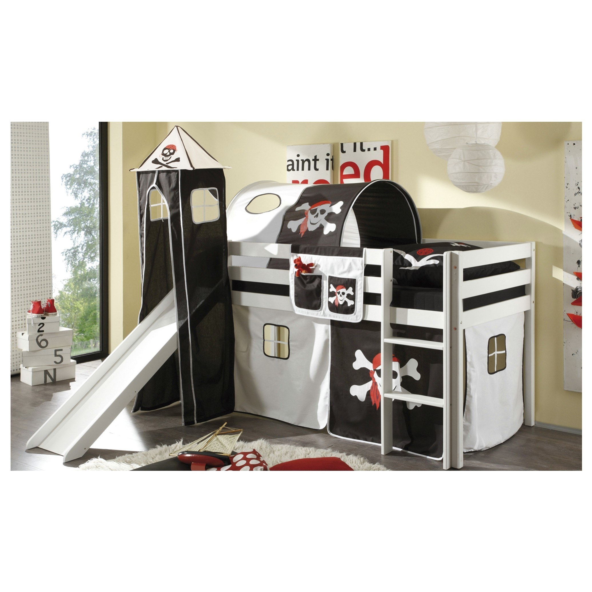 Tunel k posteli ARNIKA PIRAT - černá/bílá/červená