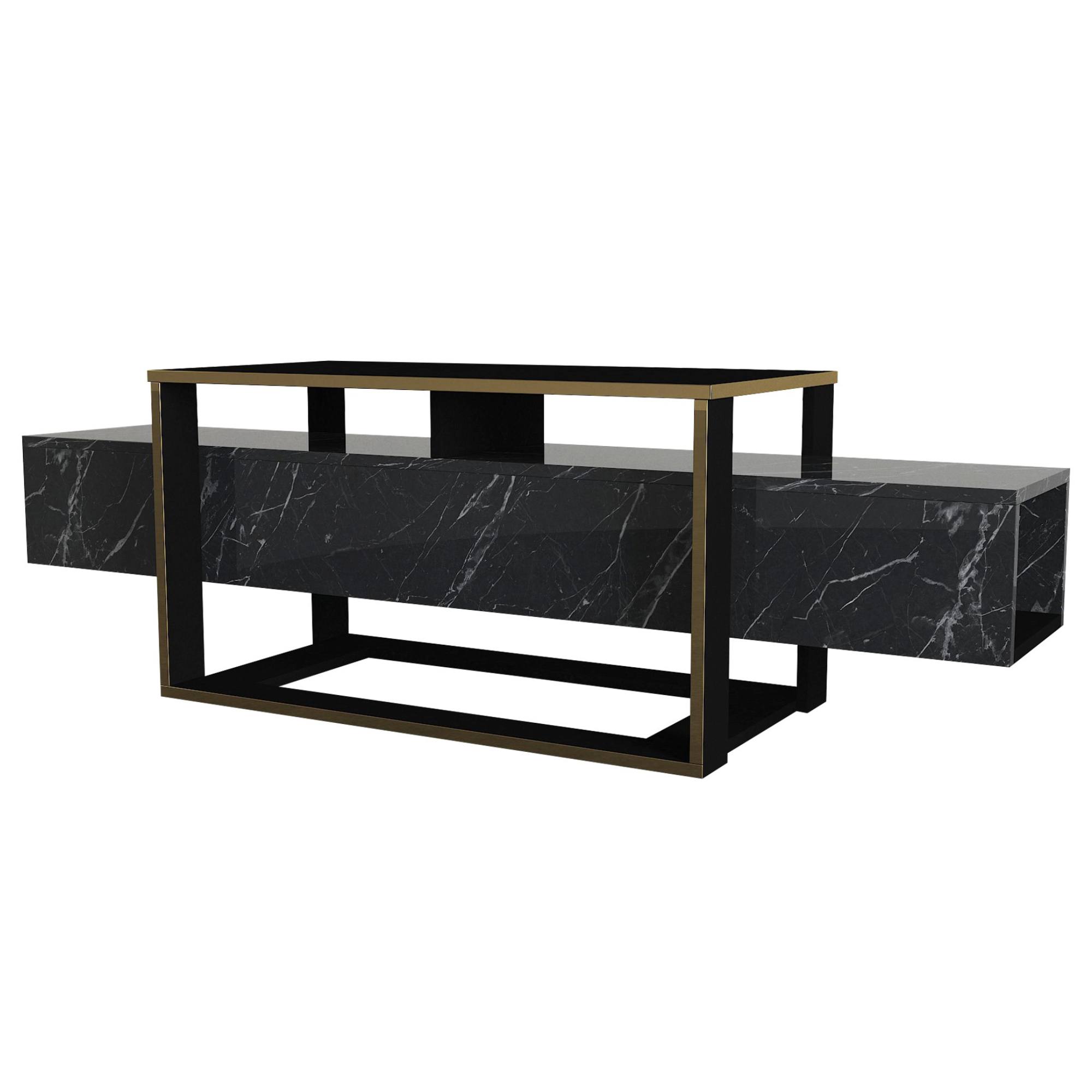TV komoda BIANCO - černá/zlatá