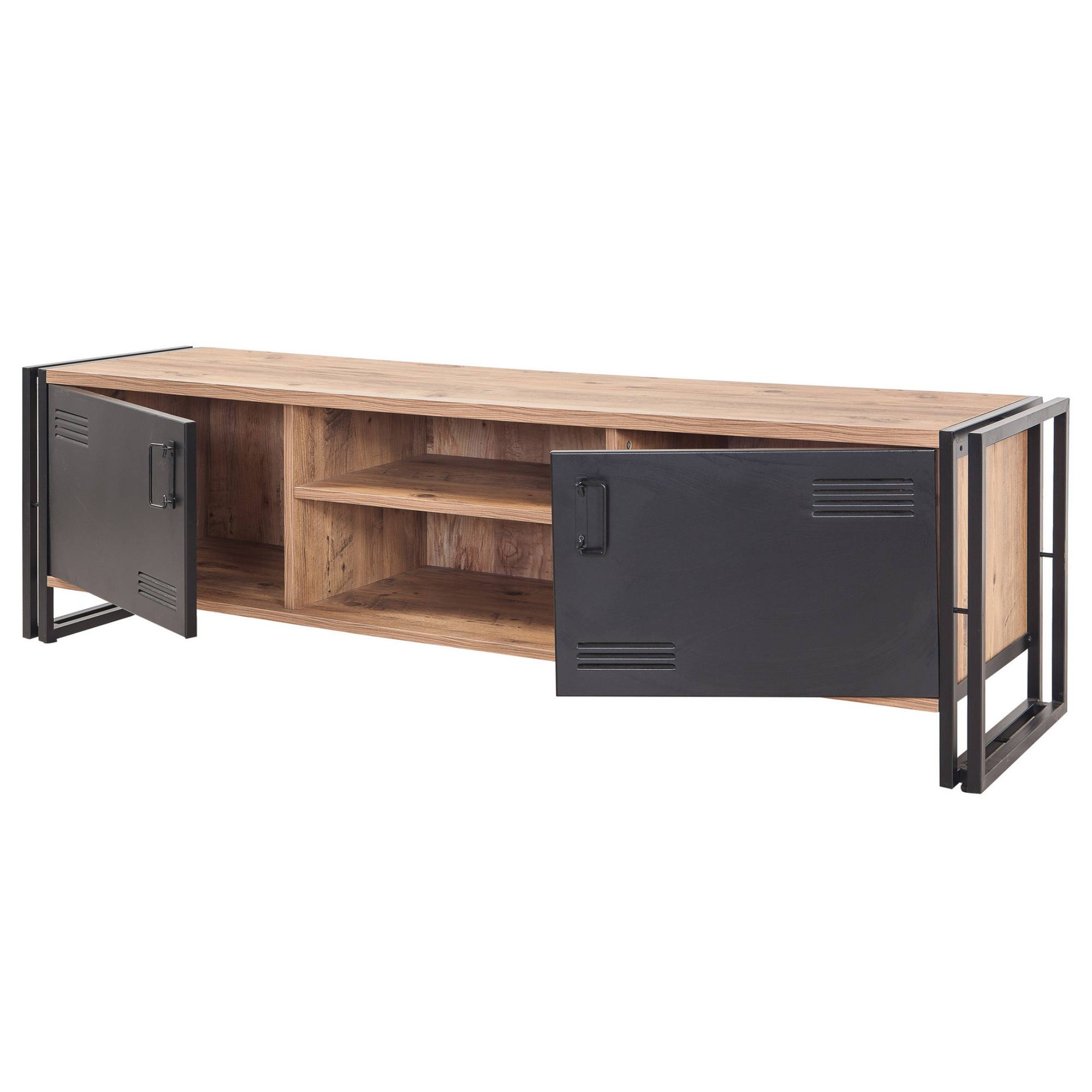 Vyrobena je z laminovaného dřevěného materiálu v kombinaci s kovovými detaily. Přírodní dekor borovice atlantické s černou barvou vytváří atraktivní vzhled. Komoda je vybavena otevřenými přihrádkami, které nabízejí dostatek místa pro uložení vašeho TV příslušenství. Prostor za dvířky umožní uložení předmětů, které chcete mít po ruce, ale zároveň by měly zůstat skryté před zraky návštěv. Každodenní manipulaci usnadňují nenápadné kovové úchyty. Konstrukci podpírají stabilní nohy z černého kovu.
