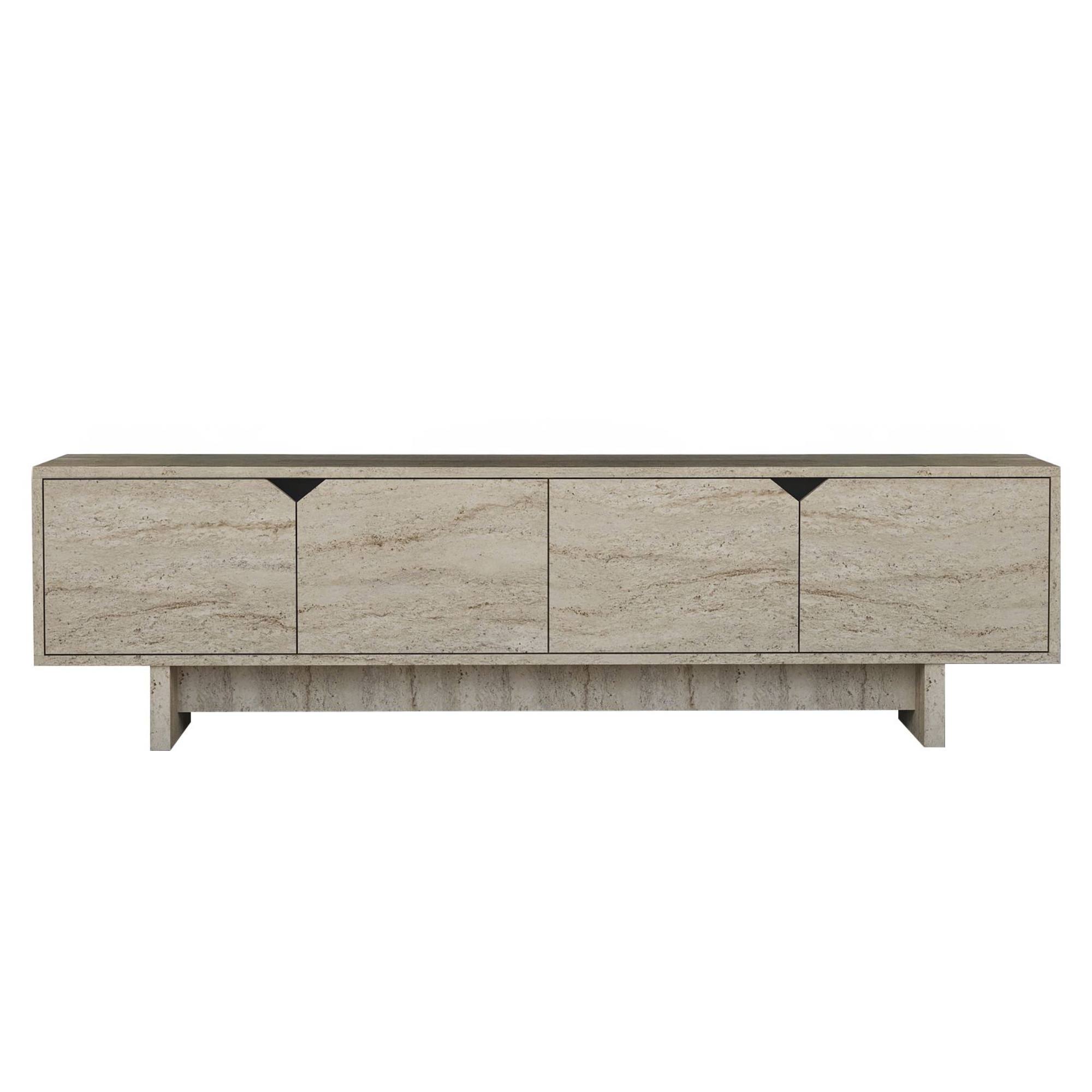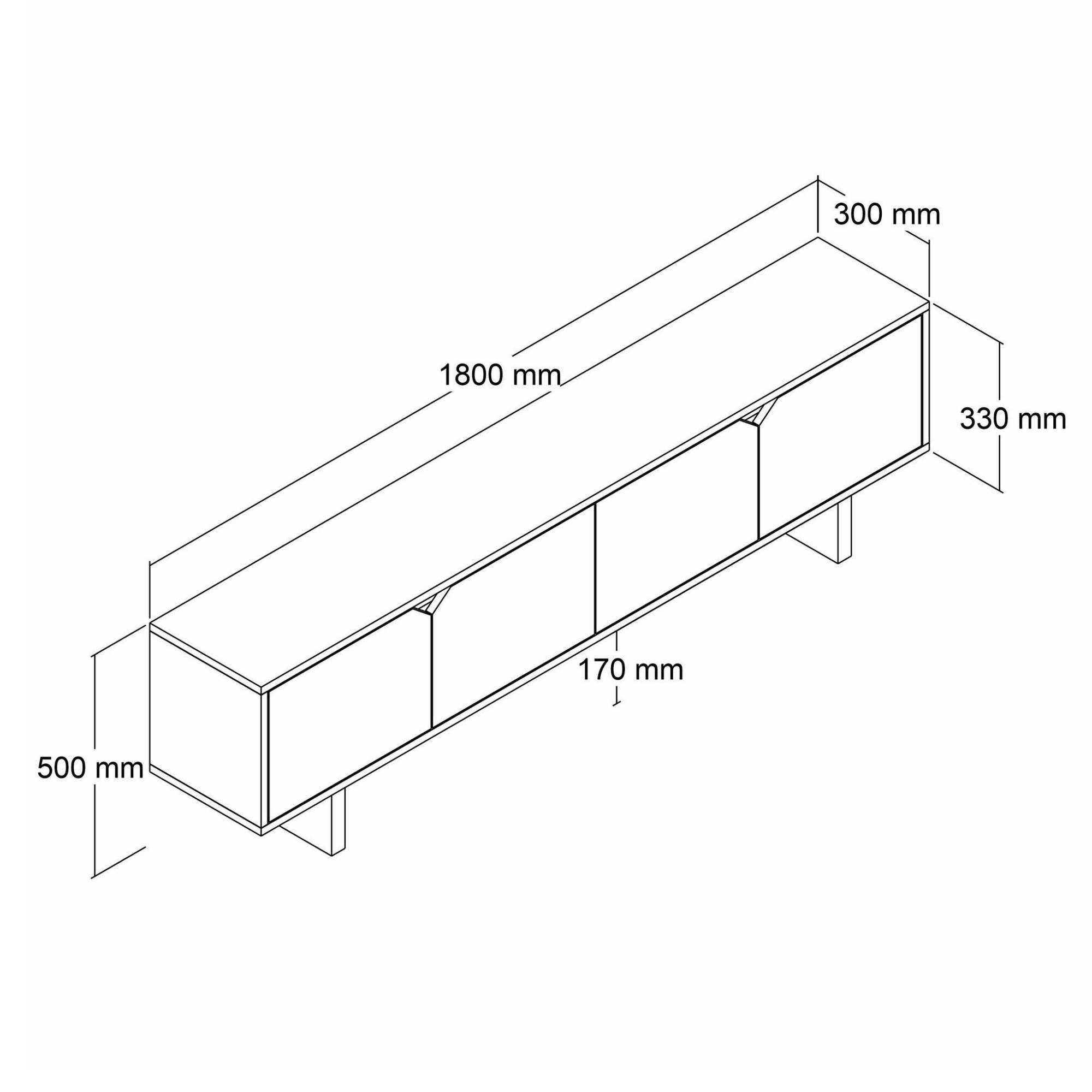 Disponuje 4 otočnými dvířky, která odkrývají 2 oddělené úložné prostory. Ty vytvářejí dostatek místa pro odložení všeho, co potřebujete mít po ruce. Vrchní deska o šířce 180 cm nabízí prostor pro televizi, elektroniku či dekorace. Provedení bez úchytek podtrhuje čistý vzhled komody, zatímco praktické otvory se postarají o snadné otevření i stylový vzhled.
