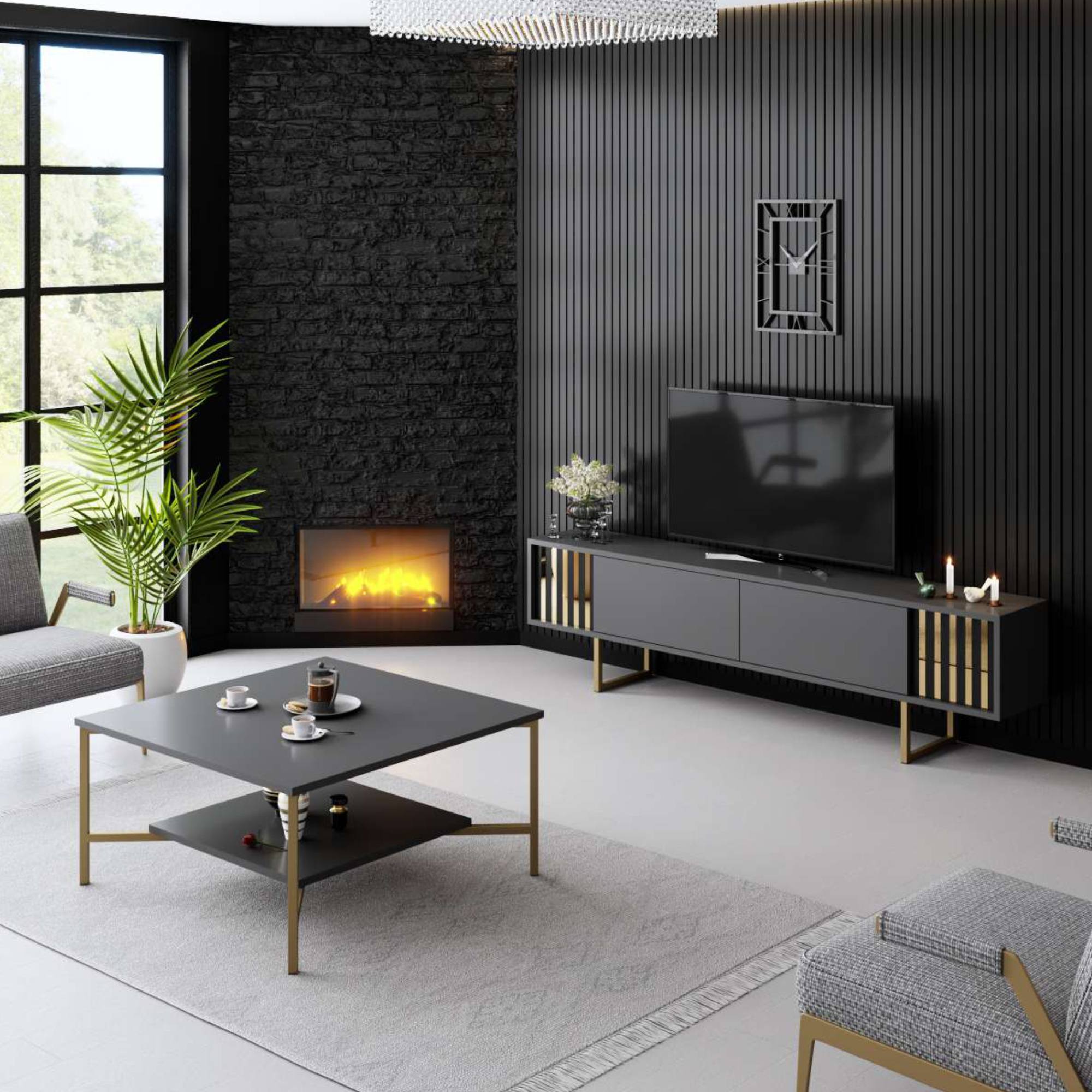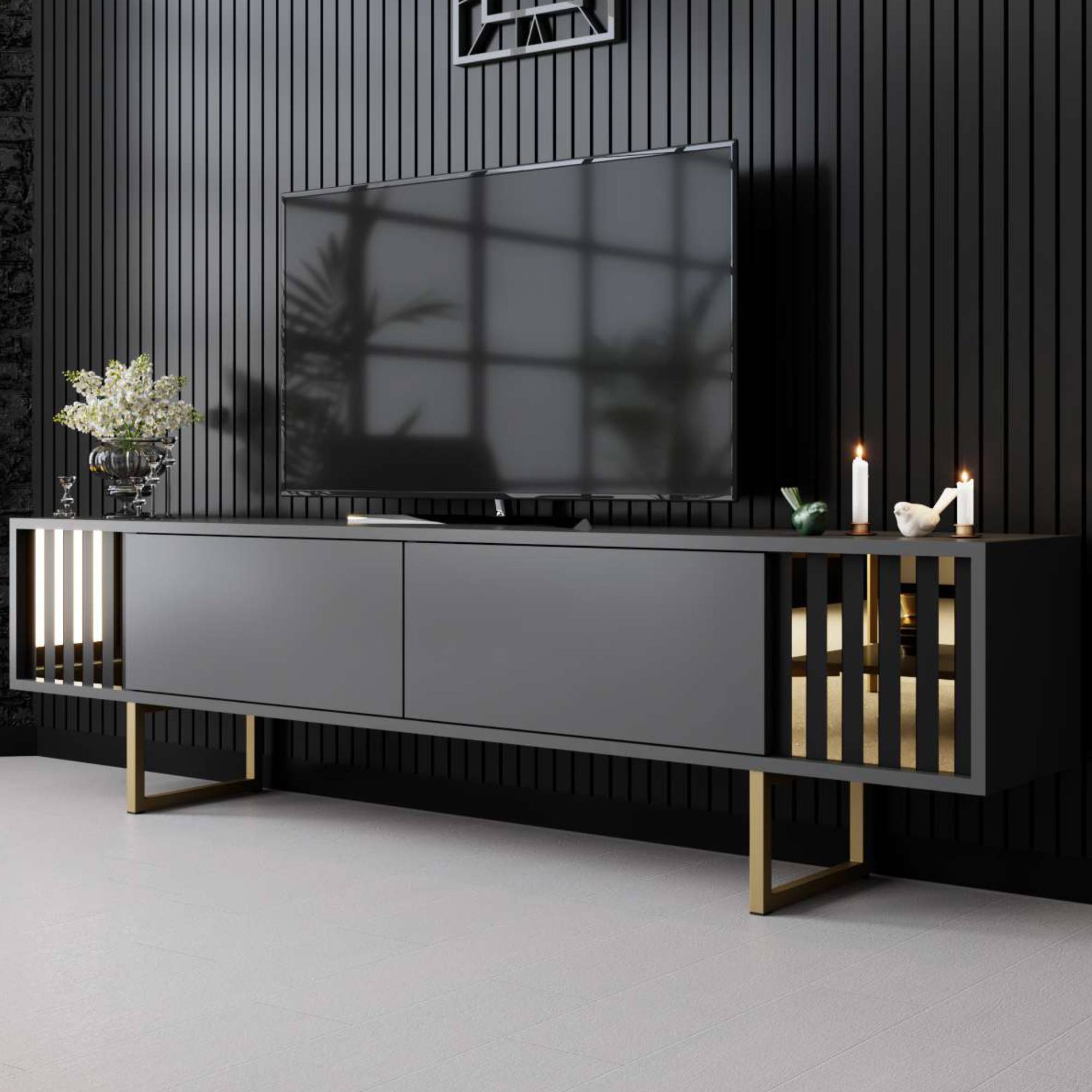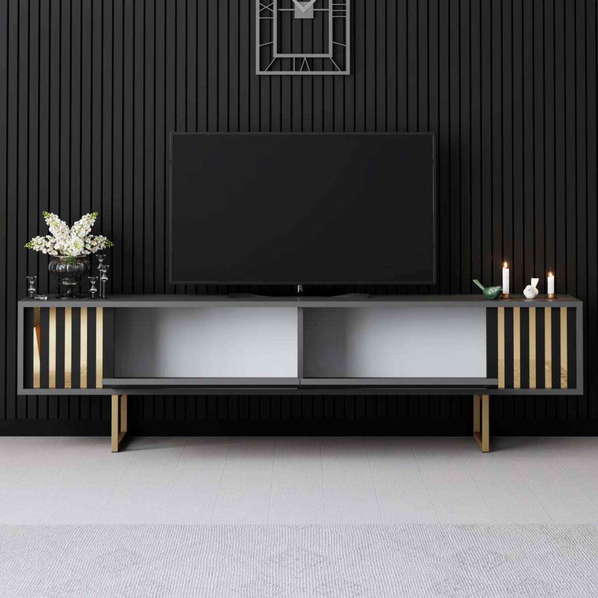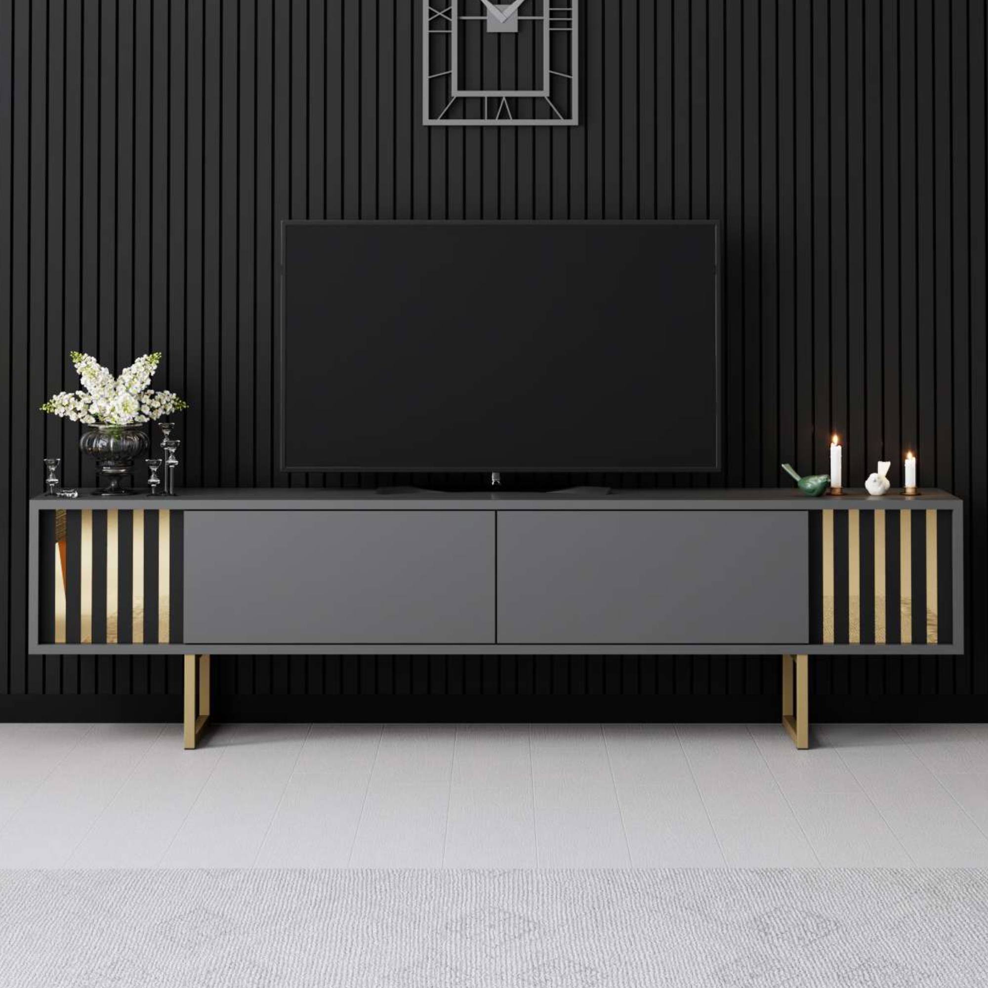 TV komoda GOLD LINE 2 - antracitová/zlatá