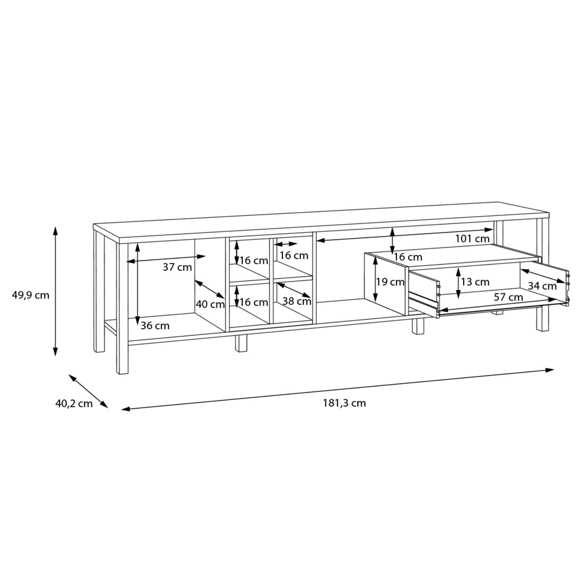 Naleznete zde místo pro vaše TV příslušenství, dekorace, ale i fotografie. Komoda také disponuje uzavíratelným úložným prostorem, který obsahuje jednu zásuvku. Decentní kovová úchytka vám usnadní její manipulaci. ABS hrany navíc zvyšují odolnost celého korpusu, který se vám bude zároveň jednoduše udržovat.