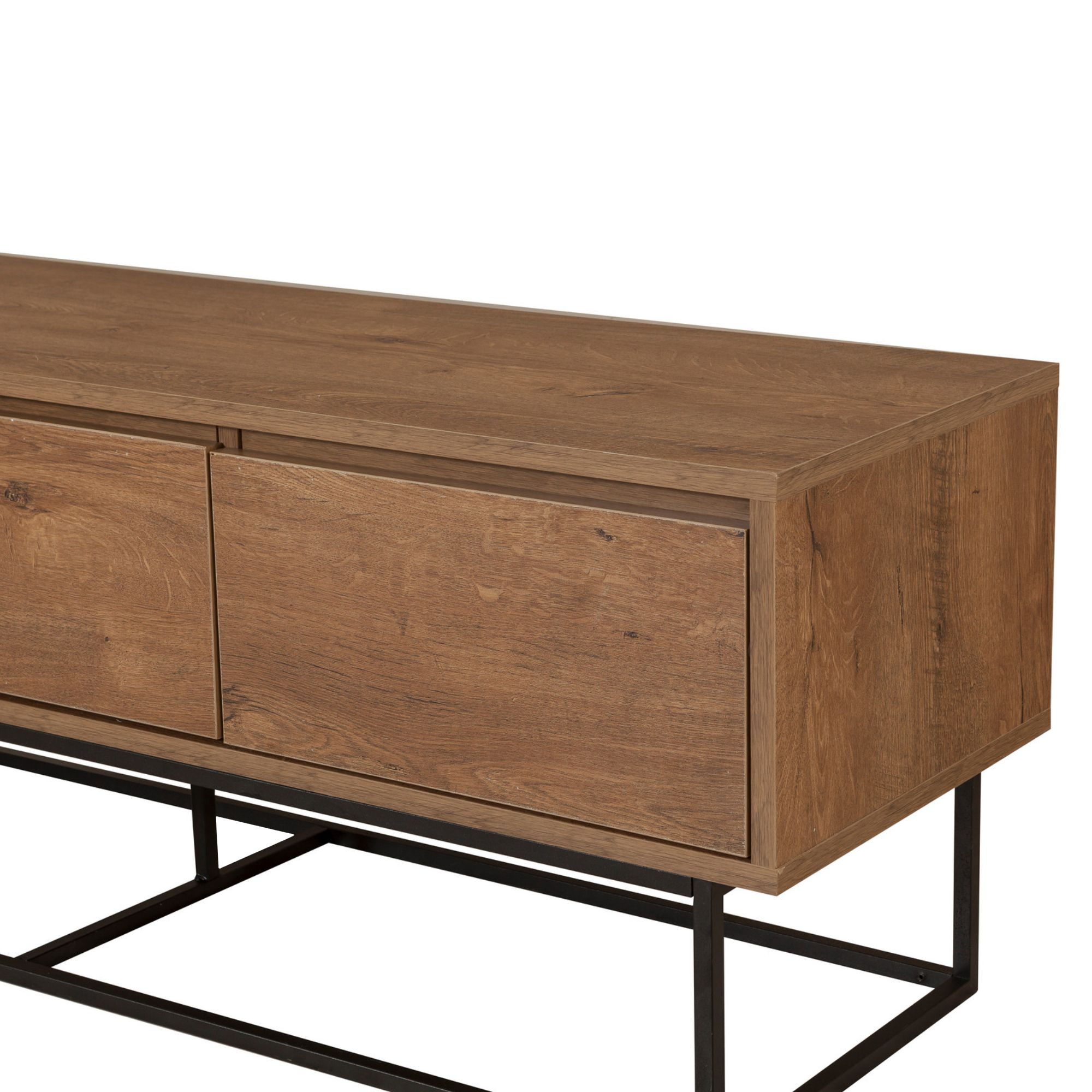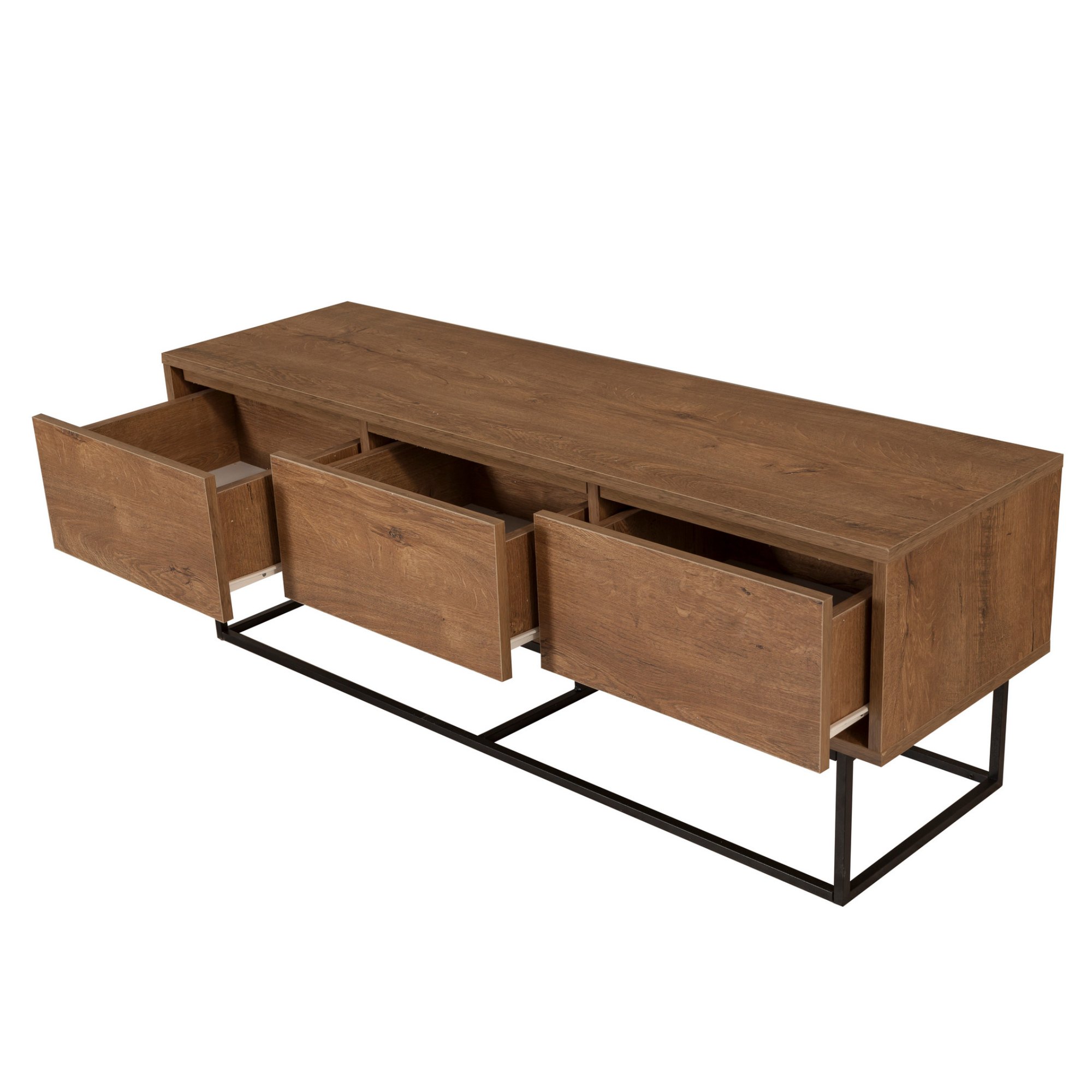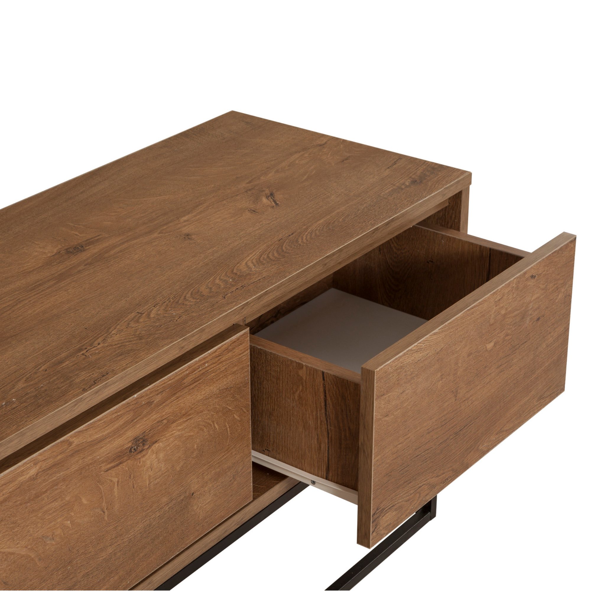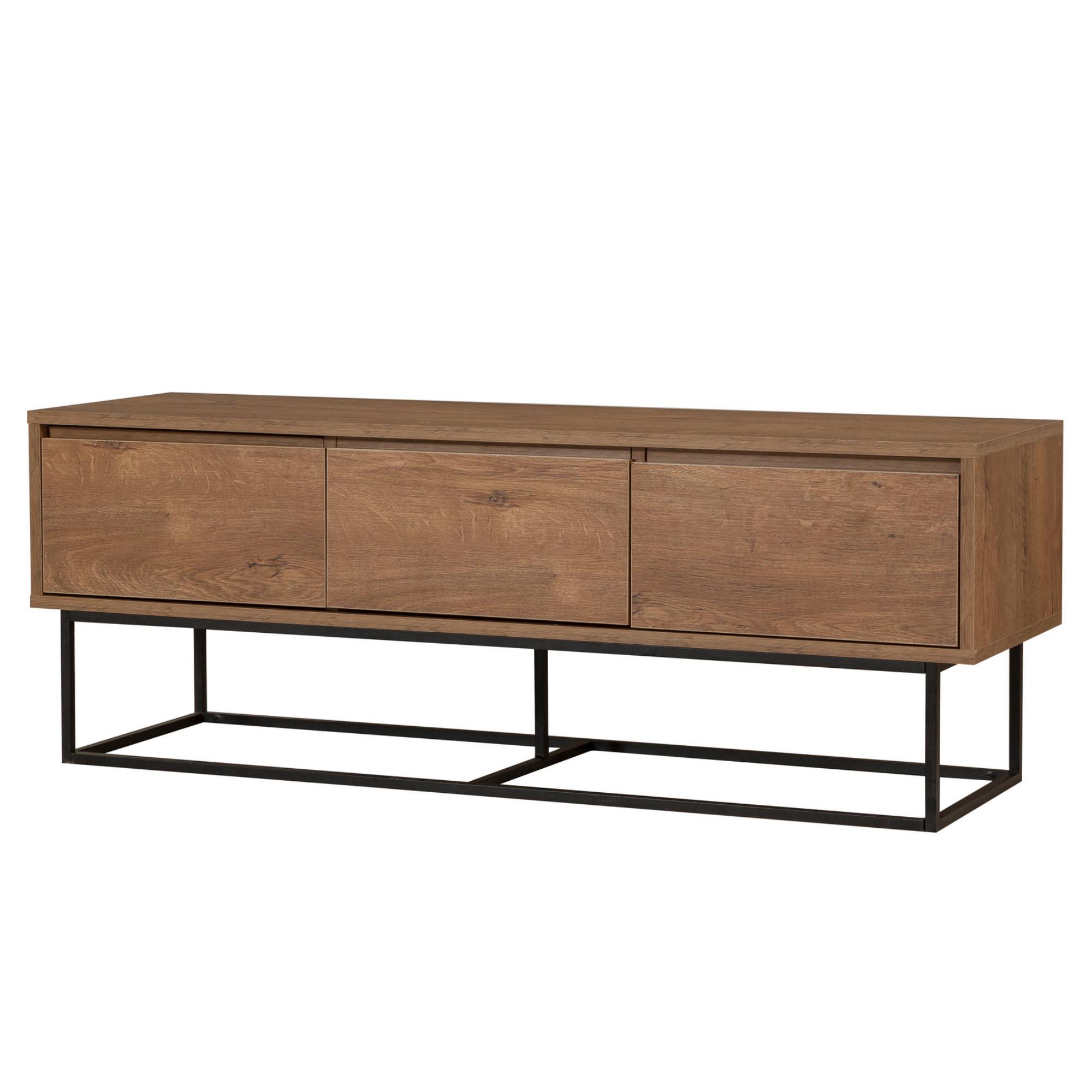 Disponuje 3 zásuvkami, které vytvářejí dostatek prostoru pro odložení všeho, co potřebujete mít po ruce. Vrchní deska o šířce 140 cm nabízí prostor pro televizi i dekorace. Provedení bez úchytek podtrhuje její čistý vzhled, zatímco kovová konstrukce nohou zajišťuje její stabilitu. Dekor ořechu dodá teplou a útulnou atmosféru do místnosti.