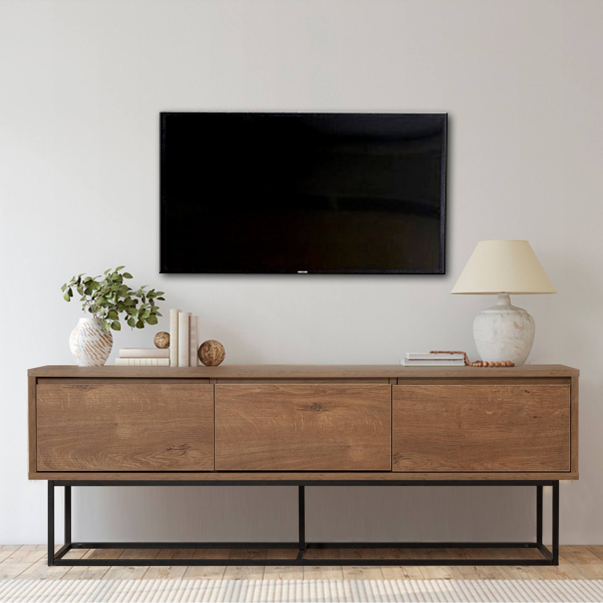 TV komoda MILO díky svému minimalistickému, elegantnímu designu s přírodním nádechem snadno zapadne do moderního i industriálního interiéru.