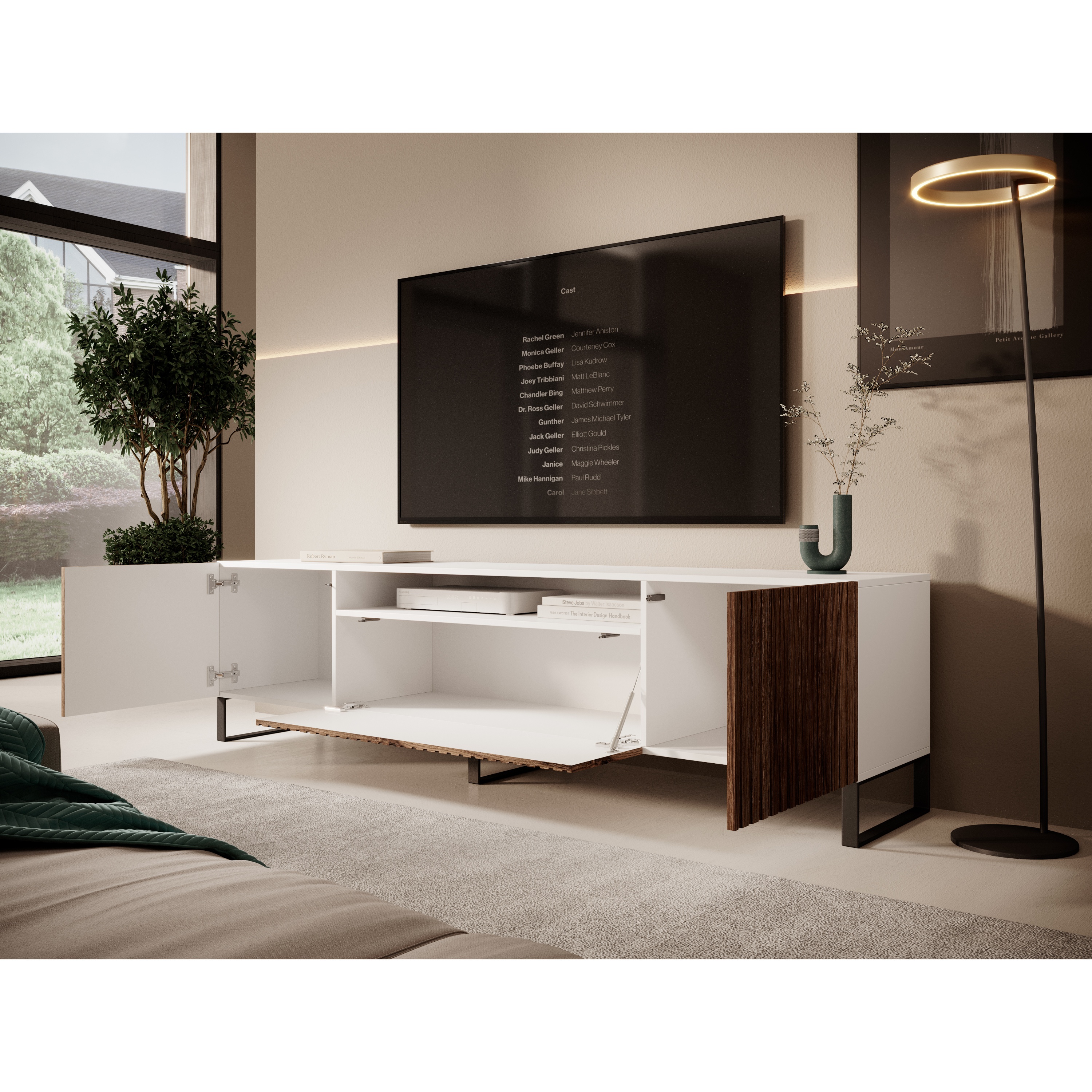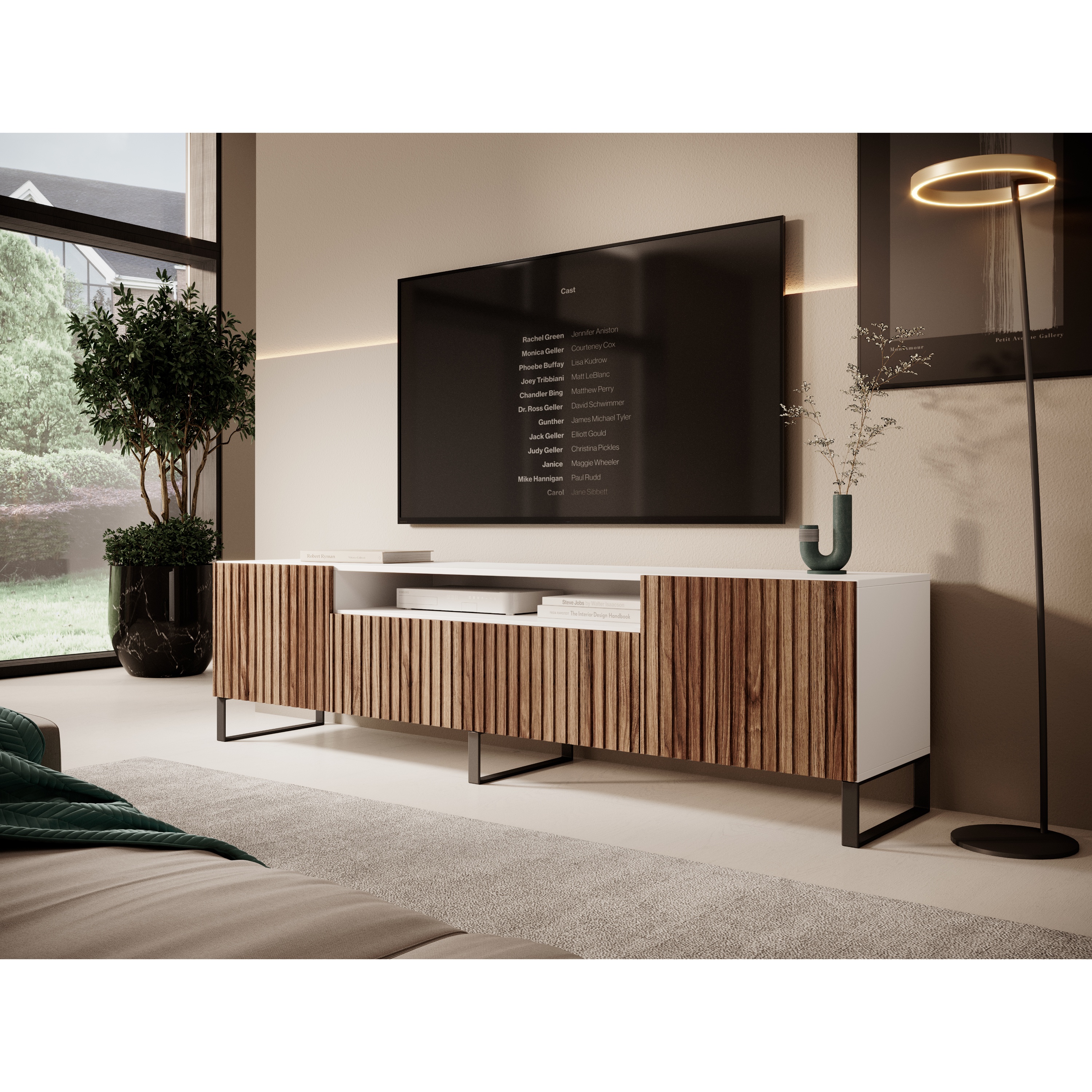 TV komoda MITCH 2 nabízí funkčnost, styl a eleganci, které oživí váš interiér a přinesou do domova jedinečný designový prvek.