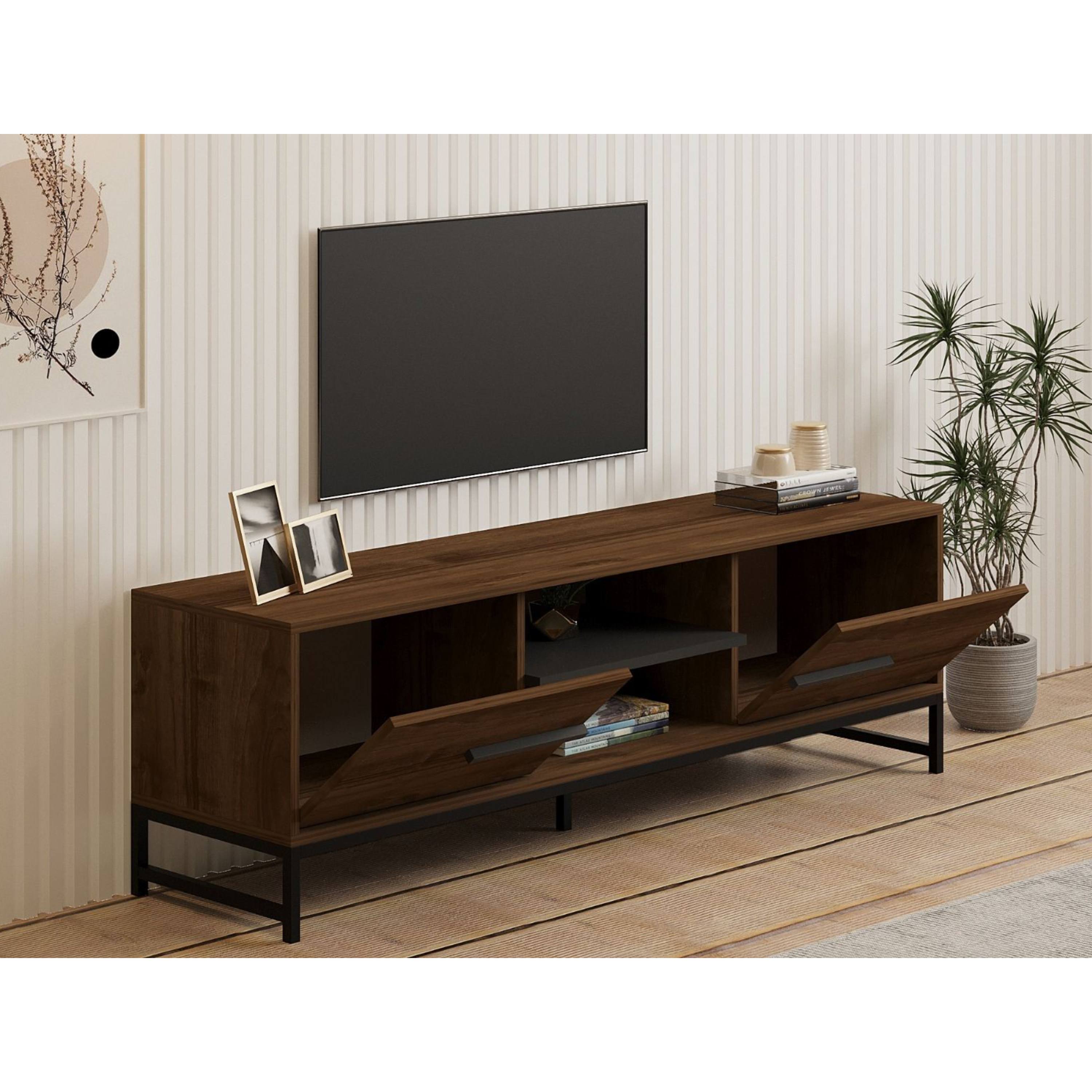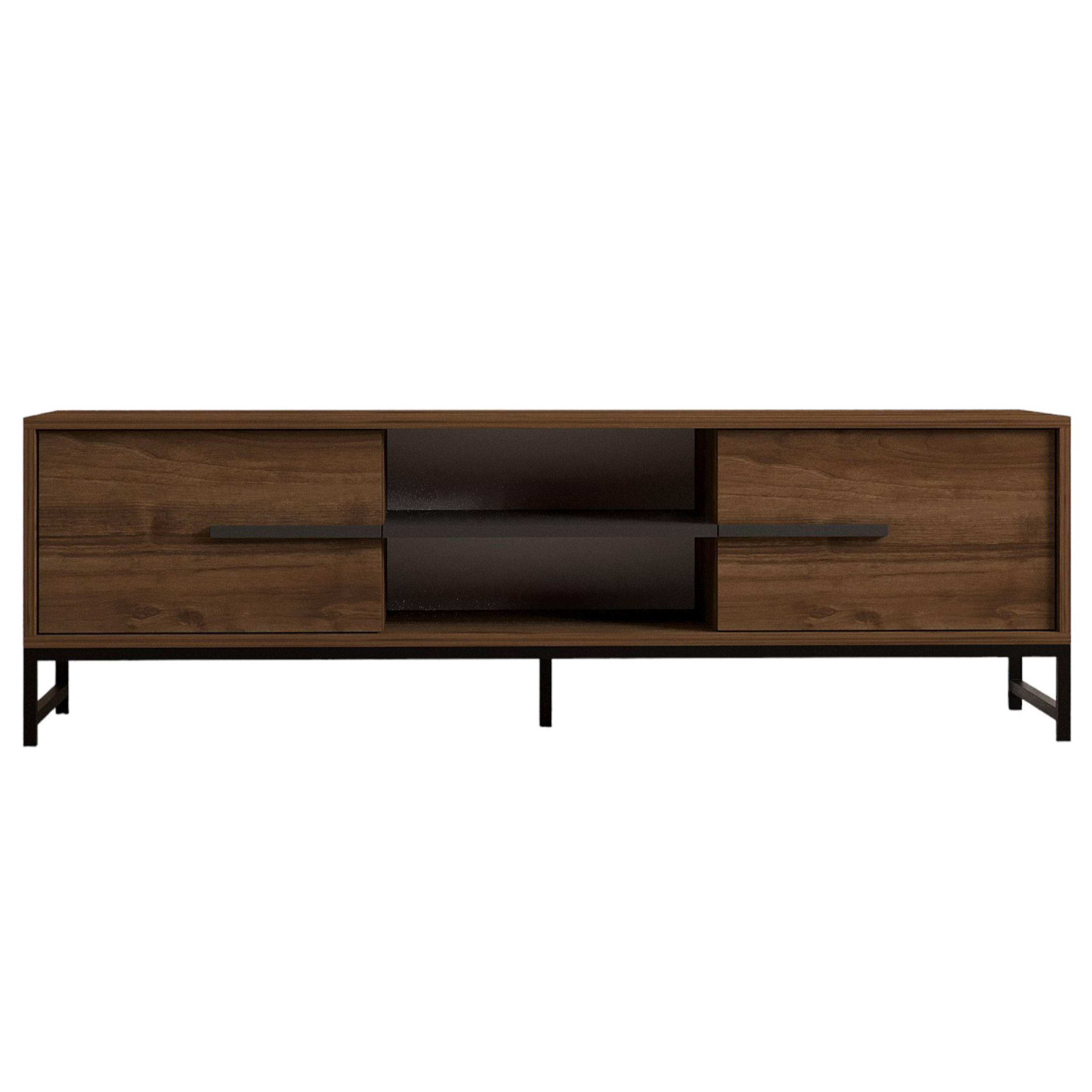 Za výklopnými dvířky komody se nachází dostatek úložného prostoru. Otevřená přihrádka pojme nejen TV příslušenství, ale i další drobnosti, které budete chtít mít neustále po ruce. Stabilitu komody zajišťují pevné kovové nohy.