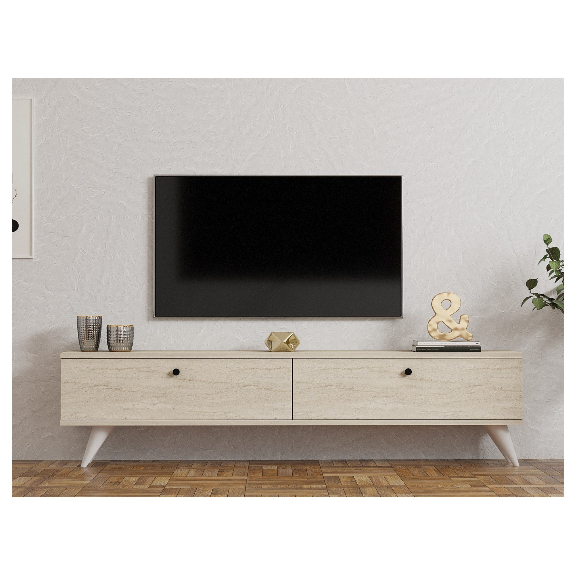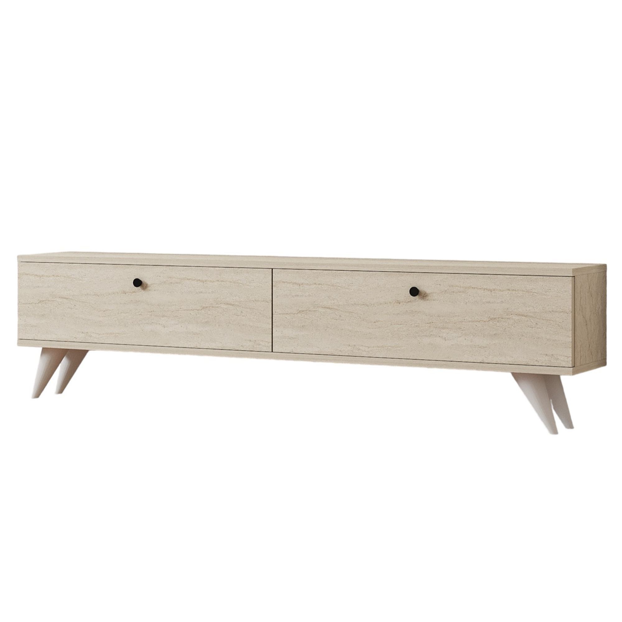 Disponuje 2 výklopnými dvířky, která odkrývají 2 oddělené úložné prostory. Ty vytvářejí dostatek místa pro odložení všeho, co potřebujete mít po ruce. Vrchní deska o šířce 160 cm nabízí prostor pro televizi, elektroniku, ovladače i dekorace. Dvířka jsou doplněna jemnými úchytkami pro pohodlnou manipulaci. Stylovou tečkou jsou 4 kónické nohy.