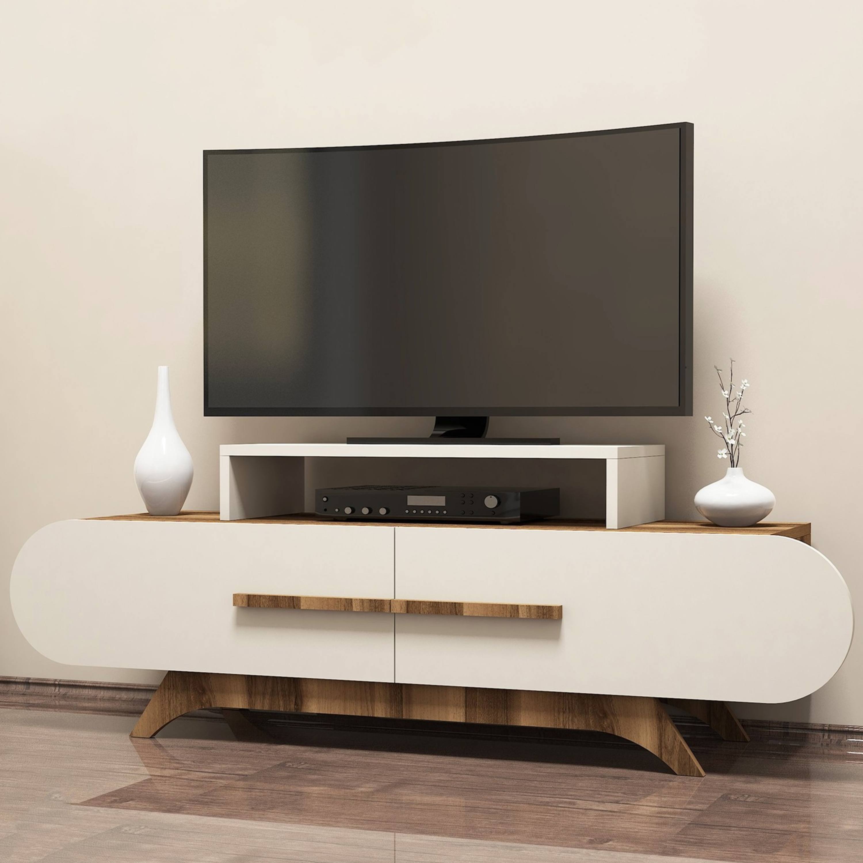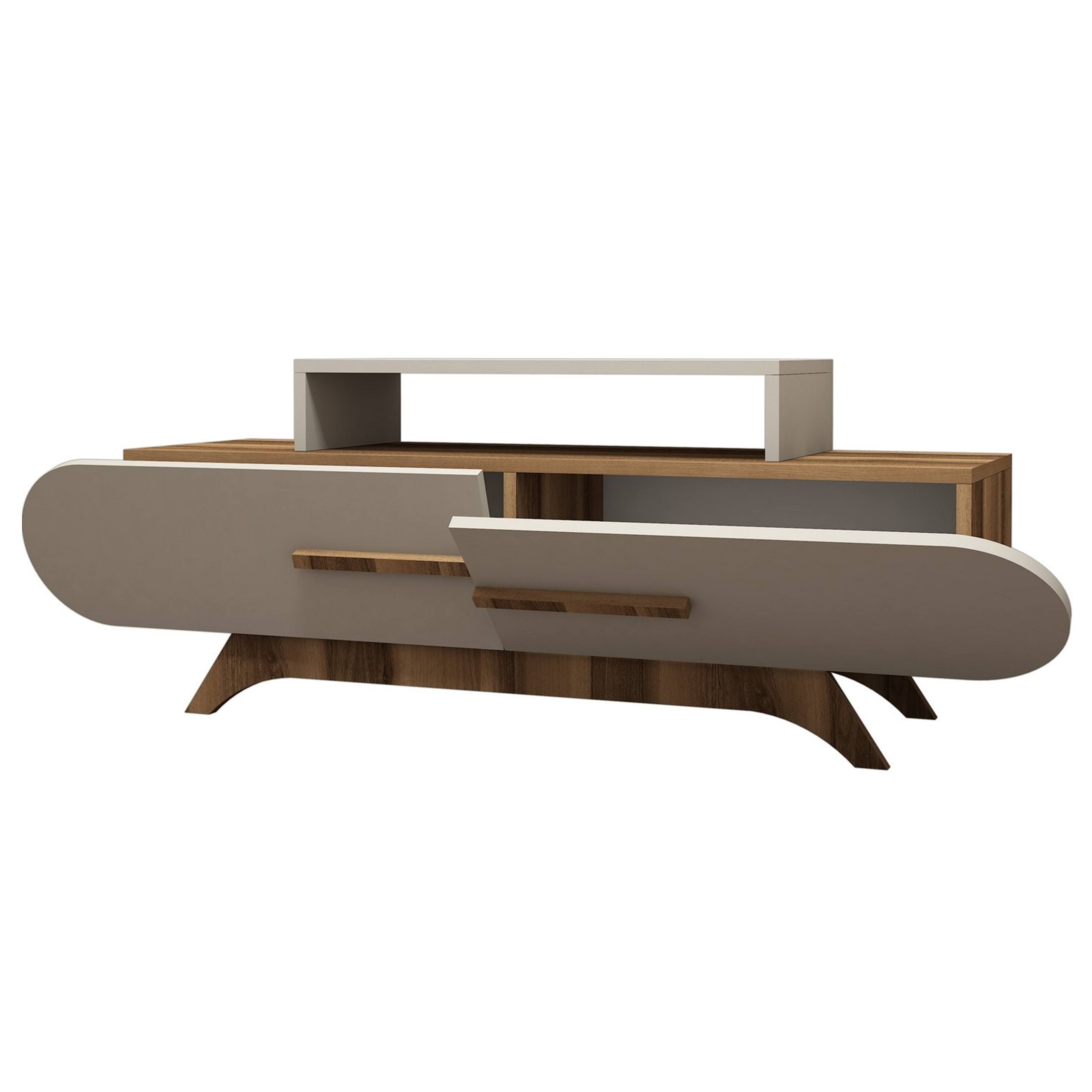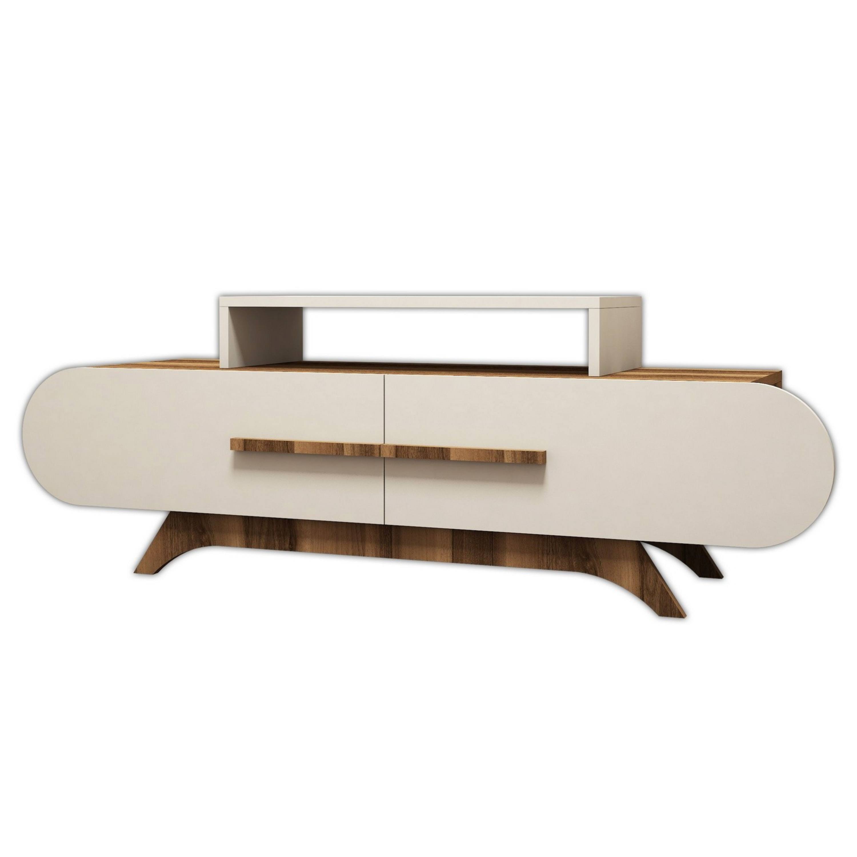 TV komoda ROSE 1 je vyvedena v moderním designu s oblými liniemi a kontrastním dekorem ořechu, který dodává celku hřejivý a stylový vzhled. Díky svému originálnímu zpracování se snadno stane dominantou obývacího pokoje a zároveň praktickým úložným prostorem.