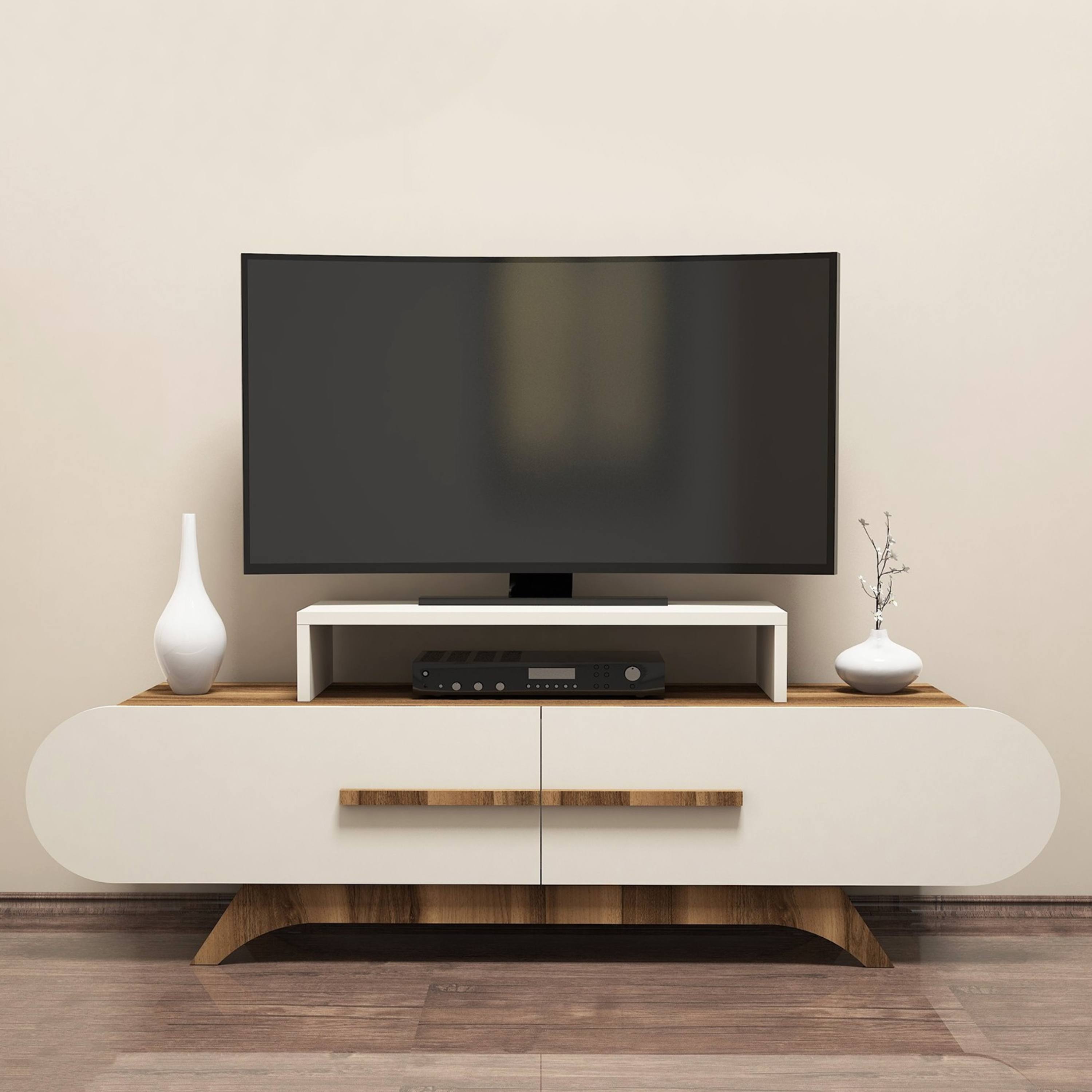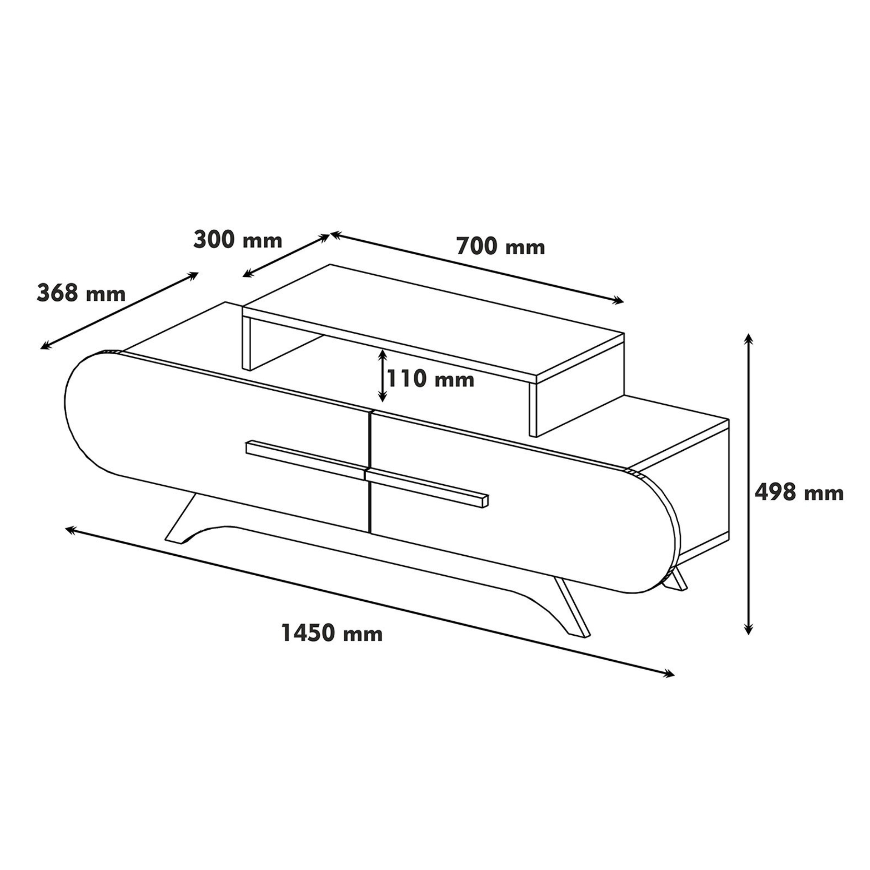 Komoda nabízí úložný prostor krytý 2 výklopnými dveřmi, kam pohodlně uložíte příslušenství, kabely i další předměty, které chcete mít při ruce, ale ne přímo na očích. Horní otevřený odkládací prostor je ideální pro umístění elektroniky a dalších předmětů, které chcete mít snadno přístupné. TV komoda je vyrobena z laminované dřevotřísky s povrchem nenáročným na údržbu.