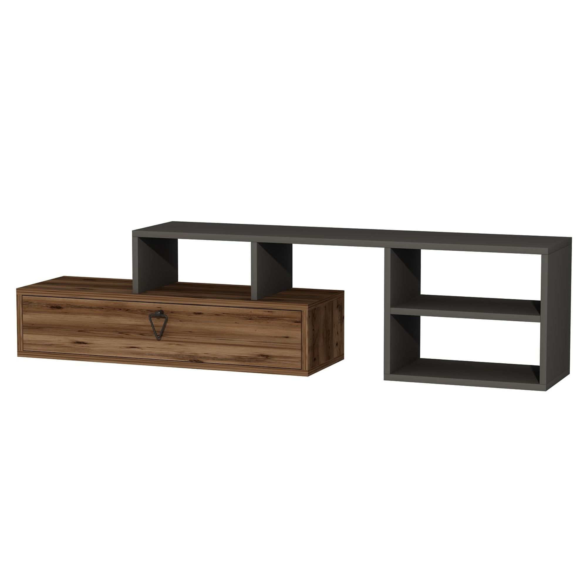 Je vyroben z laminované dřevotřískové desky, která se vyznačuje snadnou údržbou. Dekor ořechu s antracitovou barvou vytvářejí elegantní kombinaci vhodnou pro řadu interiérů.