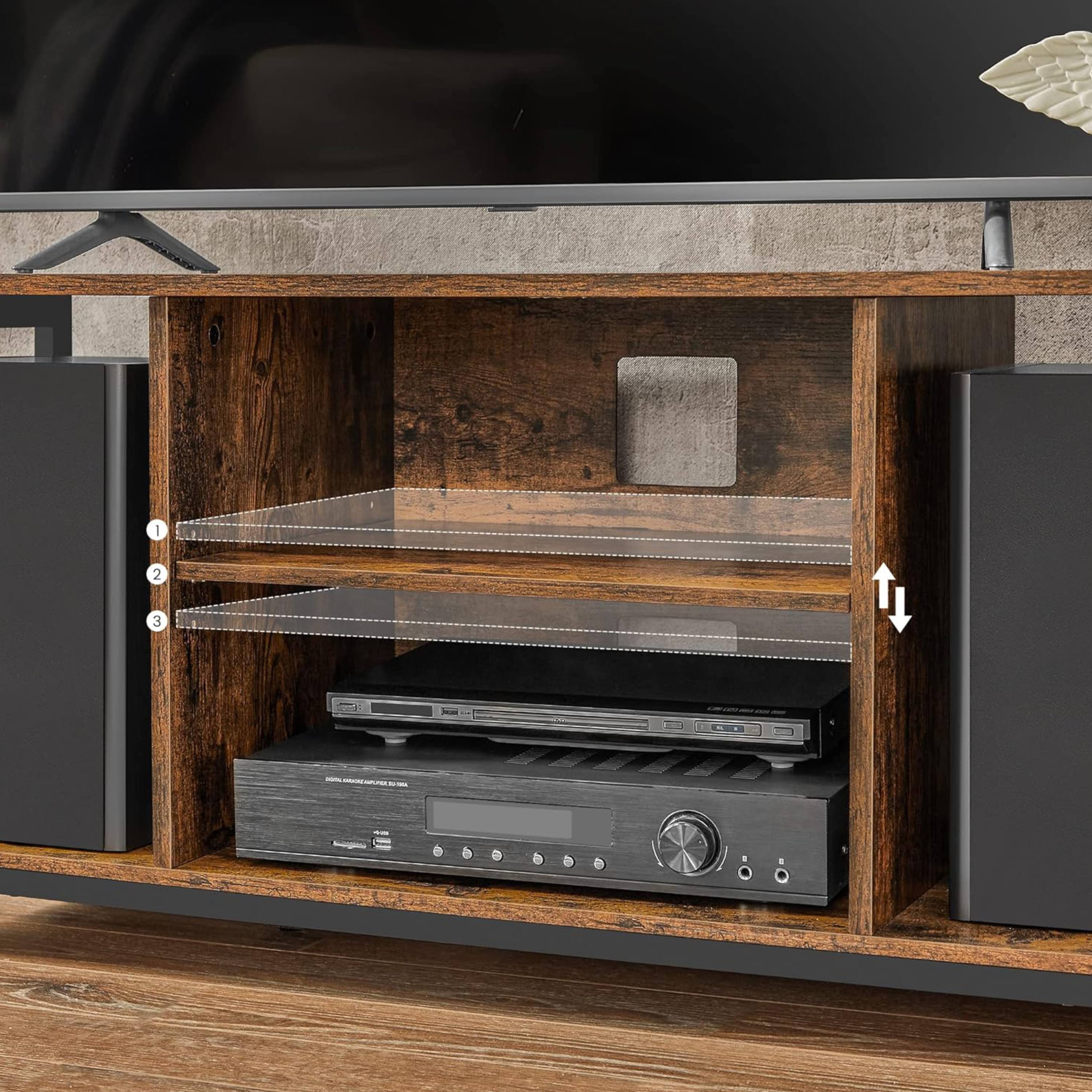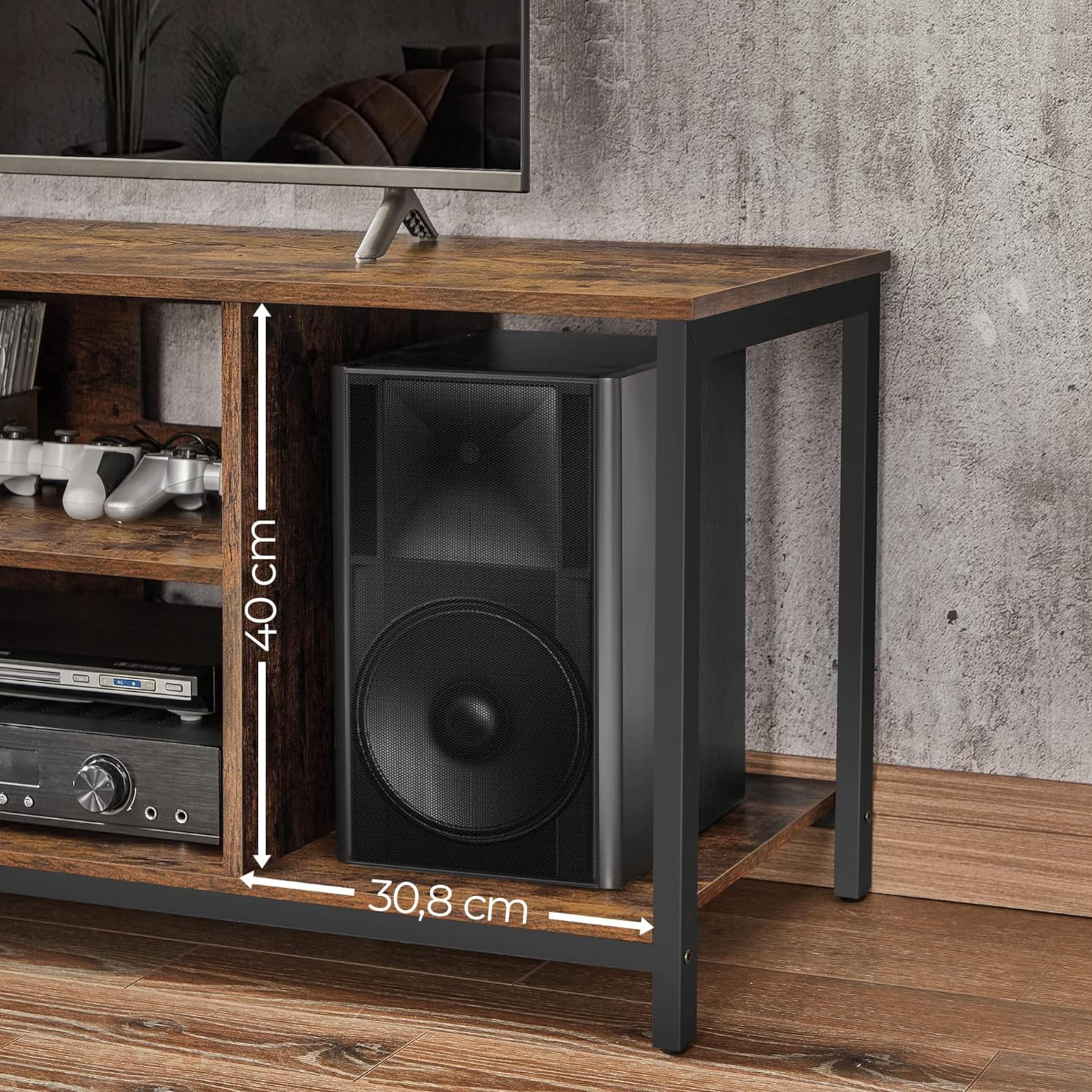 Stolek poskytuje dostatek místa na uložení všeho potřebného. Disponuje otevřeným úložným prostorem s 1 policí a 2 otvory pro kabeláž. Police je ideální pro umístění set top boxu, DVD přehrávače či jiné elektroniky. Díky otevřenému designu budete mít nad vším přehled a zároveň působí vzdušněji. Je tedy skvělou volbou do menších místností.