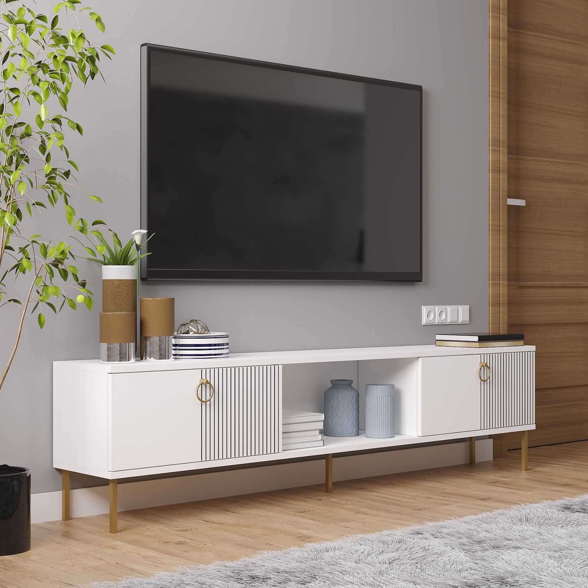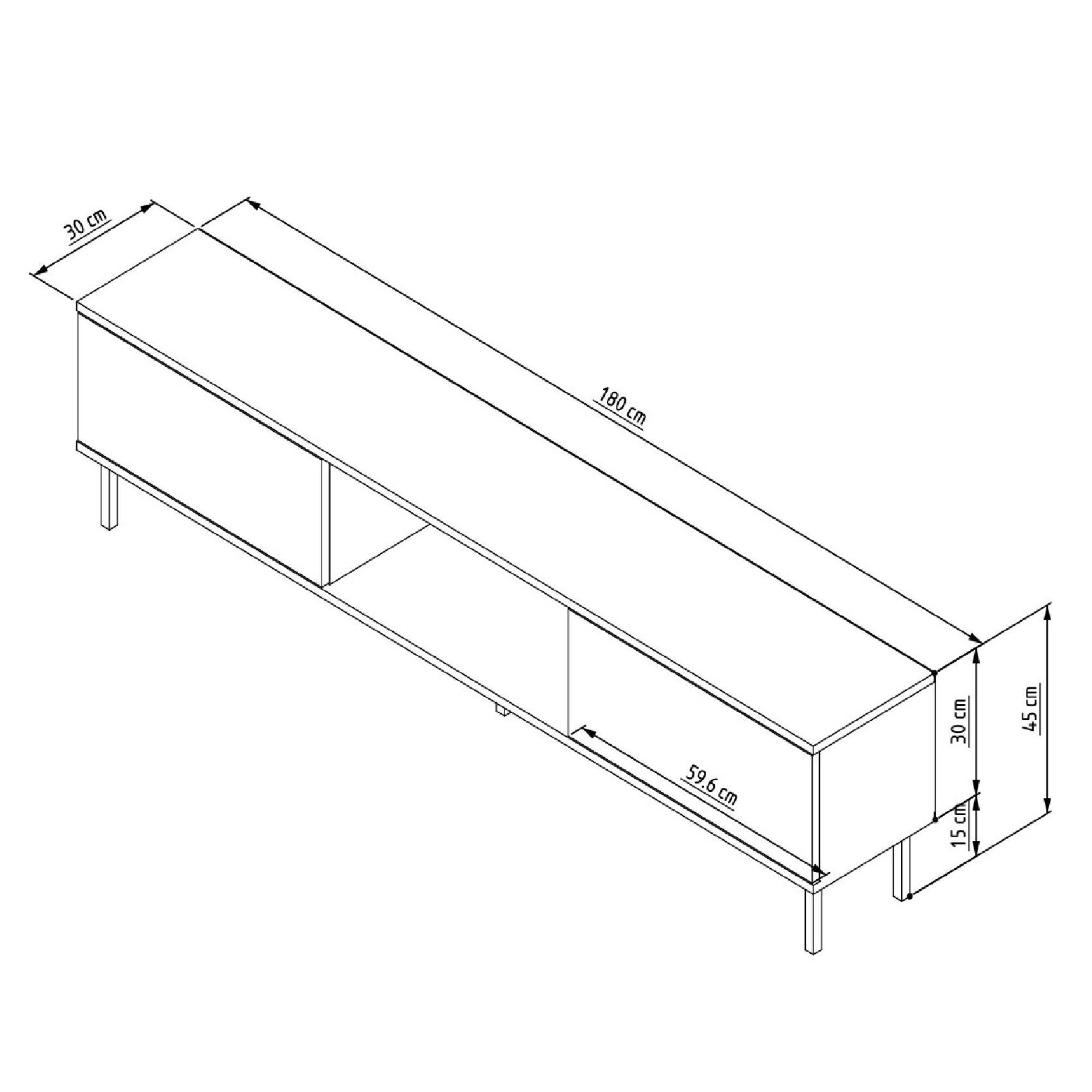 TV stolek nabízí dostatek úložného prostoru nejen pro TV příslušenství. Jeho dvířka jsou pro lepší manipulaci vybavena praktickými úchyty. TV stolek má vysoké nohy, což usnadňuje úklid pod ním.