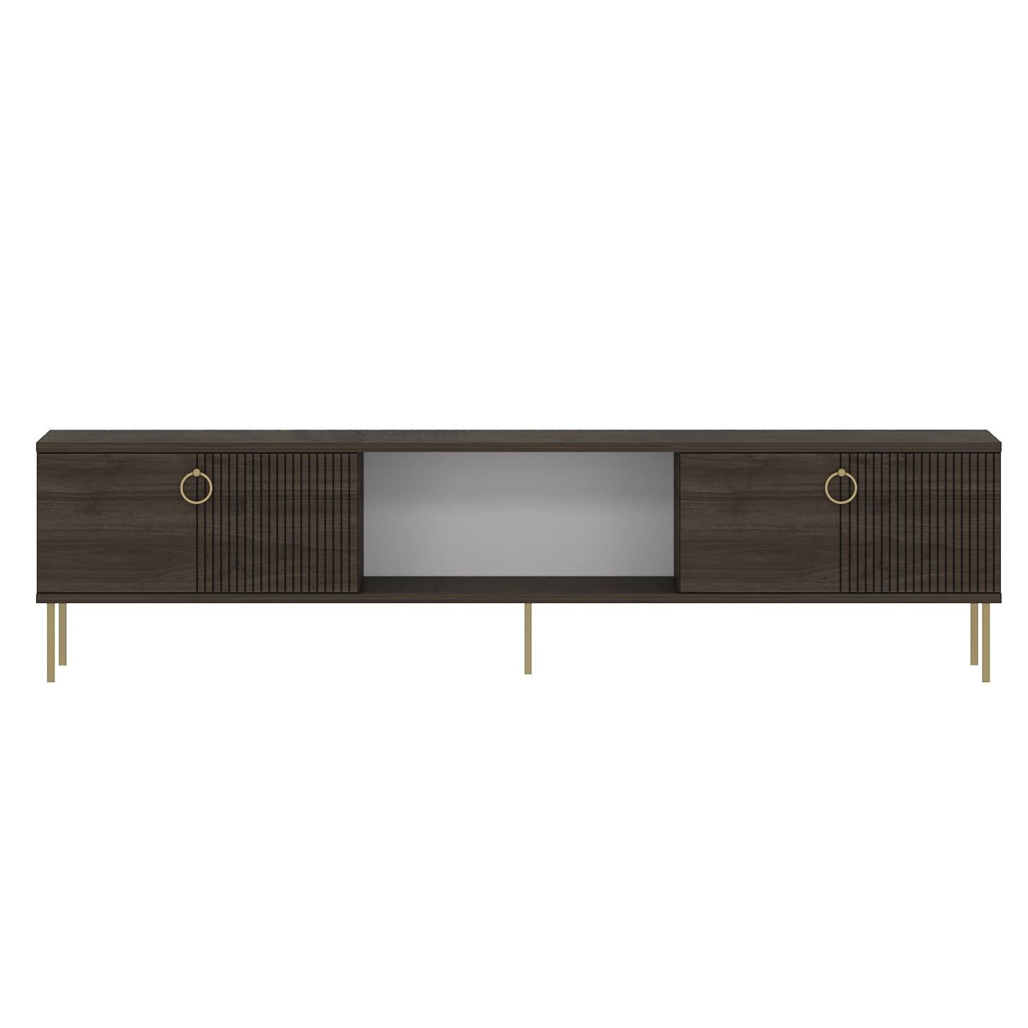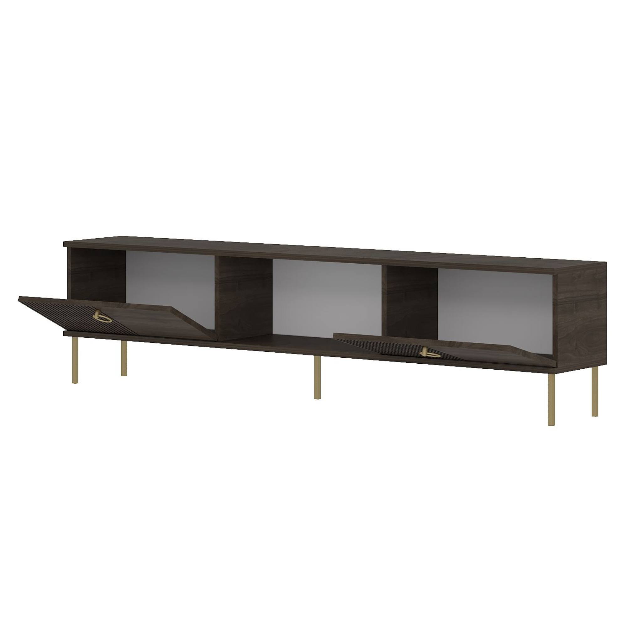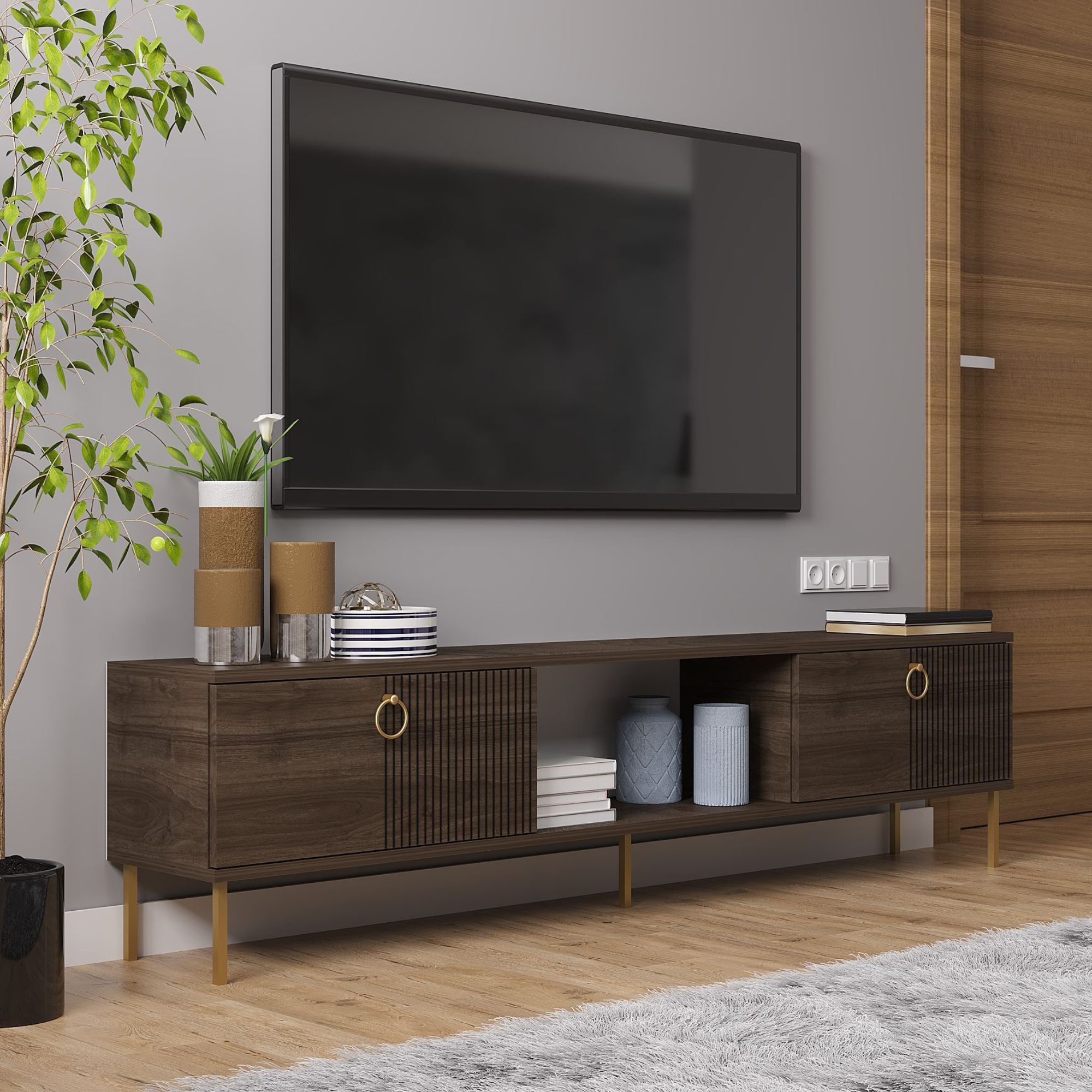 TV stolek nabízí dostatek úložného prostoru nejen pro TV příslušenství. Jeho dvířka jsou pro lepší manipulaci vybavena praktickými úchyty. TV stolek má vysoké nohy, což usnadňuje úklid pod ním.