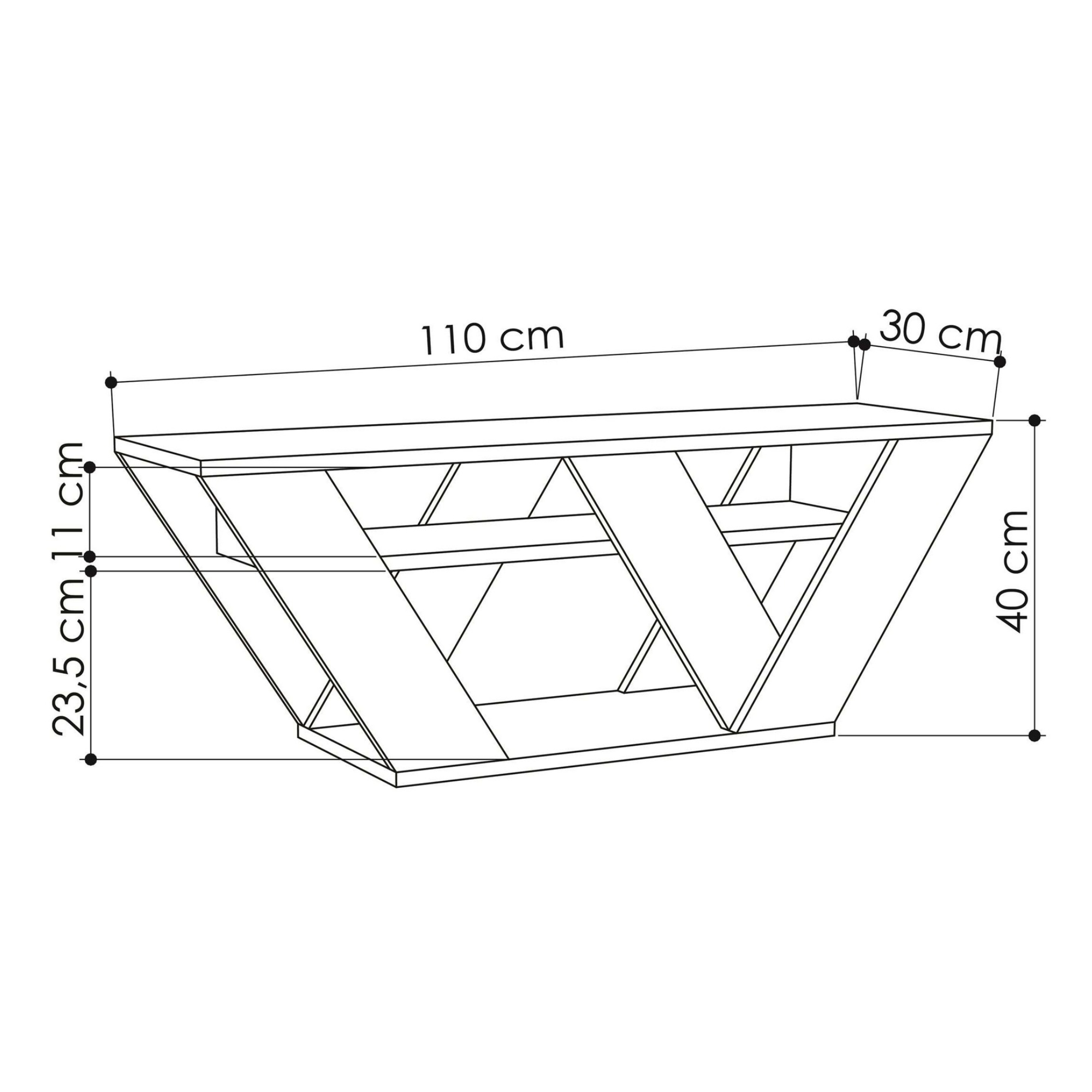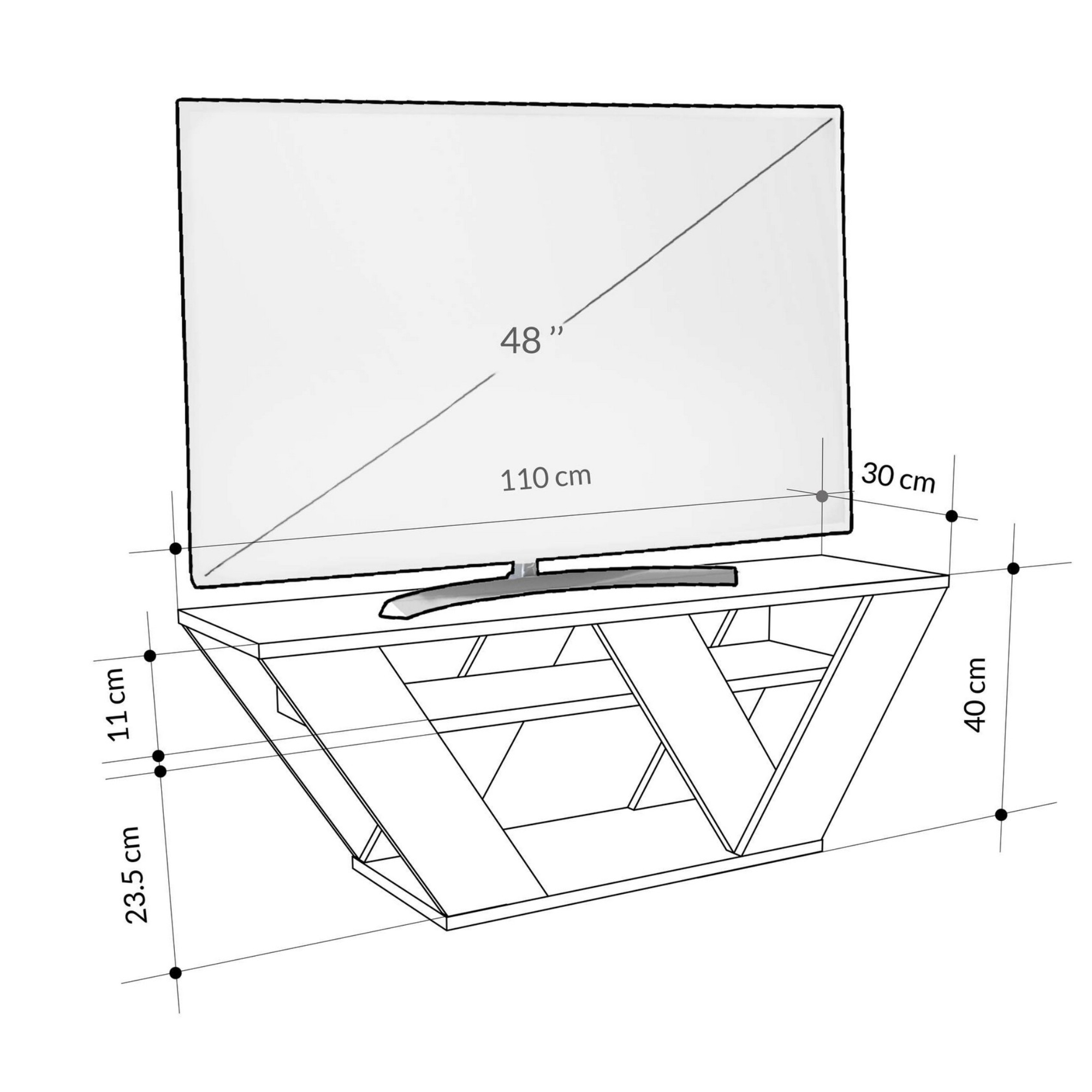 Horní deska stolku o šířce 110 cm mimo samotné televize pojme i různé dekorace. 1 vloženou polici zas můžete využít přímo pro TV příslušenství. Prostor pod policí nabídne místo pro další předměty, které si přejete vystavit.