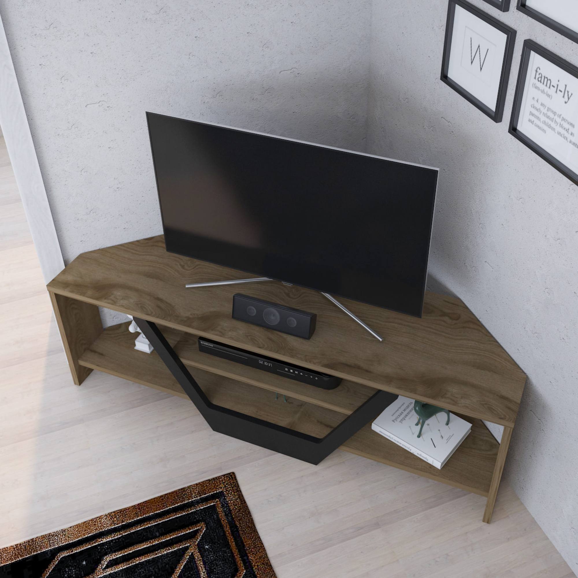 Stolek poskytuje dostatek místa na uložení všeho potřebného. Je vybaven otevřeným úložným prostorem s 1 policí. Ta je ideální pro umístění set top boxu, DVD přehrávače či jiné elektroniky. Zbytek stolku lze využít pro odložení ovladačů, knih či vystavení dekorací. Jeho rohové provedení je ideální do menších místností, kde ušetří spoustu místa.