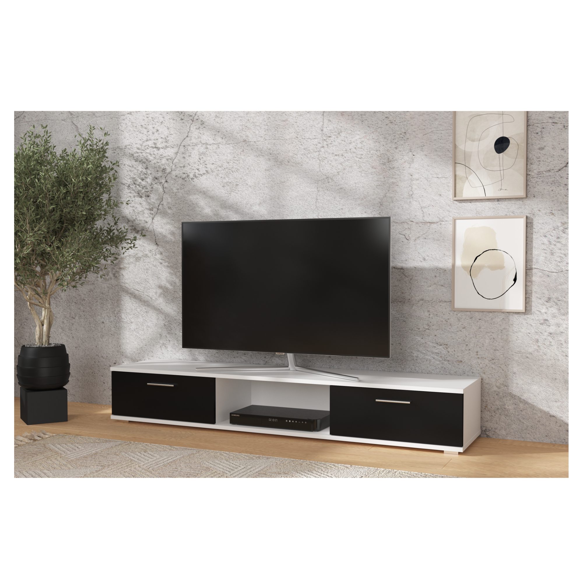 TV stolek SELLA - bílá matná/černá matná