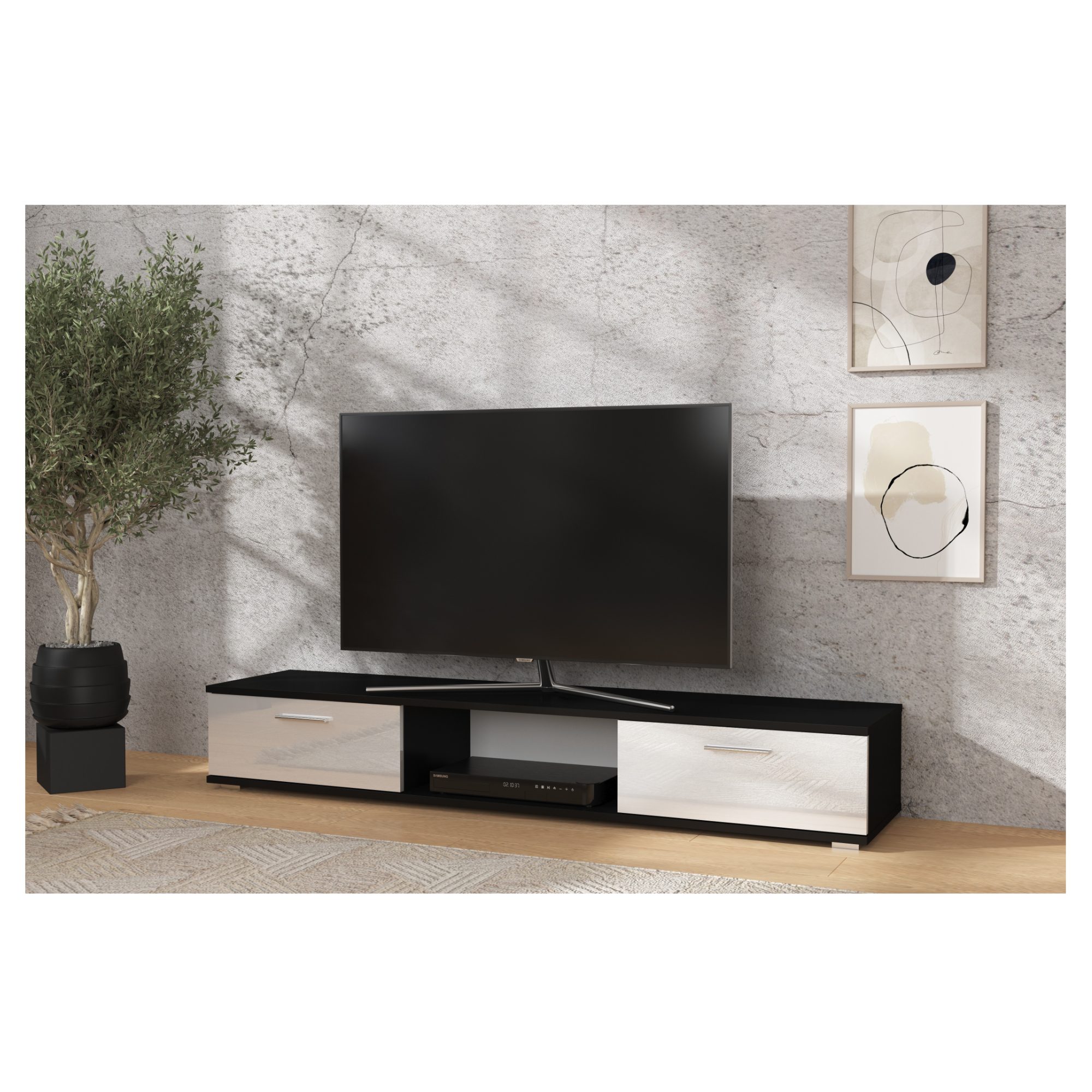 TV stolek SELLA - černá matná/bílá lesklá