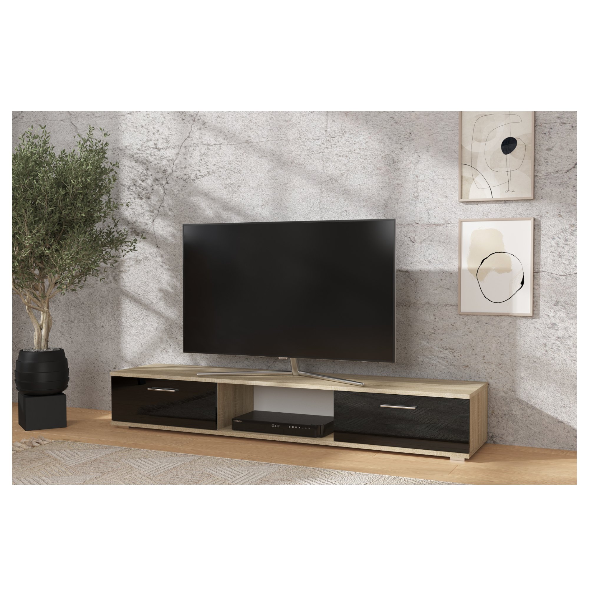 TV stolek SELLA - dub sonoma/černá lesklá