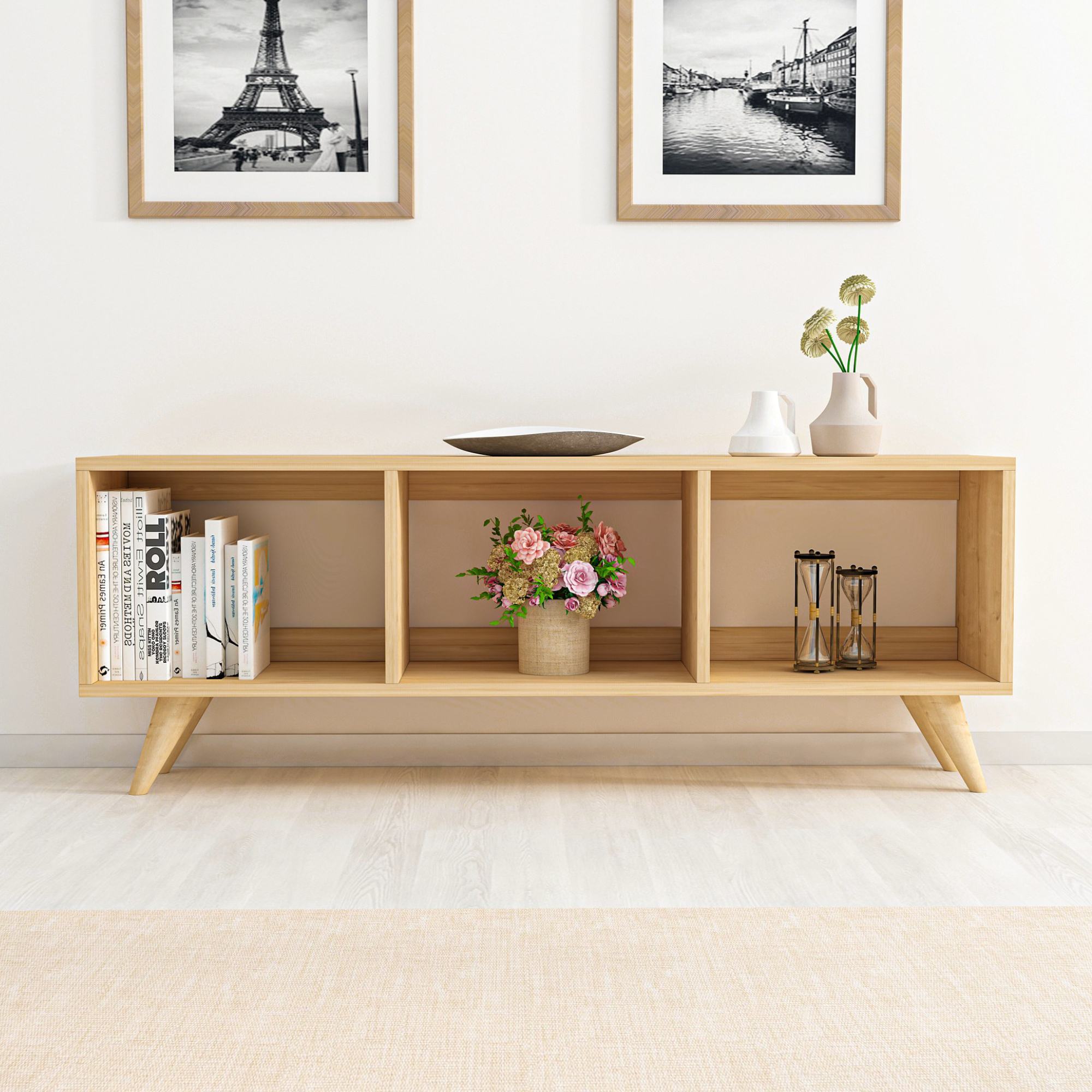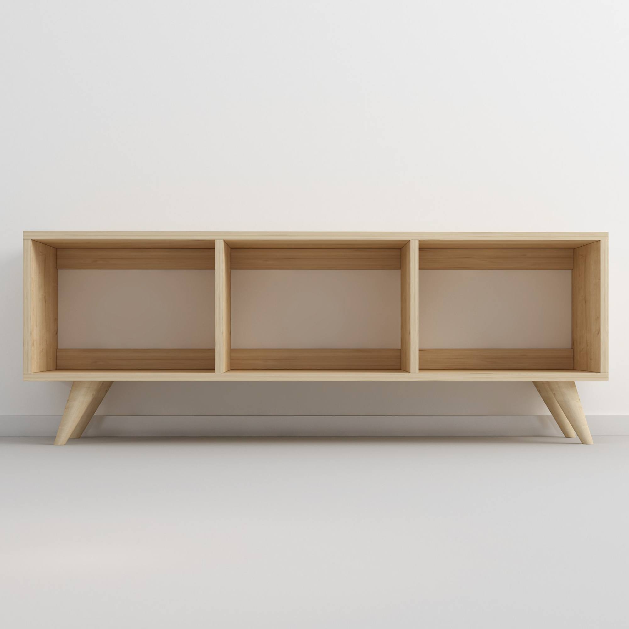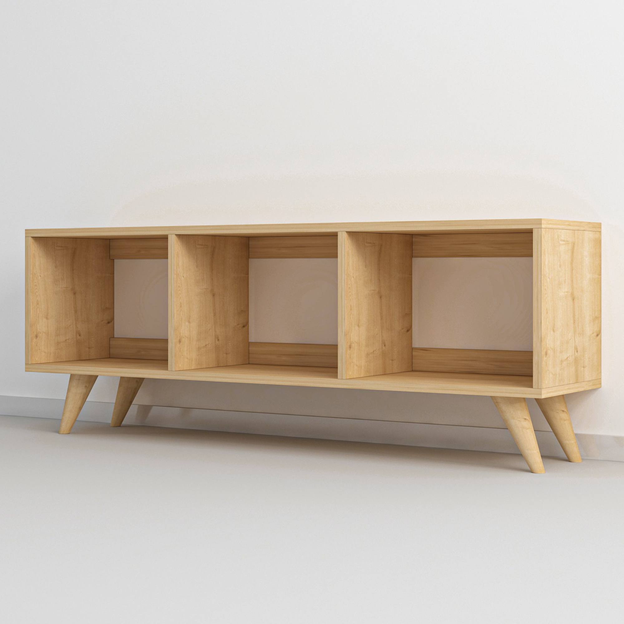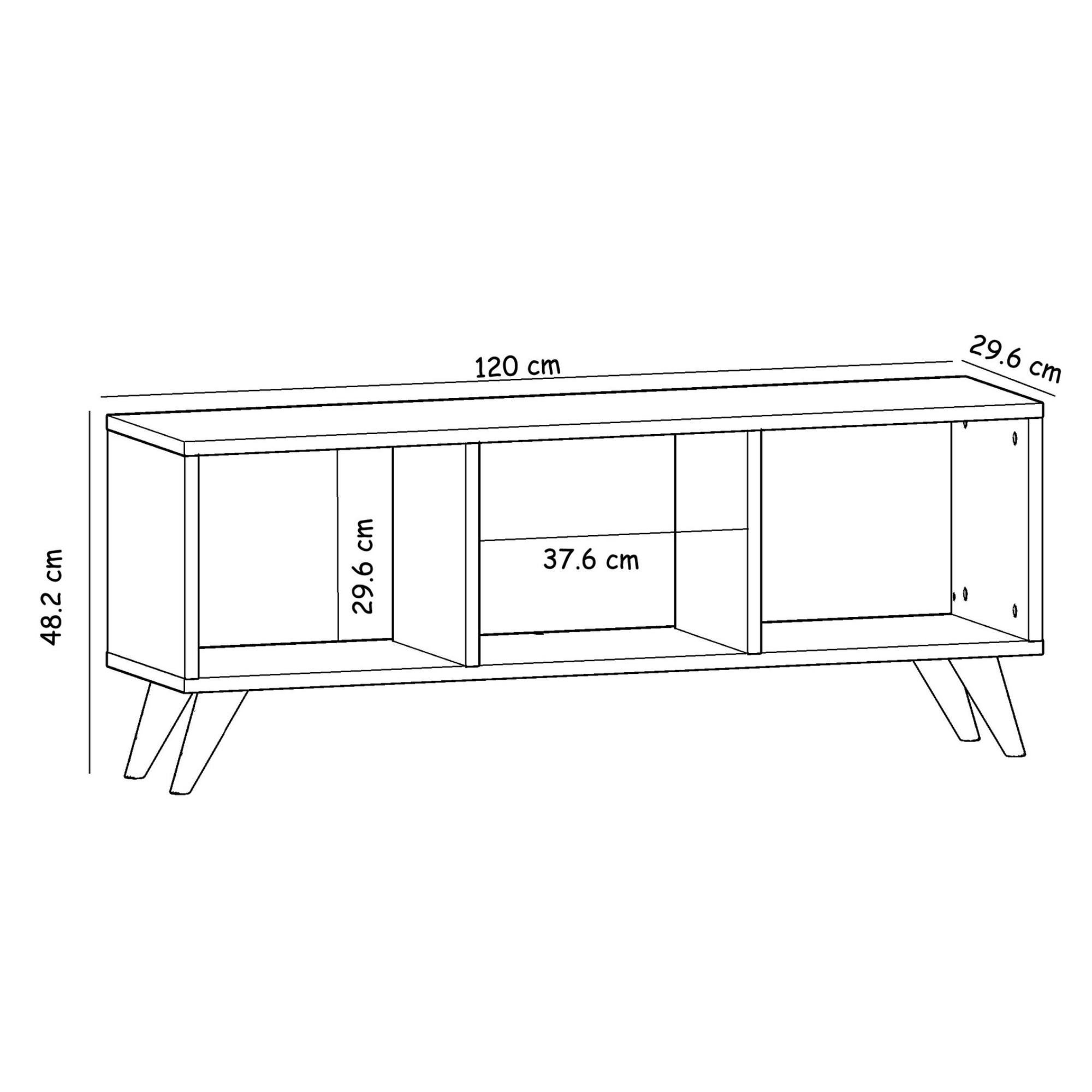 Stolek poskytuje dostatek místa na uložení všeho potřebného. Má 3 oddělené úložné prostory v otevřeném provedení, takže budete mít nad vším přehled. Otevřený design působí vzdušněji. Je tedy skvělou volbou do menších místností. Stylovou tečkou jsou kónické nohy, které oživují jinak jednoduchý design.