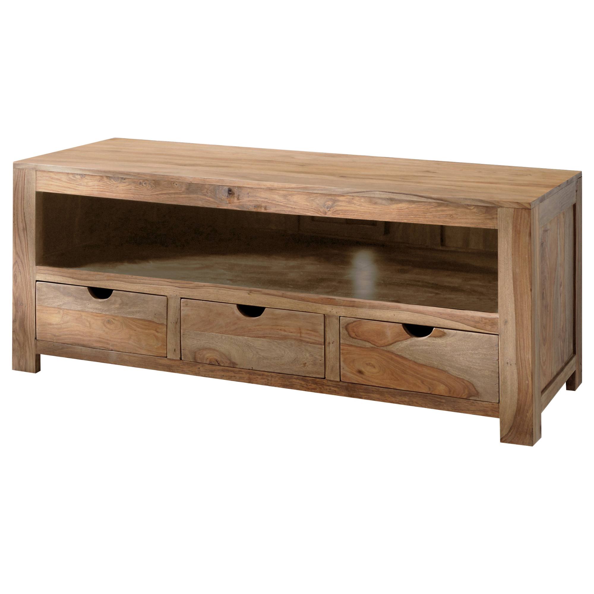 TV stolek YOGA svými zemitými tóny a krásnou přirozenou kresbou exotického dřeva zútulní váš interiér. Dostatek úložného prostoru pro audiovizuální přehrávače, herní konzole a další příslušenství k televizi zajišťují tři zásuvky a jedna otevřená police. Jednoduchý design bez zdobných prvků vsází na přírodní strukturu dřeva. Vyroben je z palisandrového masivu pocházejícího z kontrolovaných indických plantáží. Jeho ručním zpracováním vznikají zcela originální kousky. Toto exotické dřevo (sheesham) je velmi oblíbeným materiálem pro výrobu nábytku díky své odolnosti, tvrdosti a také dlouhé životnosti.