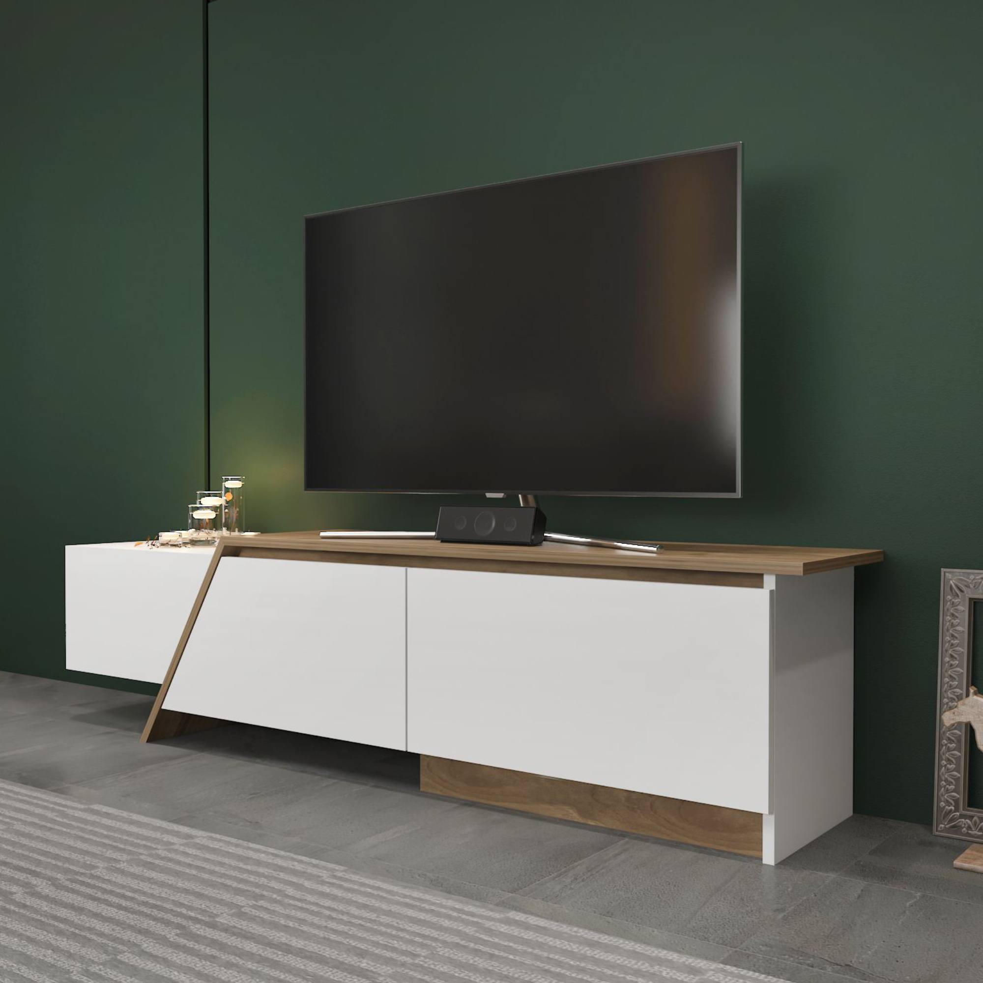 TV stolek ZONAS, který v sobě kombinuje moderní design a stylové bezúchytové provedení, nabízí dostatek úložného prostoru.