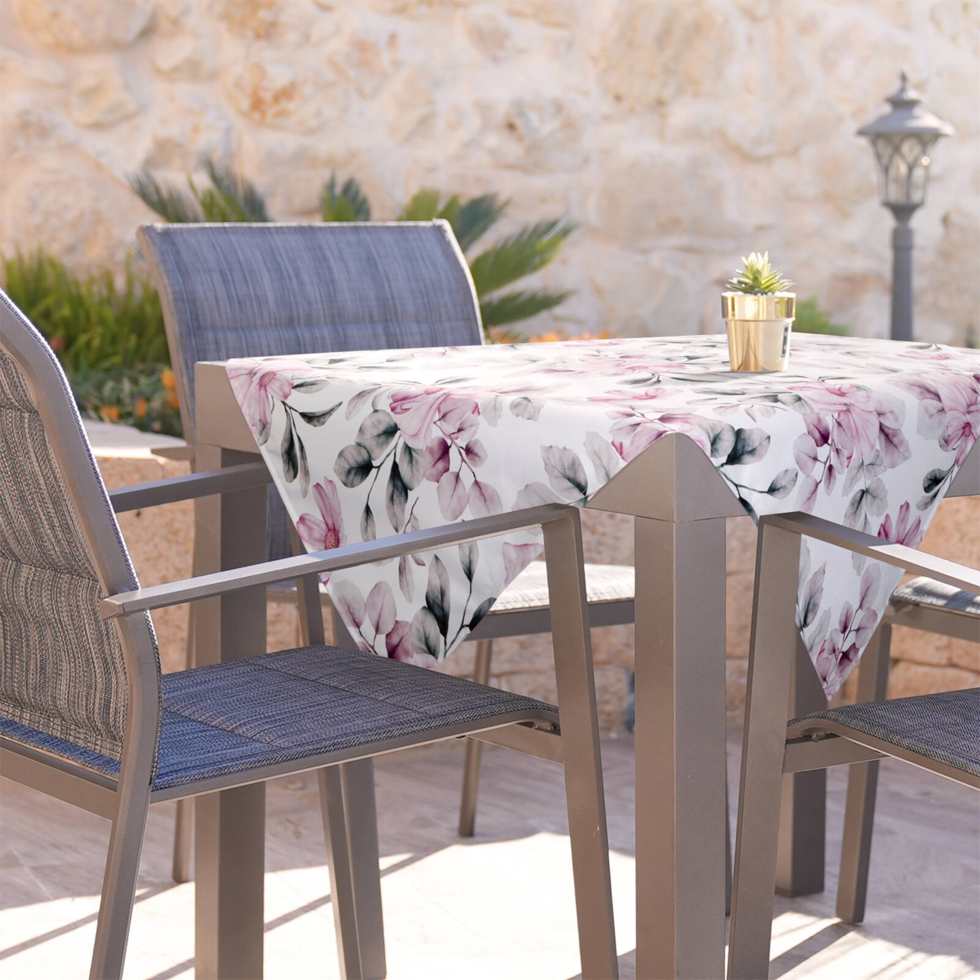 Ubrus KVĚTY s květinovým motivem zajímavě oživí stůl jak při domácích, tak i venkovních posezeních s přáteli či rodinou. Jedná se nejen o dekorativní prvek, ale také spolehlivě ochrání desku stolu před znečištěním i mechanickým poškozením. Vyrobený je z plátna složeného ze 100% polyesteru. Ubrus KVĚTY je ideální pro kombinování s dalším textilem ve stejném designu.