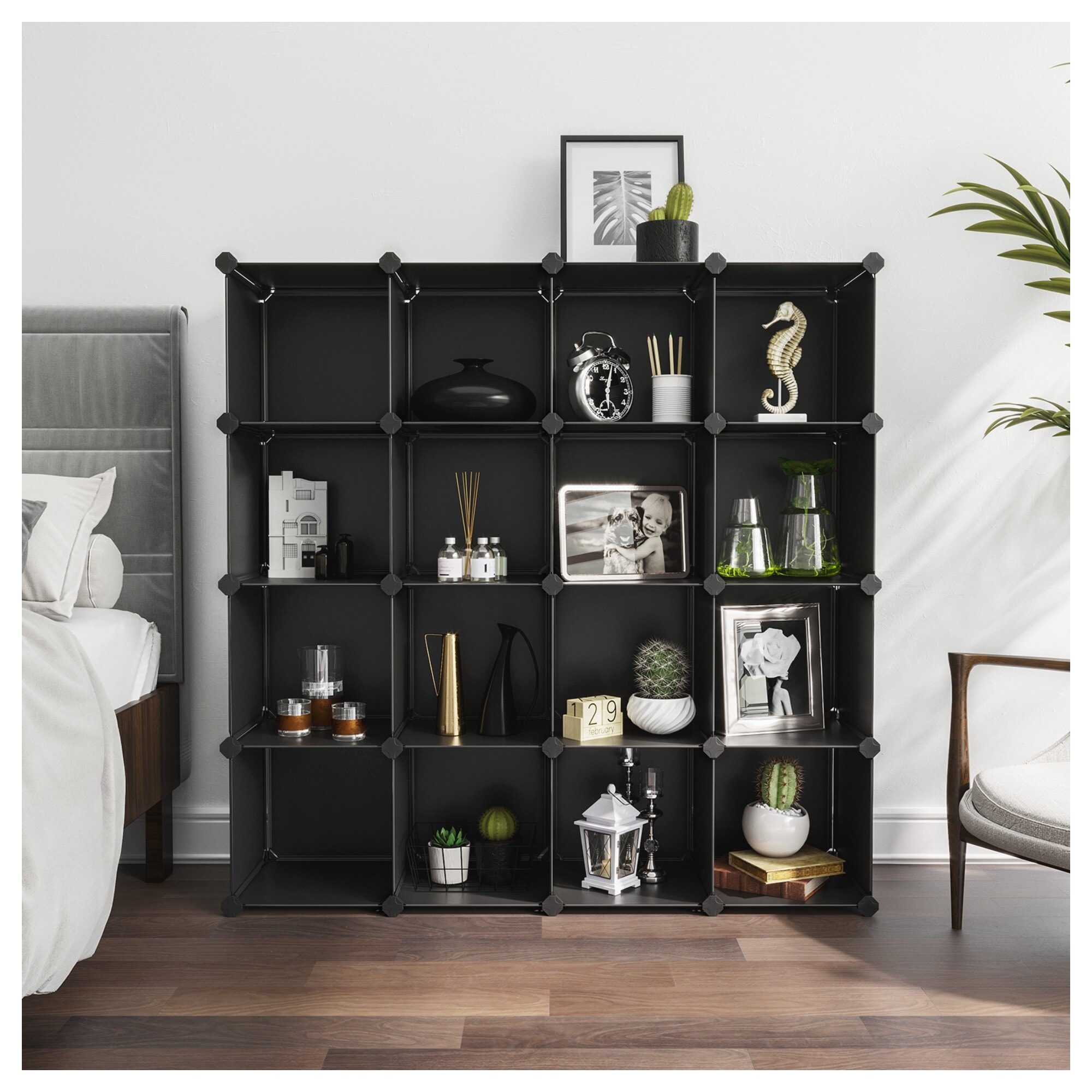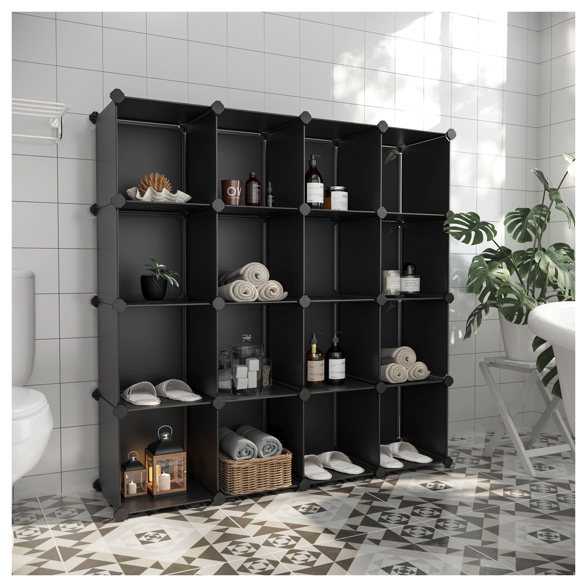 Úložný plastový organizér LPC44BK je praktickým pomocníkem do vaší domácnosti s variabilním využitím. Každý box disponuje rozměry 30x30x30 cm a ozdobit jej lze dekorativním světlem. ABS konektory zajišťují stabilitu celé konstrukce, a tak každá z 16 polic pojme až 10 kg. Tyto police se skládají z plastových PP desek, ABS spojek a železného drátu zpevňujícího okraje desek. Panely jsou odolné proti vlhkosti, plísním a díky zmíněnému materiálu jsou i velmi snadno udržovatelné. Regál lze ukotvit ke stěně pomocí šroubů a hmoždinek, které jsou součástí balení.